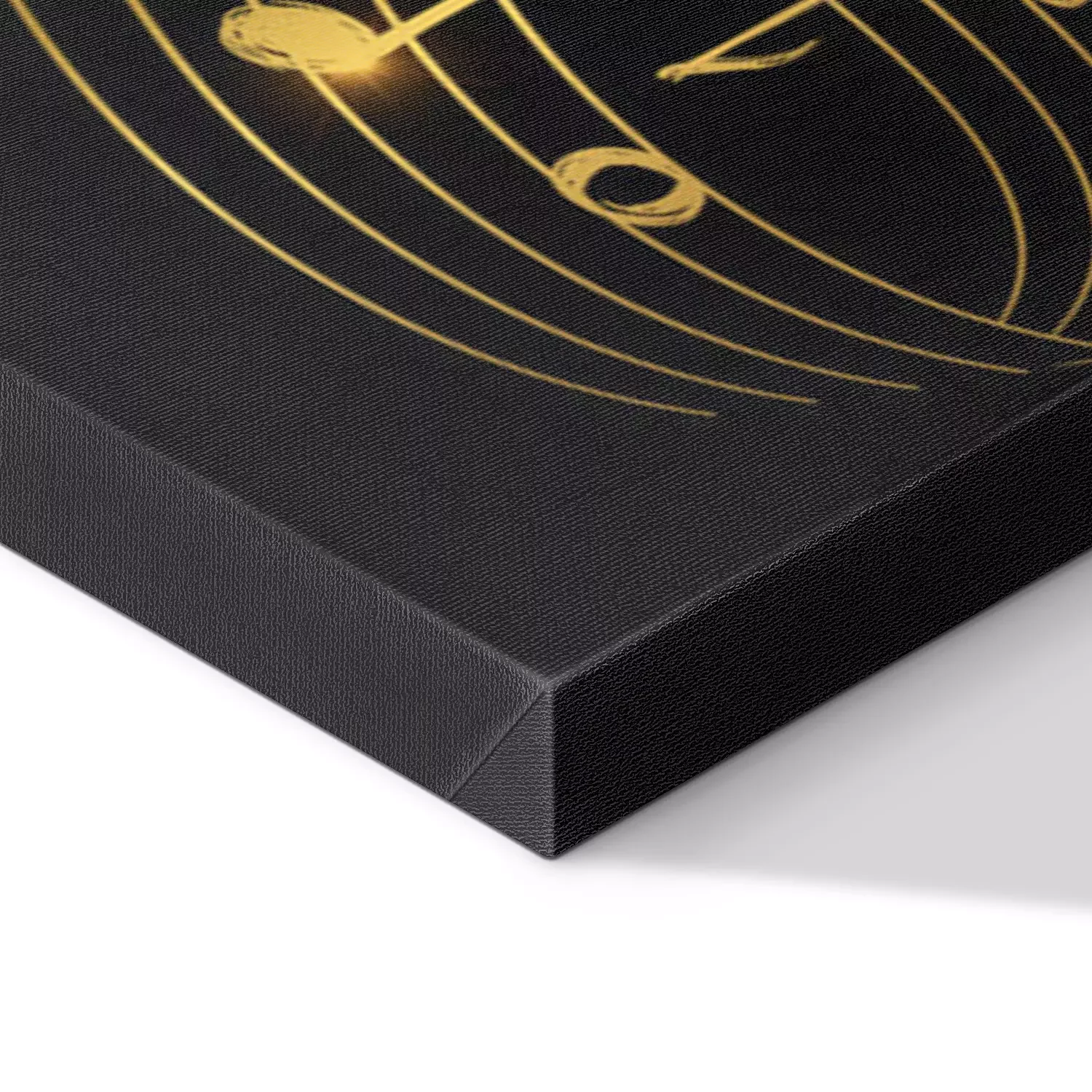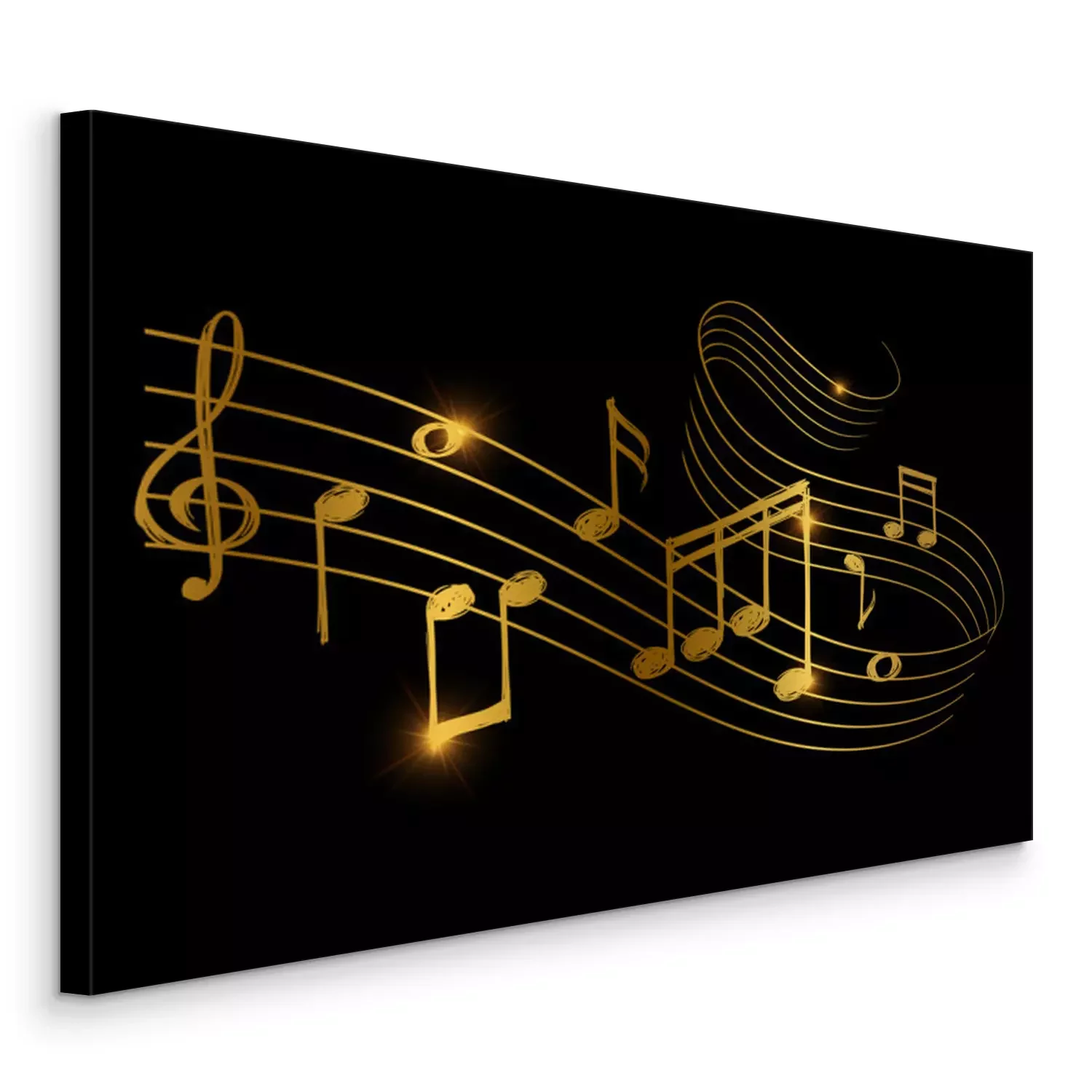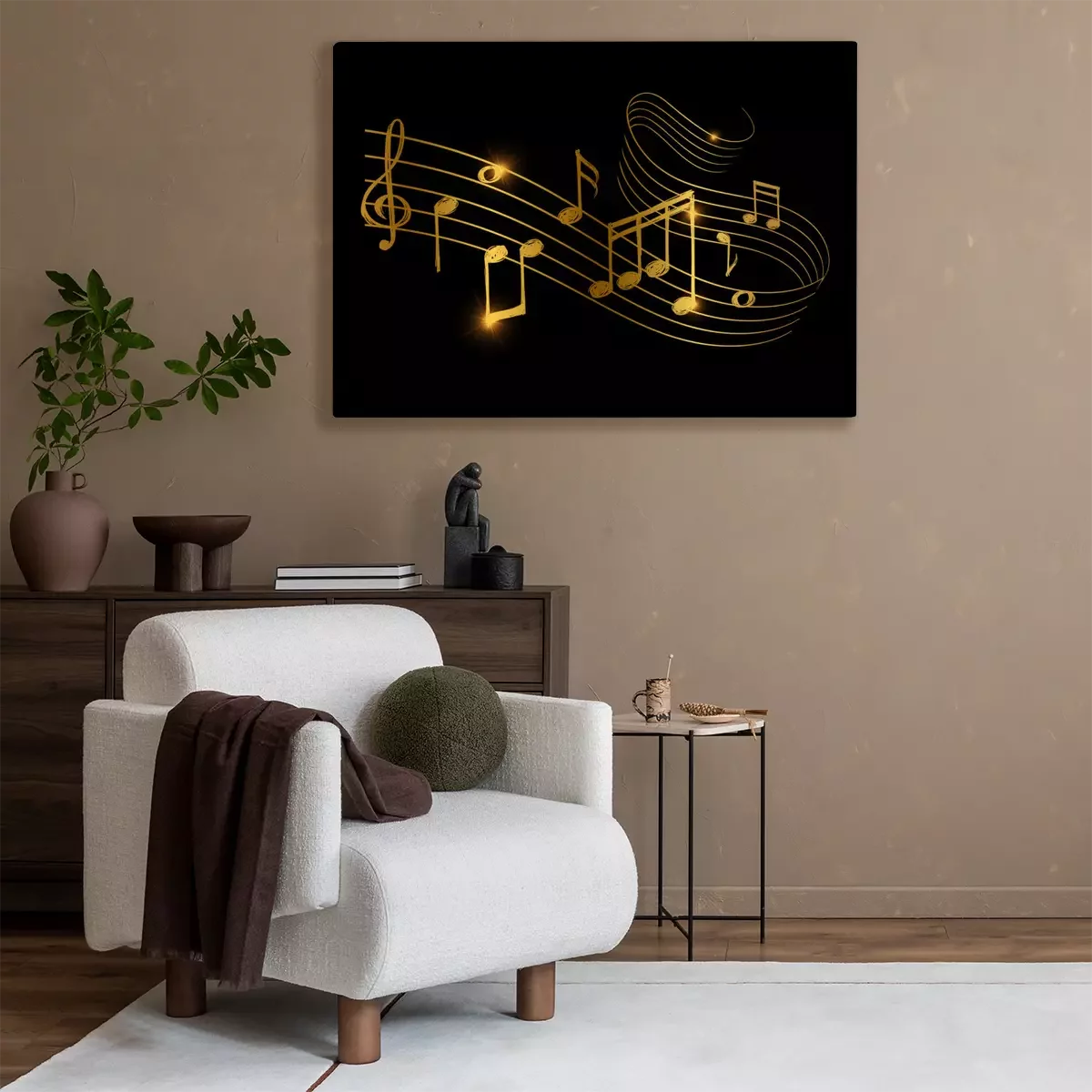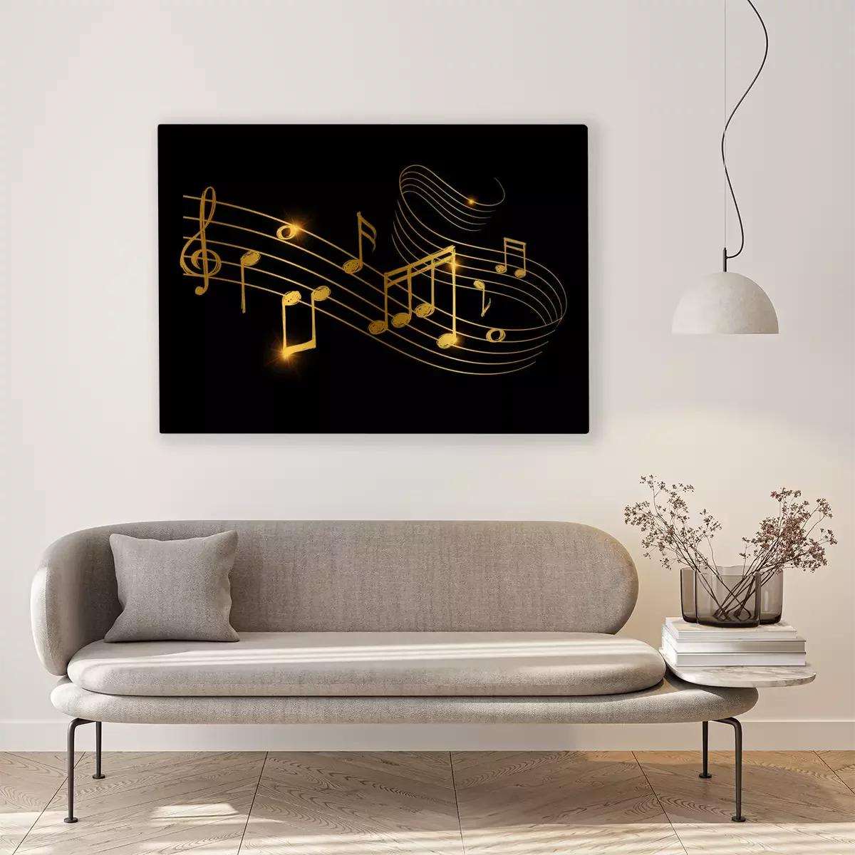 Tableau  Esquisse d'une onde sonore musicale dorée avec des notes de musique