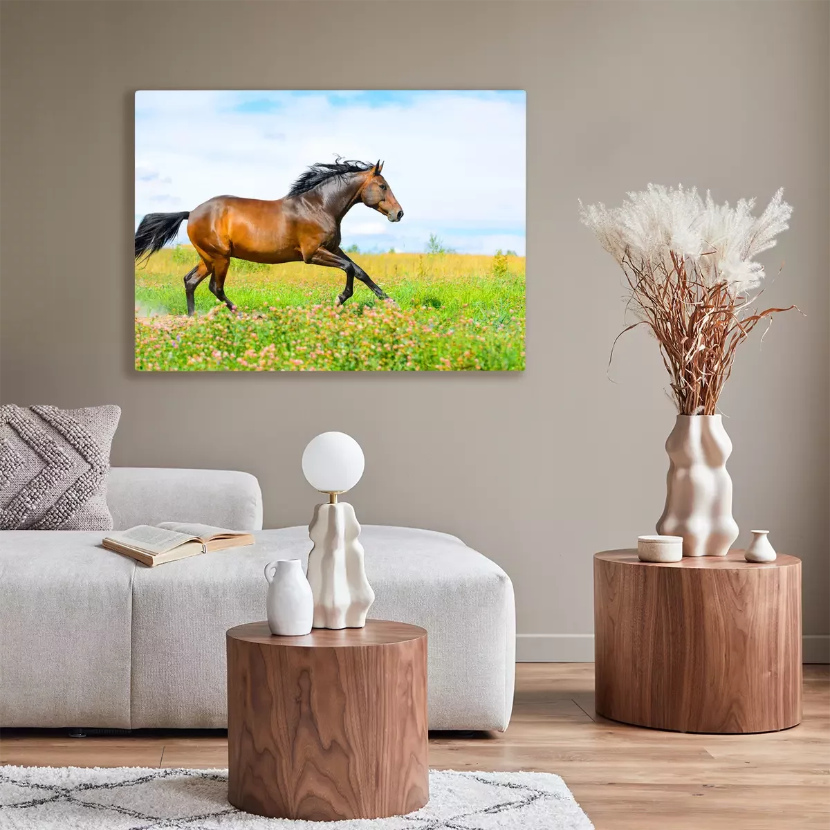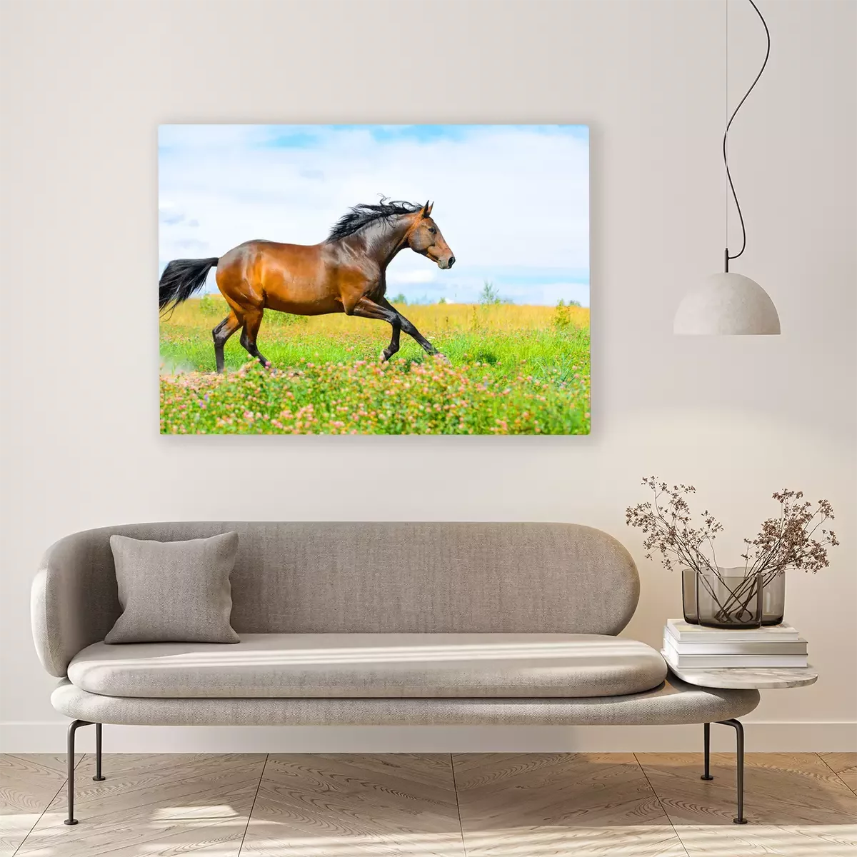 Tableau : Étalon dans un pré de fleurs