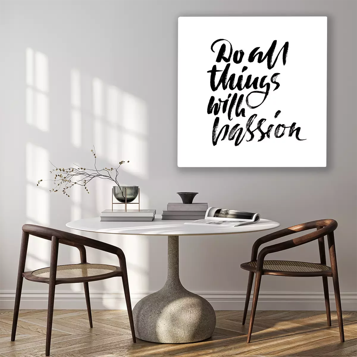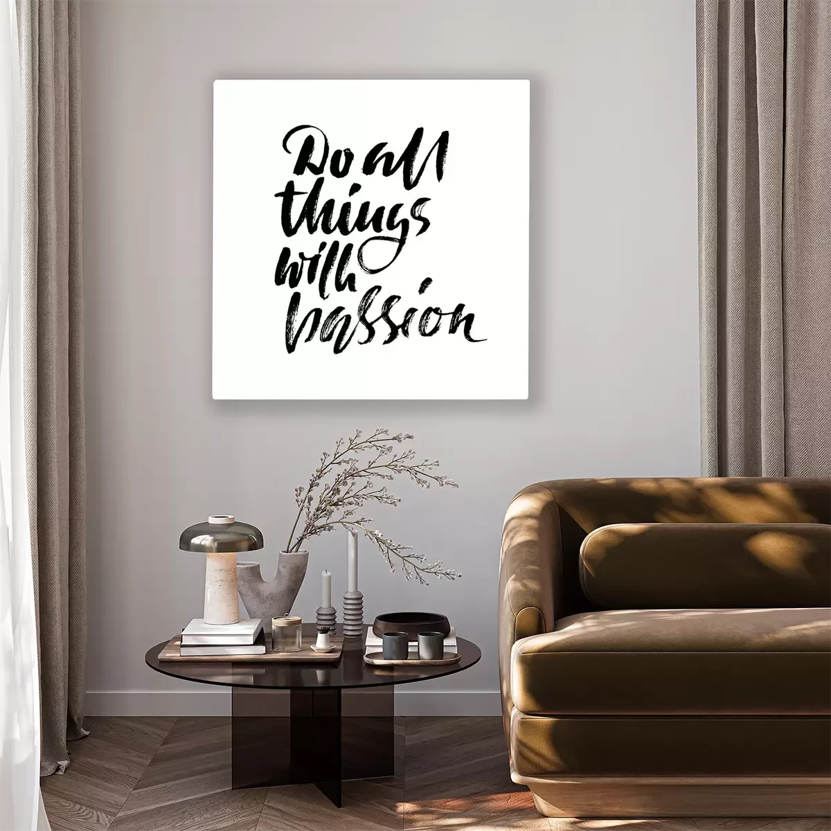 Tableau  Faites tout avec passion. Impression de devis de calligraphie. Illustration vectorielle. Lettre de motivation de la lettre. Faites tout avec passion.
