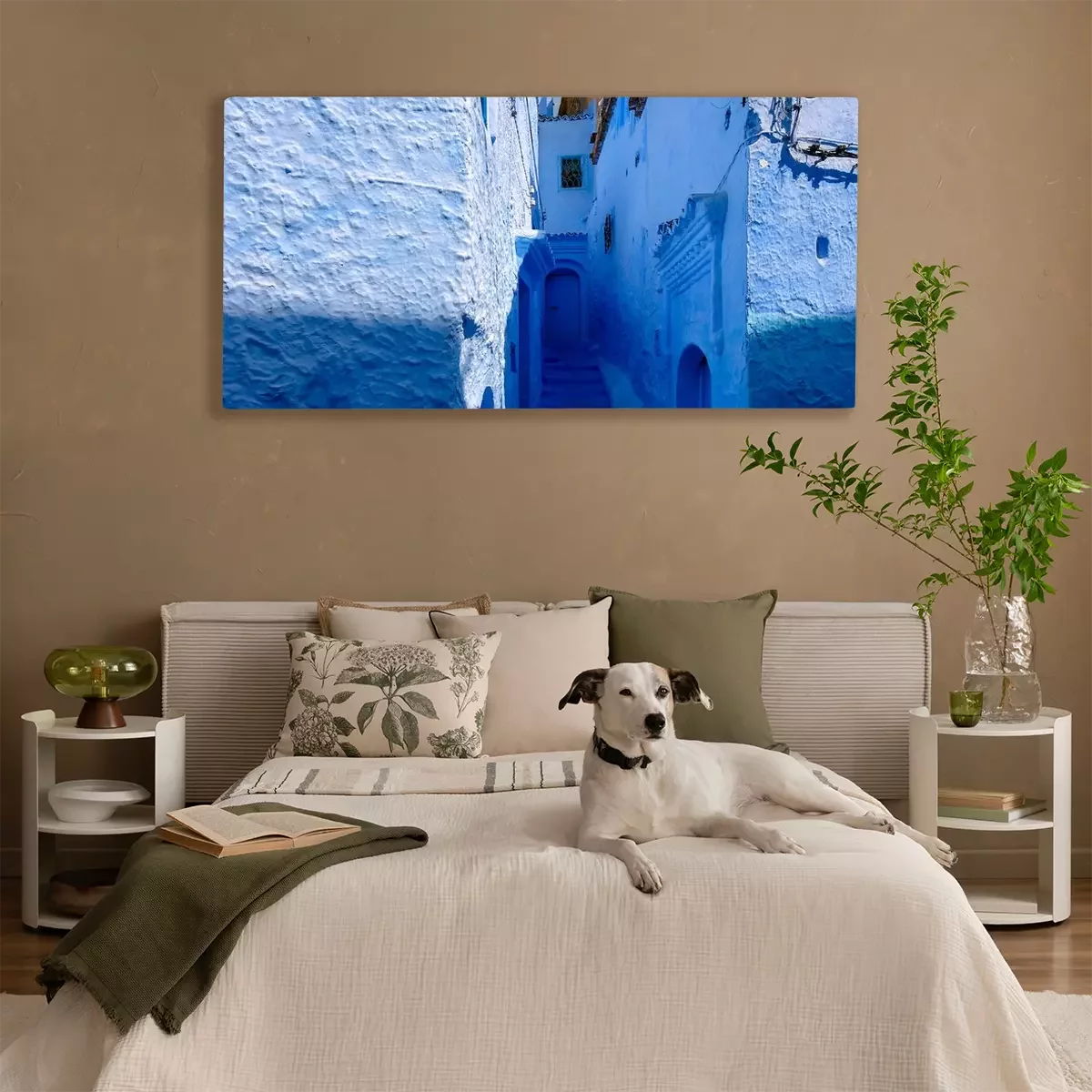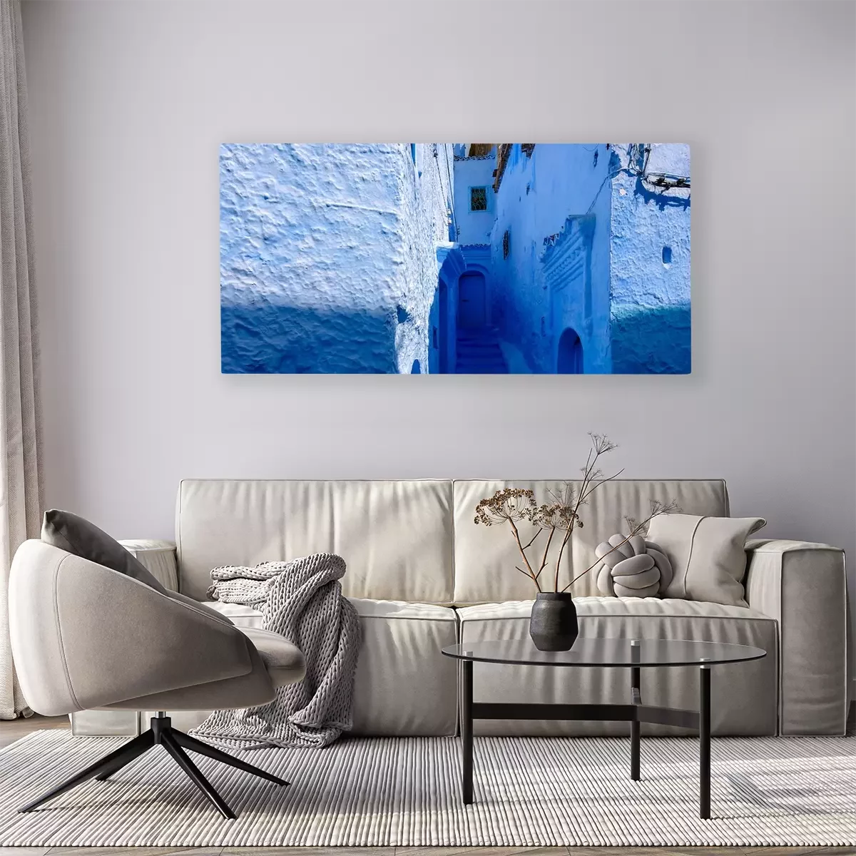 Tableau  Famous blue wall city of Chefchaouen, Morocco.