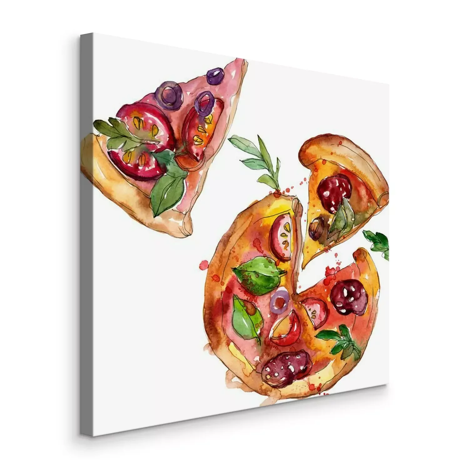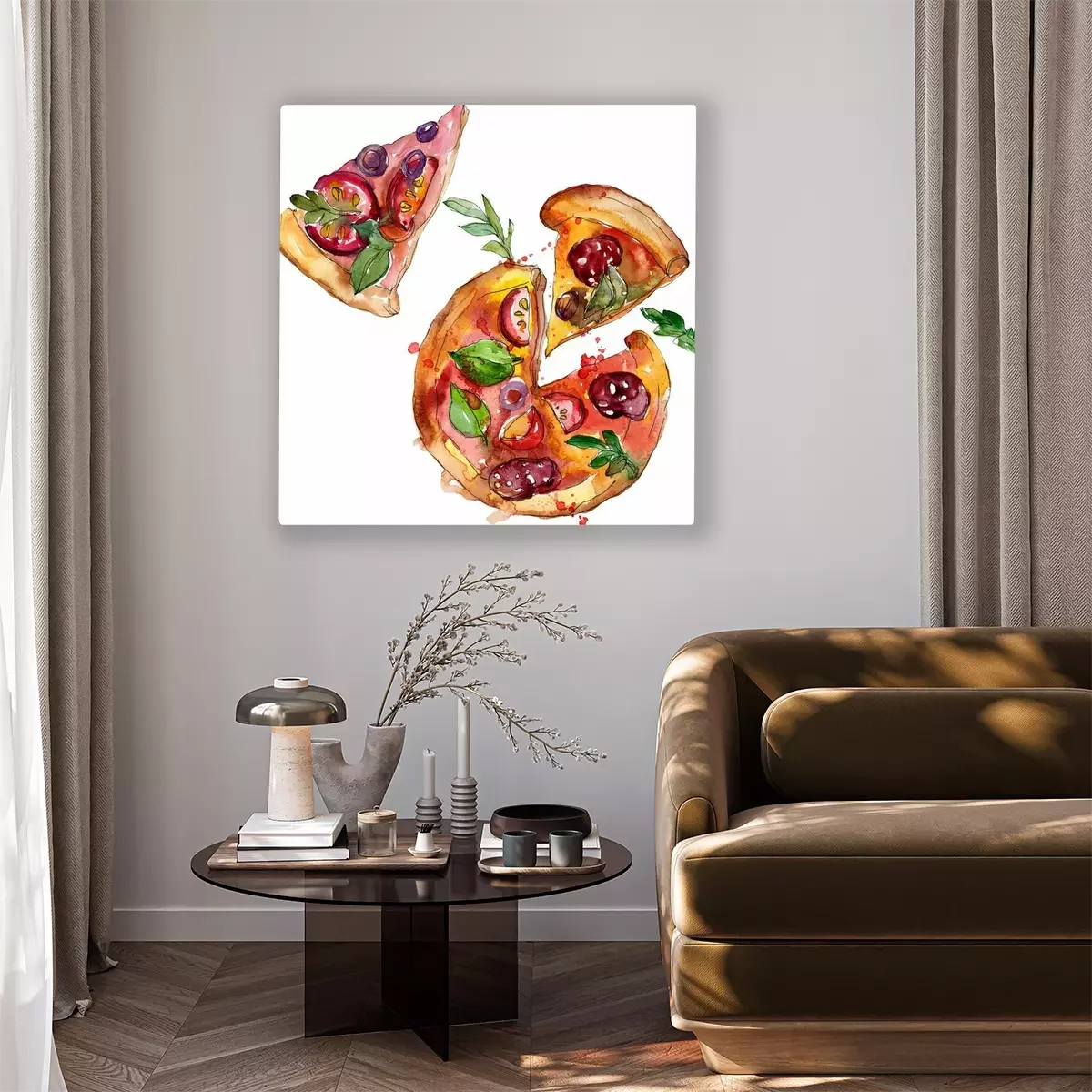 Tableau  Fast food itallian pizza in a watercolor style set. Aquarelle food illustration for background. Isolated pizza element.