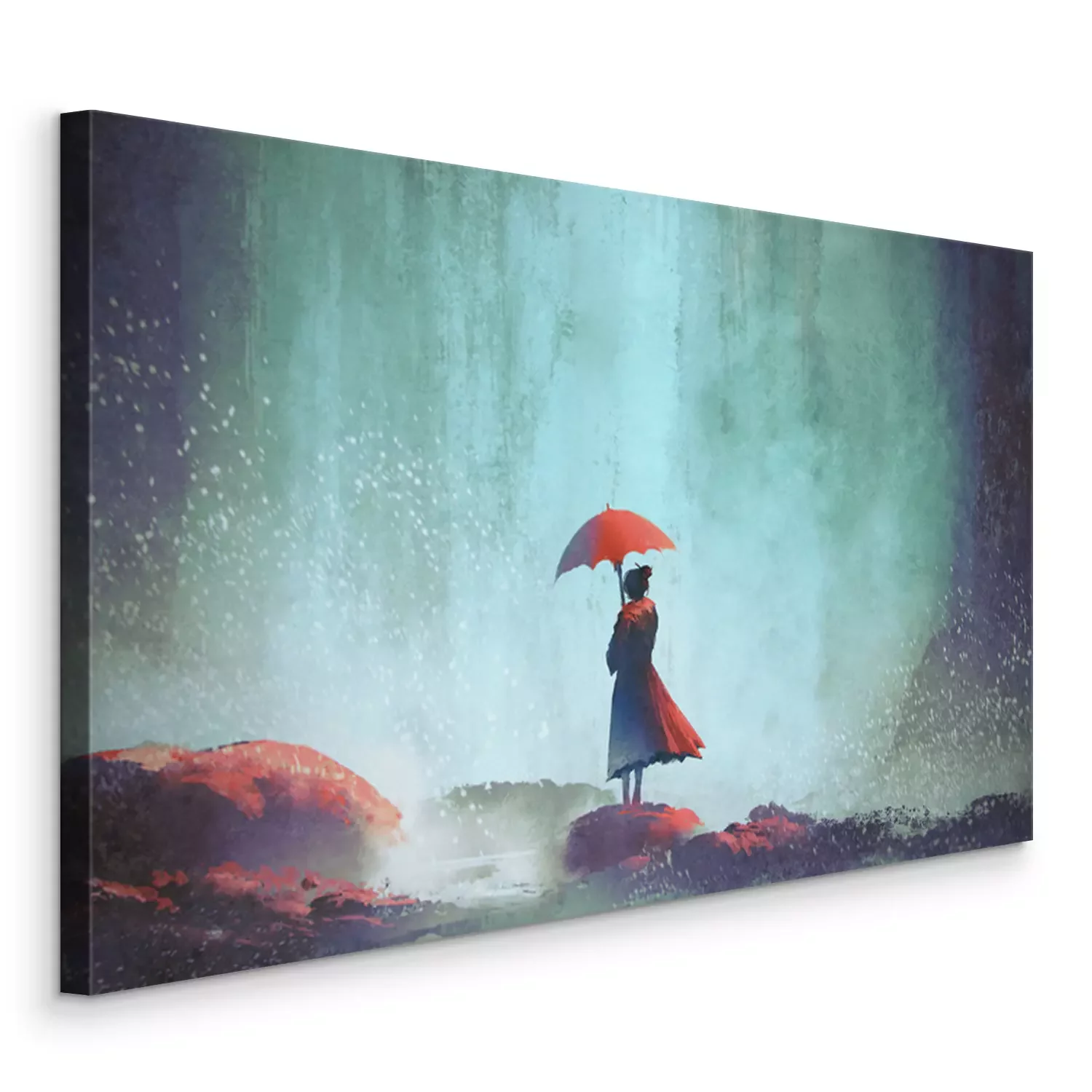 Tableau  Femme avec un parapluie contre la cascade, peinture d'illustration