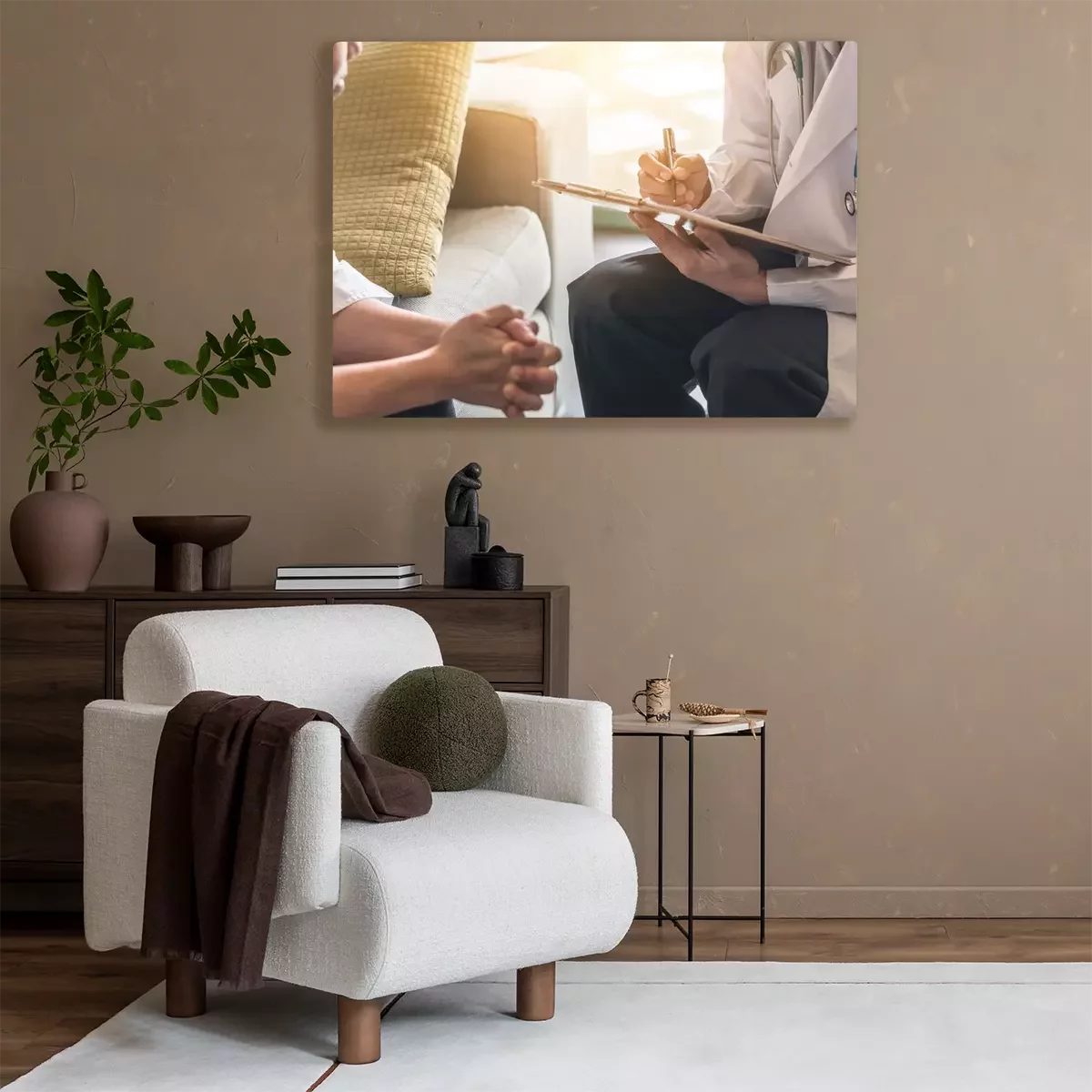 Tableau  Femme ayant consulté un médecin (gynécologue ou psychiatre) et examinant la santé dans une clinique gynécologique médicale ou un centre de services de santé mentale dans un hôpital