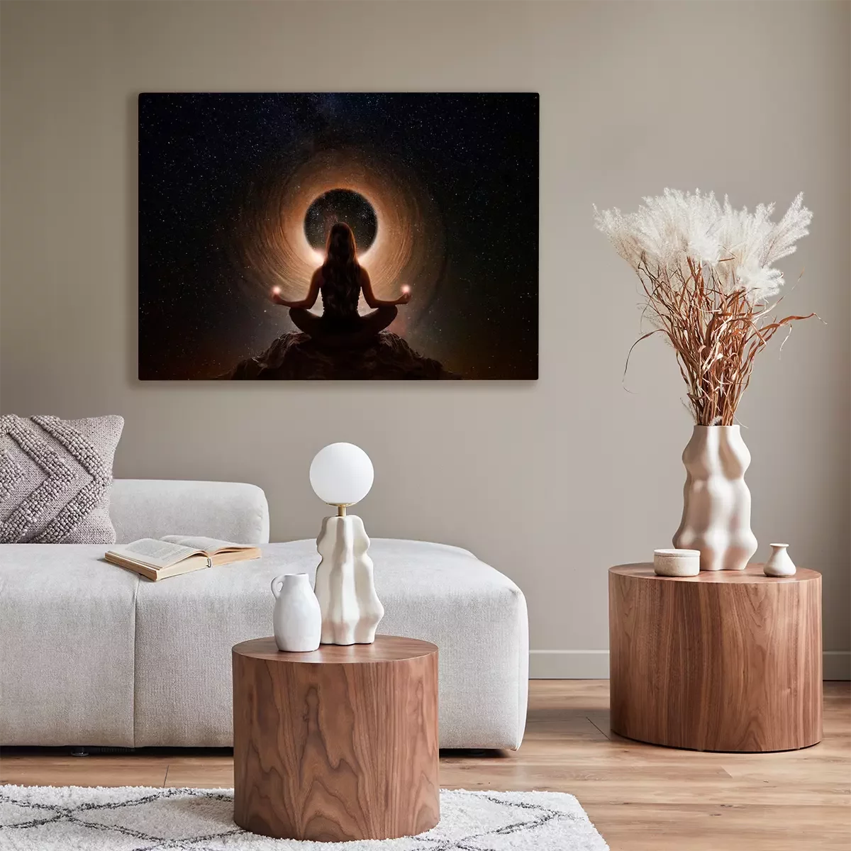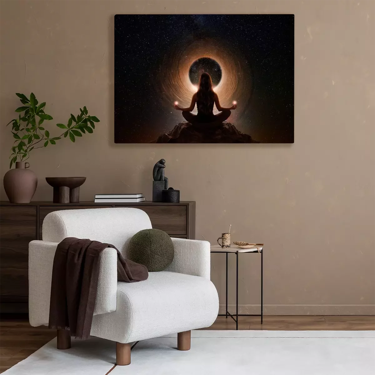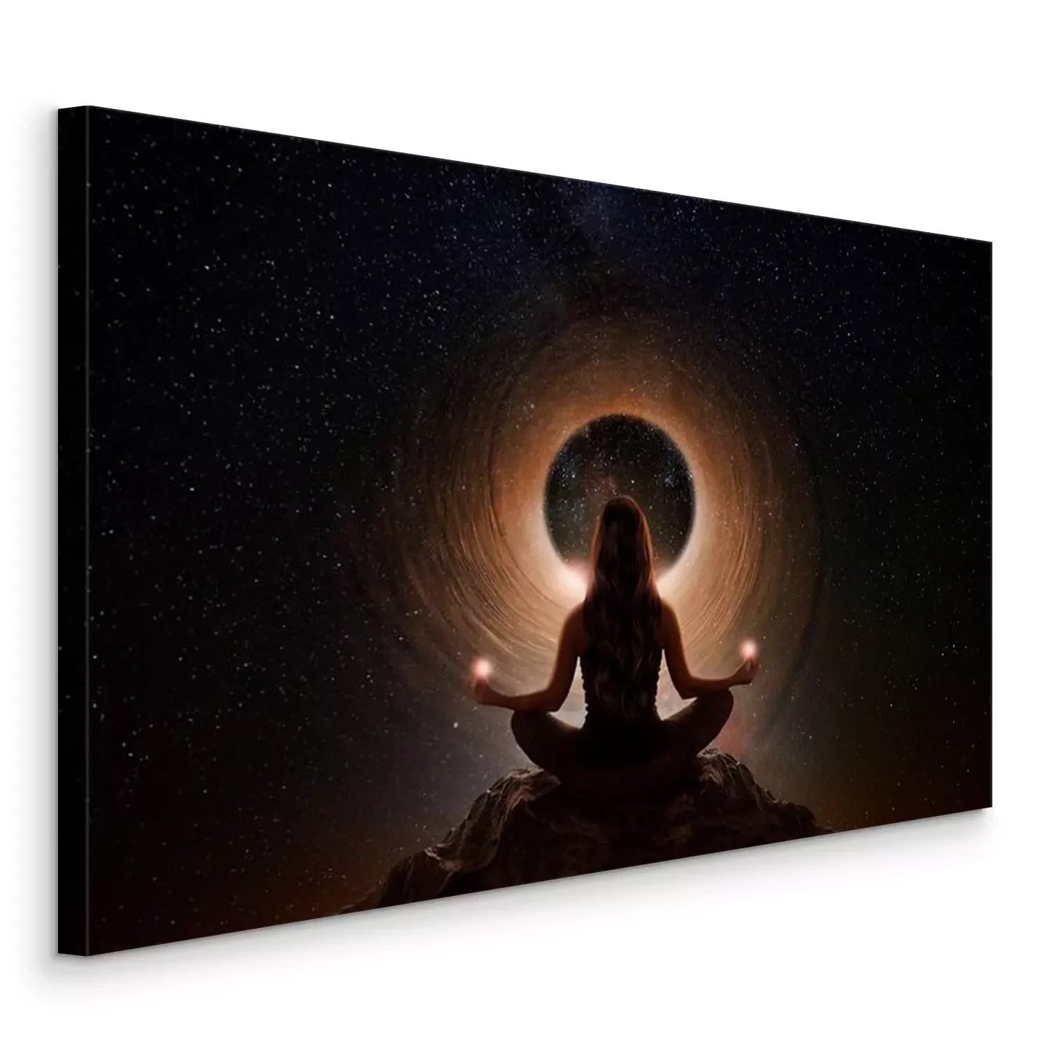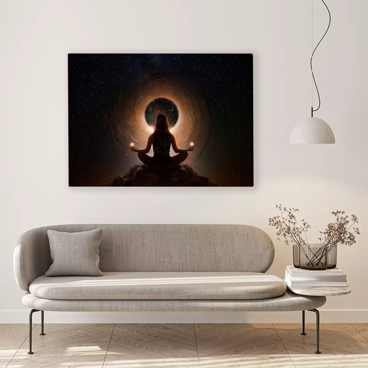 Tableau  Femme en position du lotus sur fond de ciel étoilé