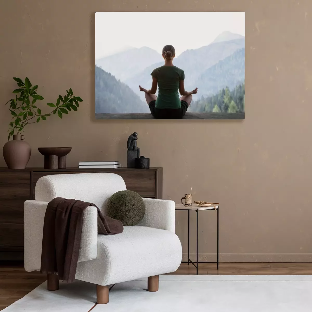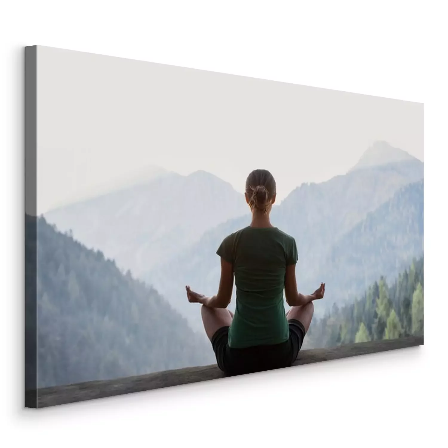 Tableau  Femme en train de méditer et paysage montagneux