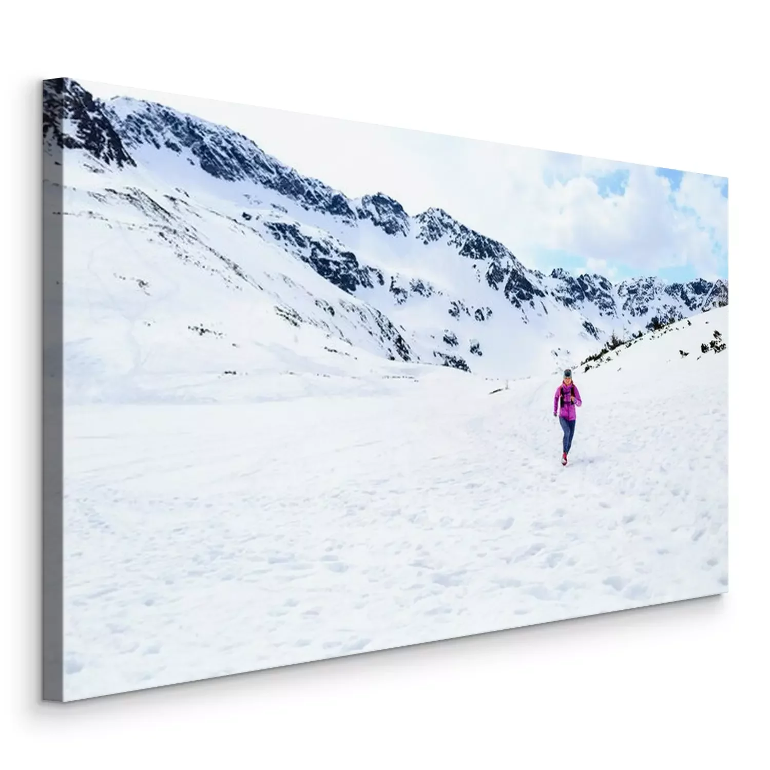 Tableau  Femme heureuse en cours d'exécution dans les montagnes sur l'hiver journée ensoleillée