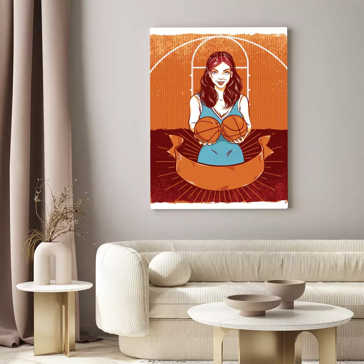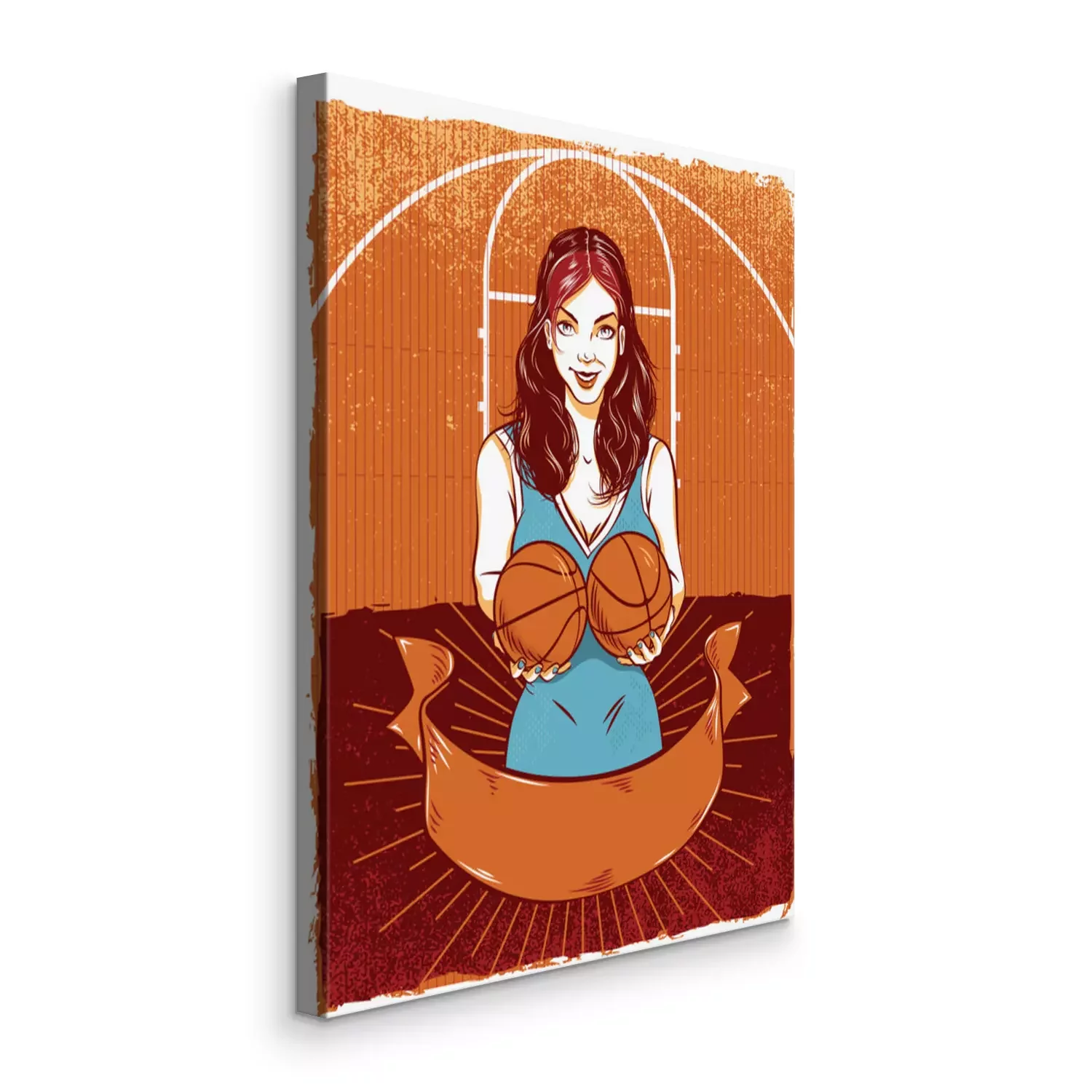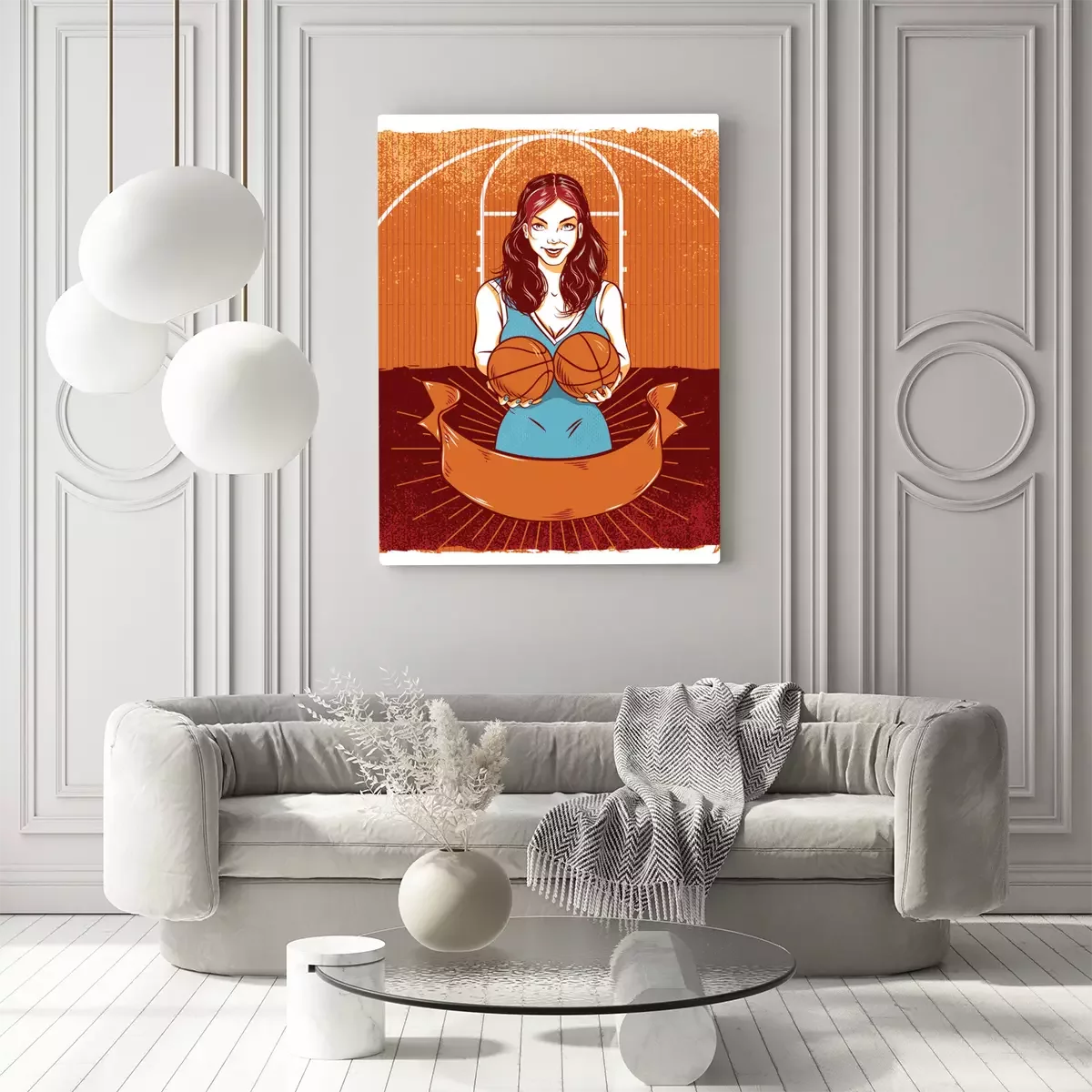 Tableau : femme joyeuse avec des ballons de basket