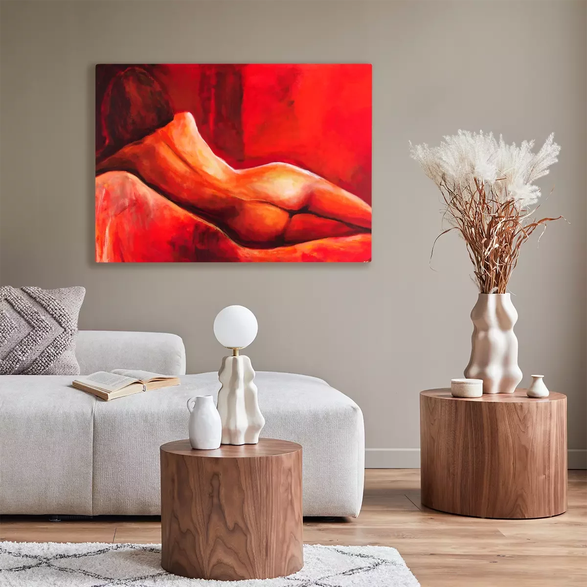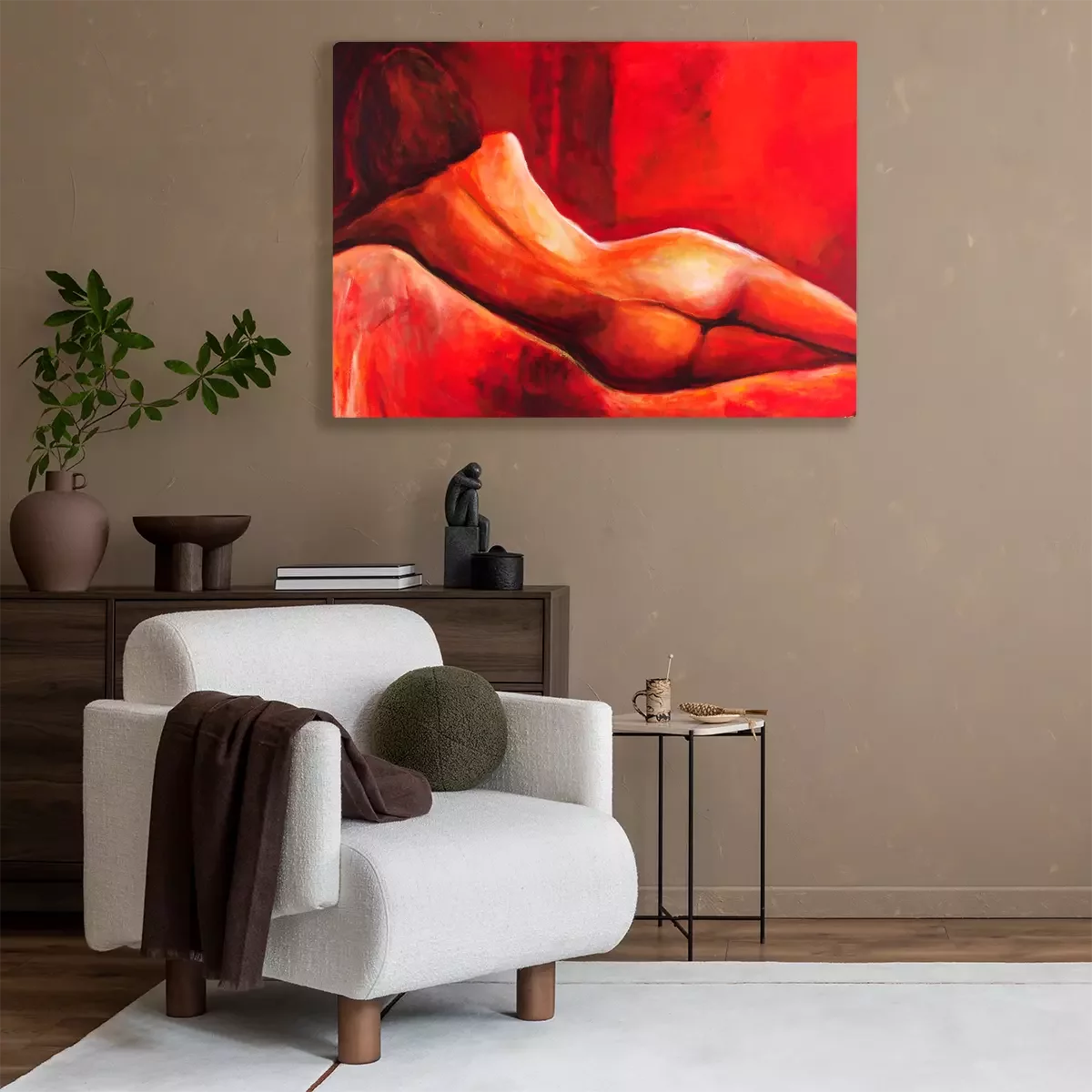 Femme nue dans des tons rouges chauds