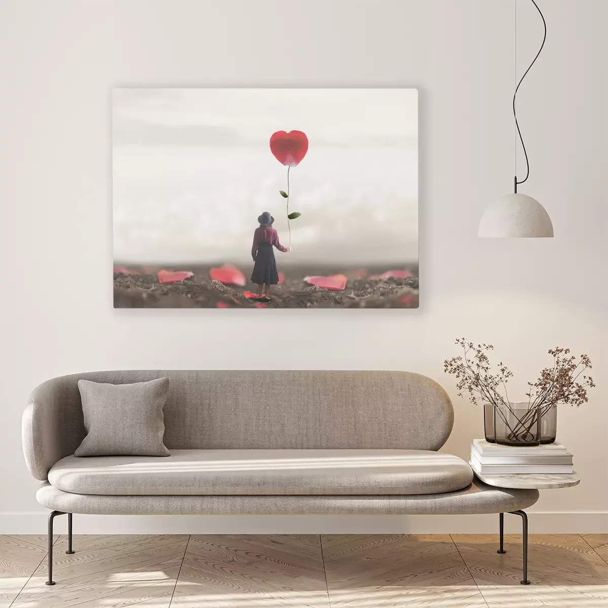 Tableau  femme romantique solitaire est titulaire d'un pétale géant au coeur