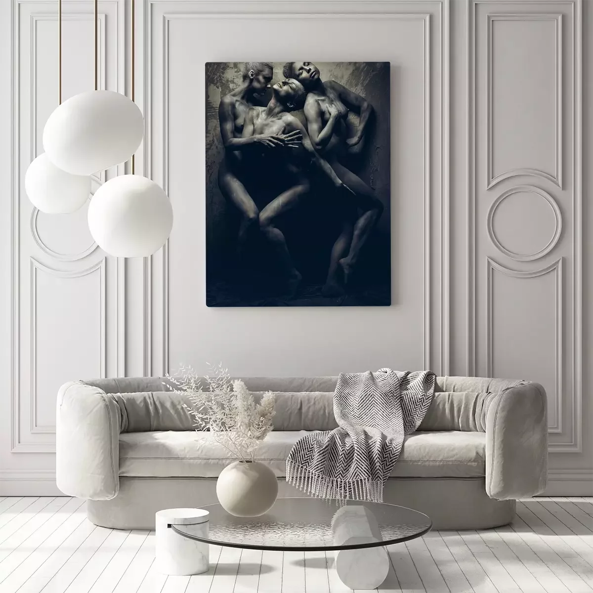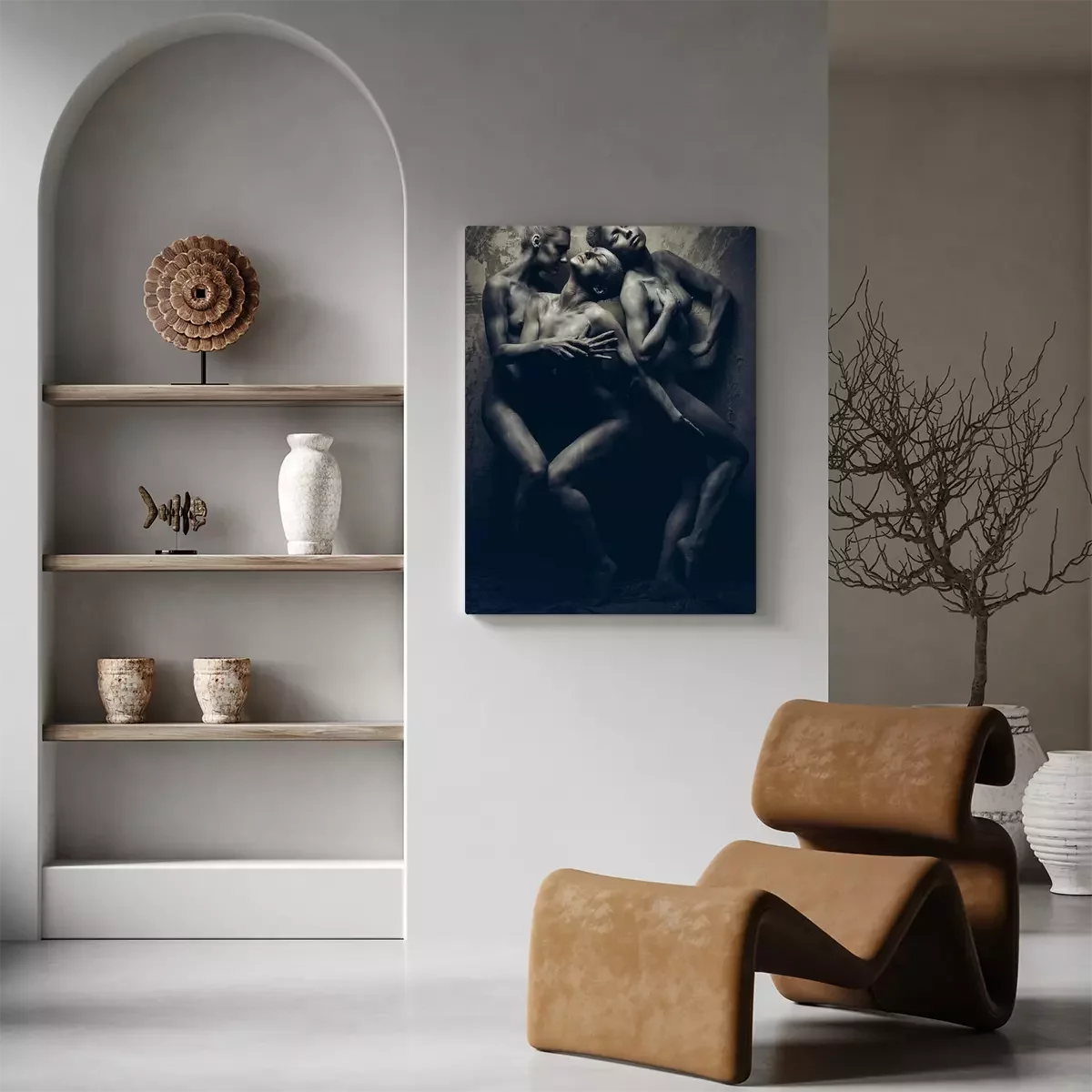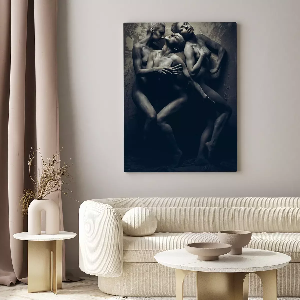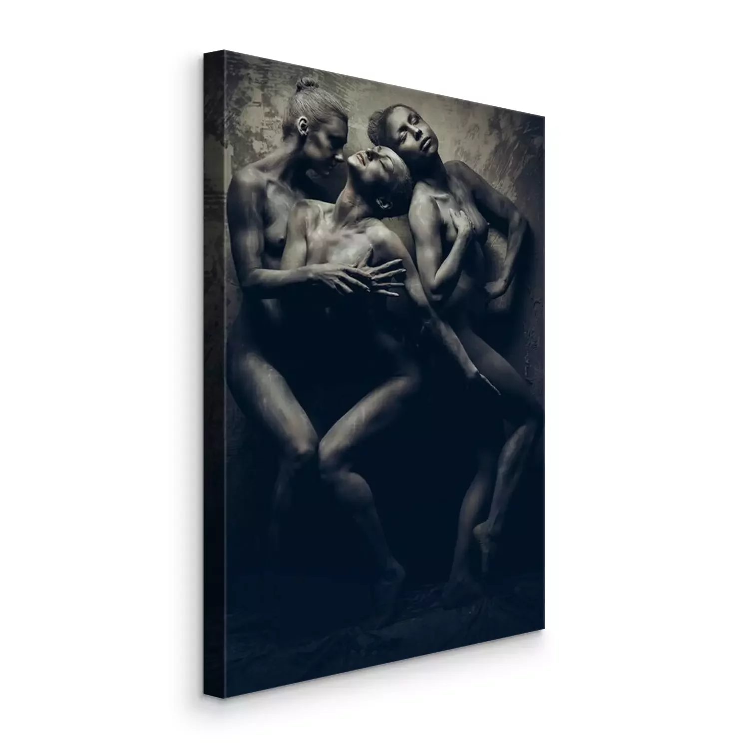 Tableau  Femmes nues peintes en gris couleur pose sur mur gris