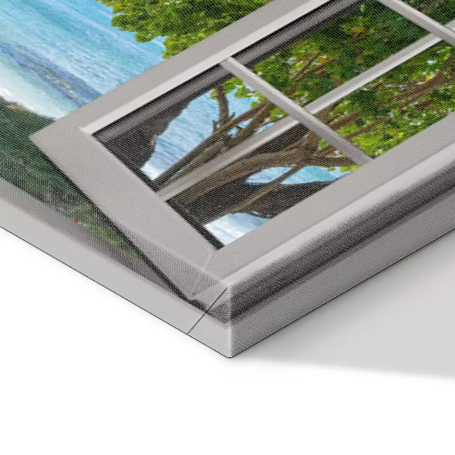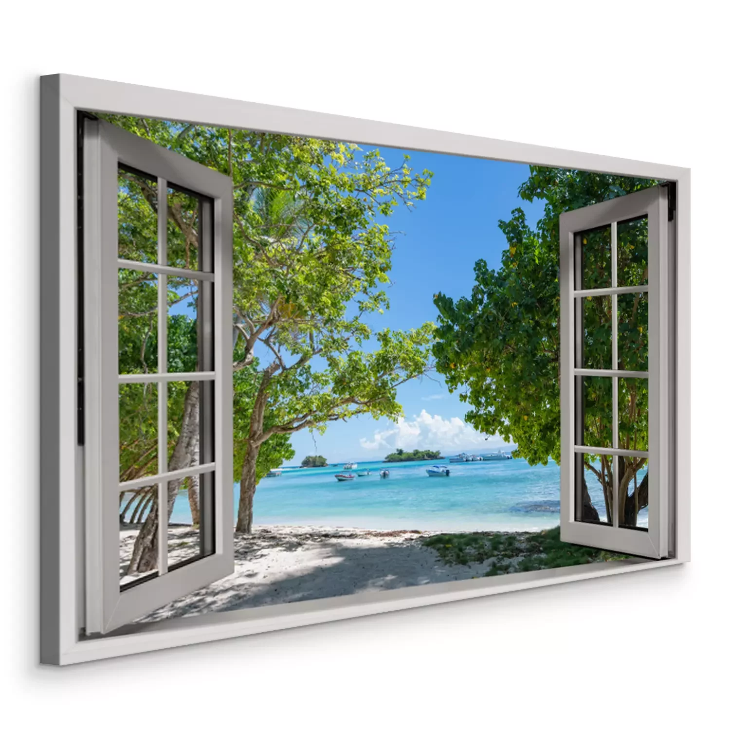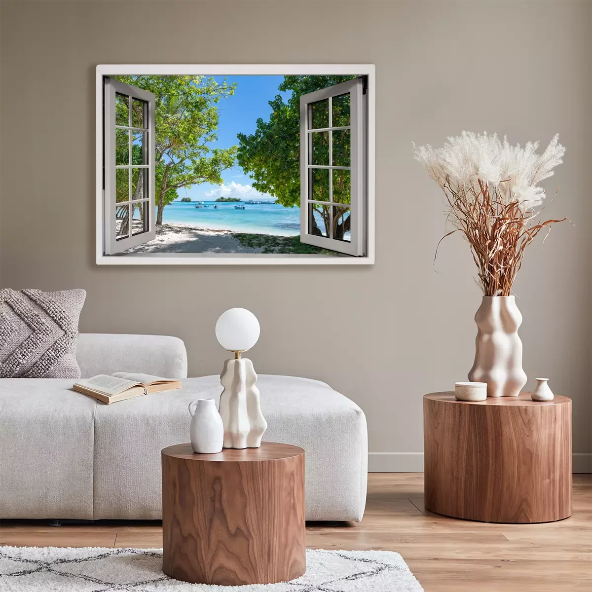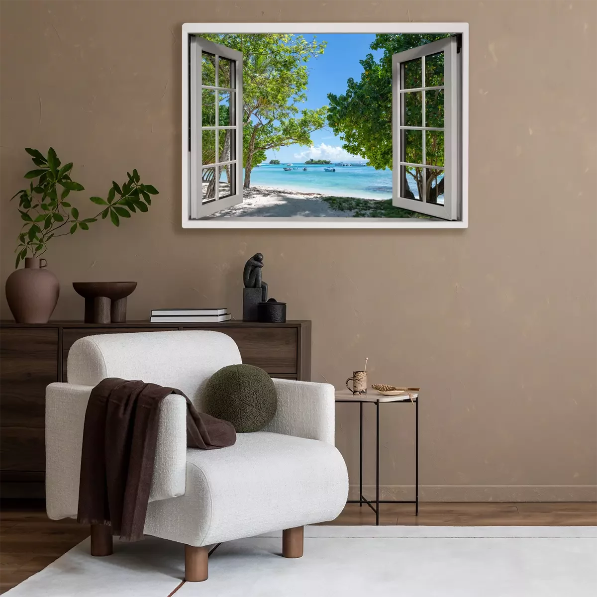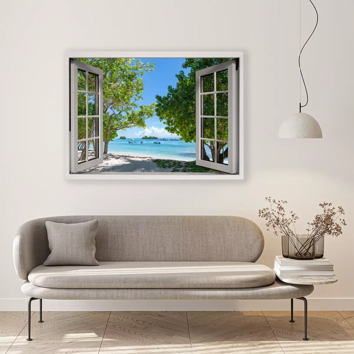 Tableau  Fenêtre avec vue sur une plage tropicale et la mer