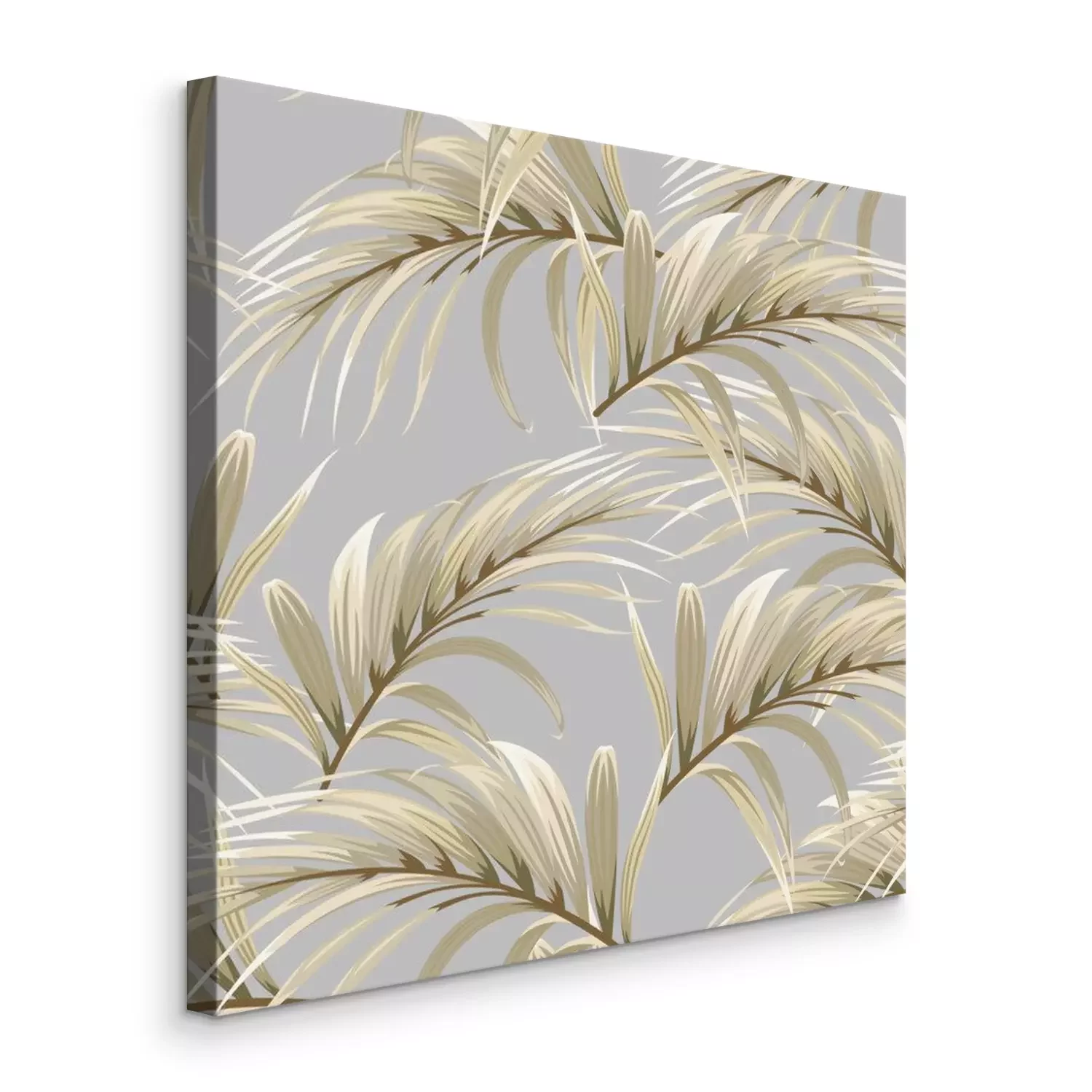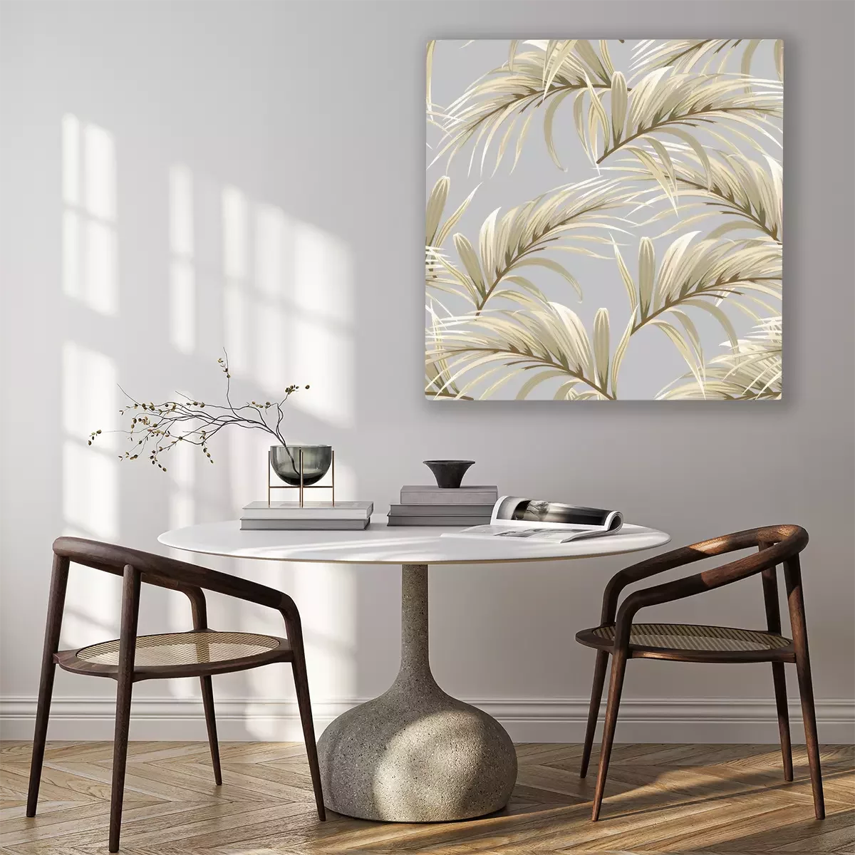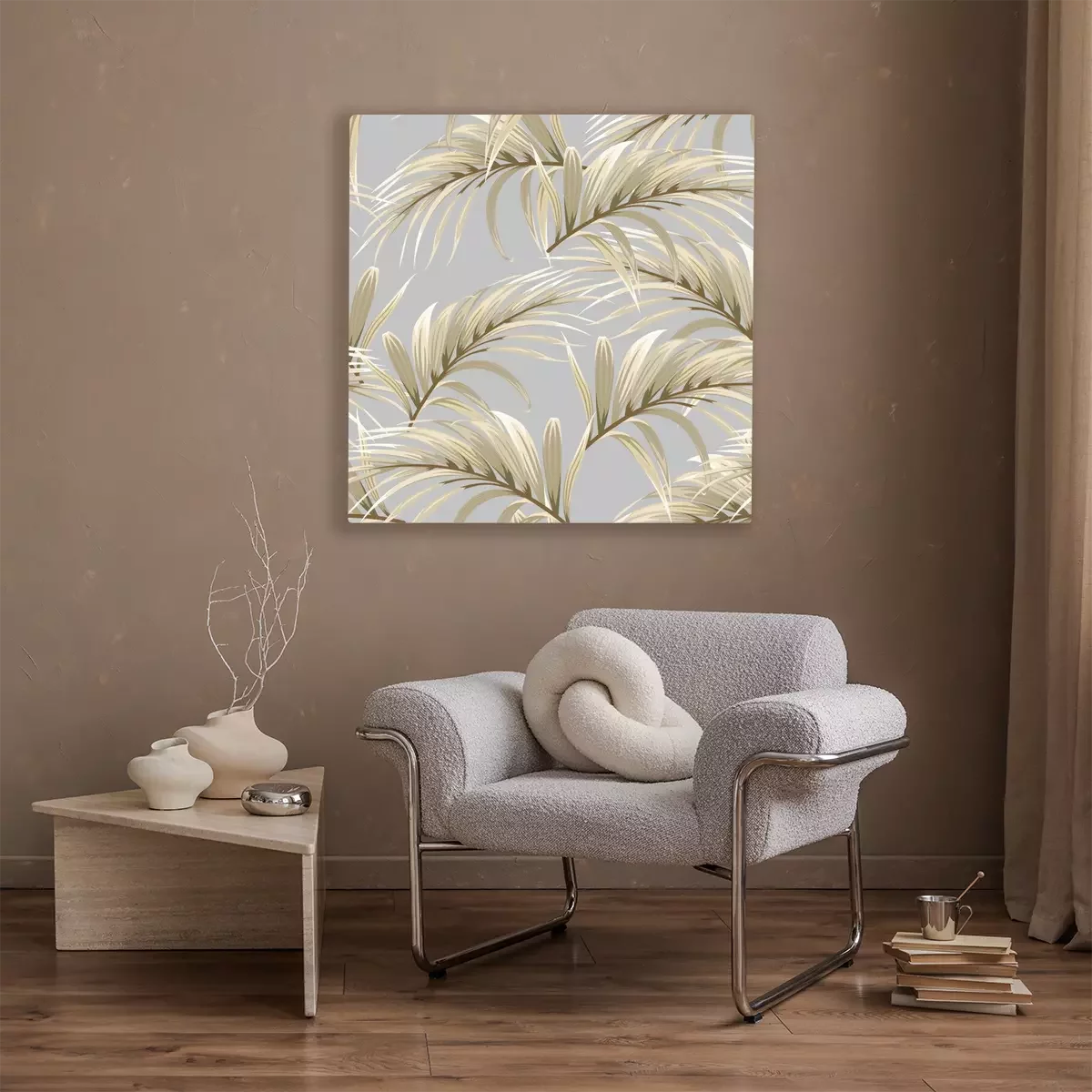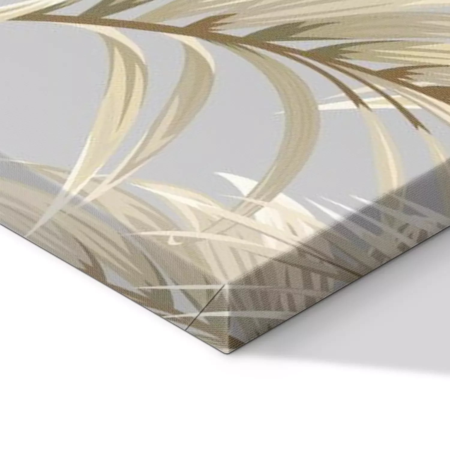 Tableau  Feuille de palmier et nuances dorées sur fond gris