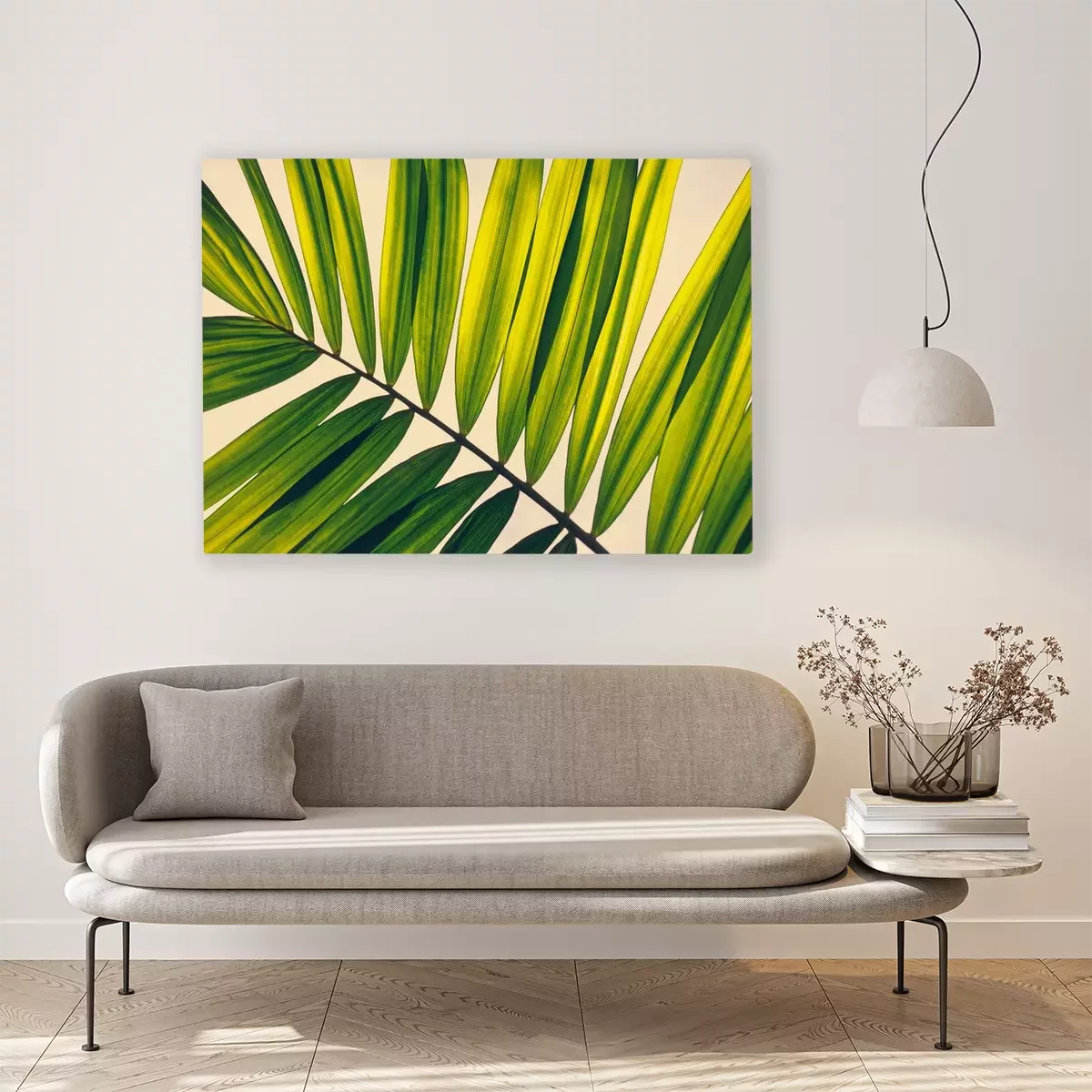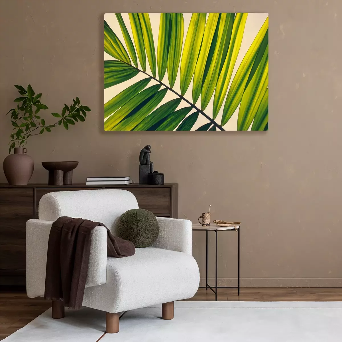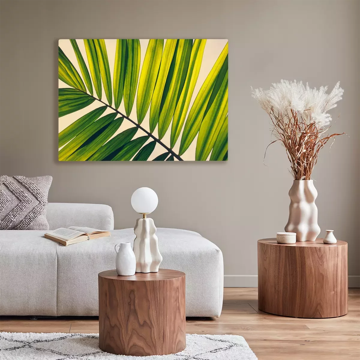 Tableau : Feuille de palmier tropicale verte en gros plan