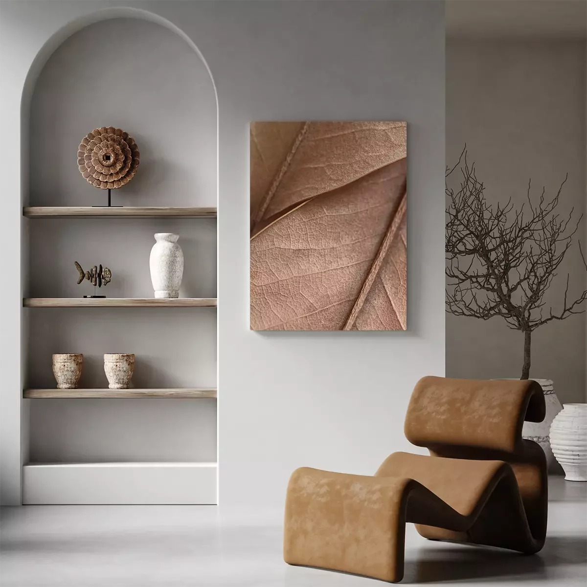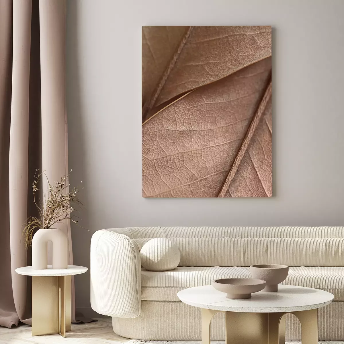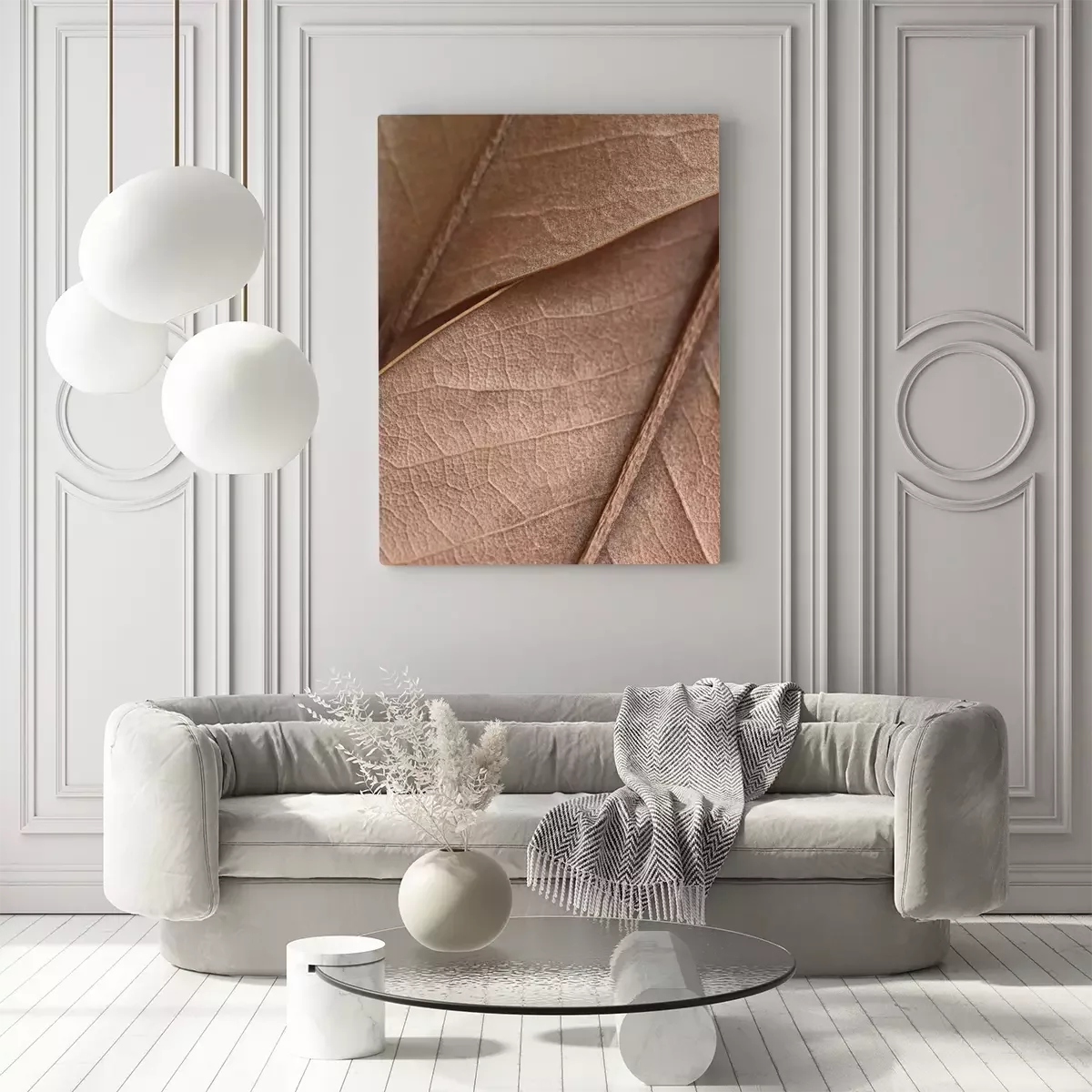 Tableau : Feuille sèche beige d'automne avec des nervures