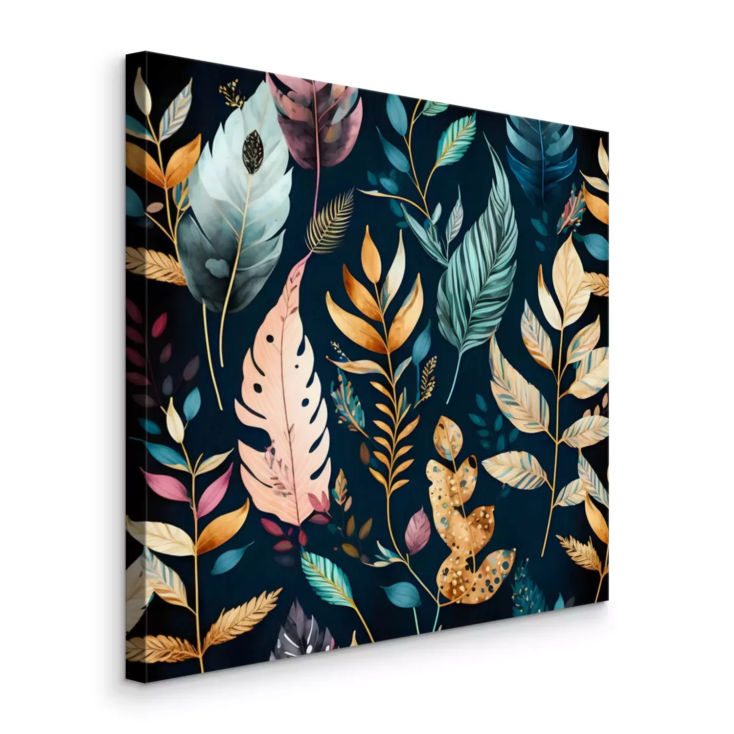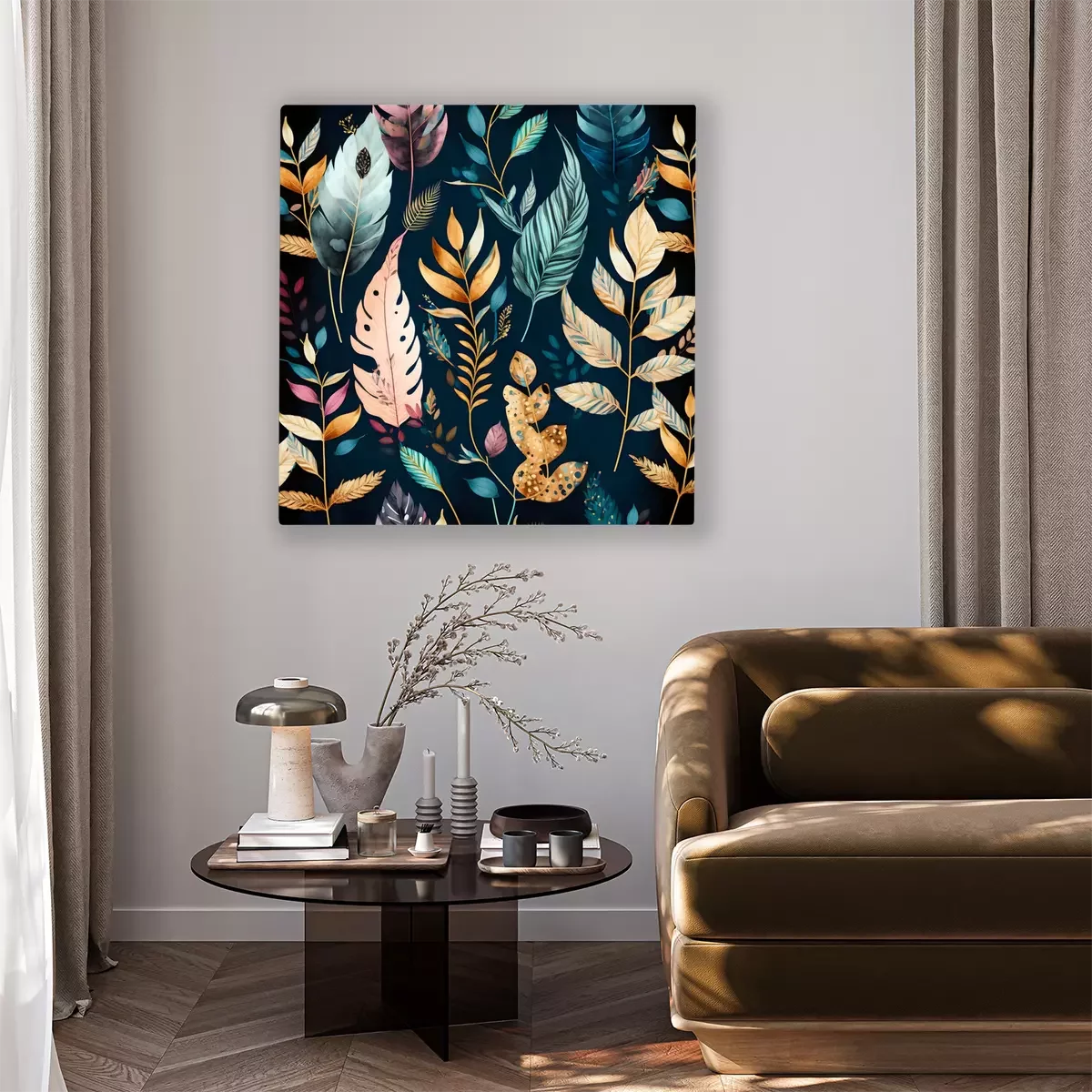 Tableau : Feuilles à l'aquarelle sur fond sombre