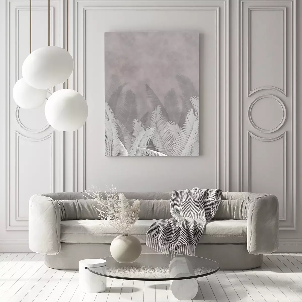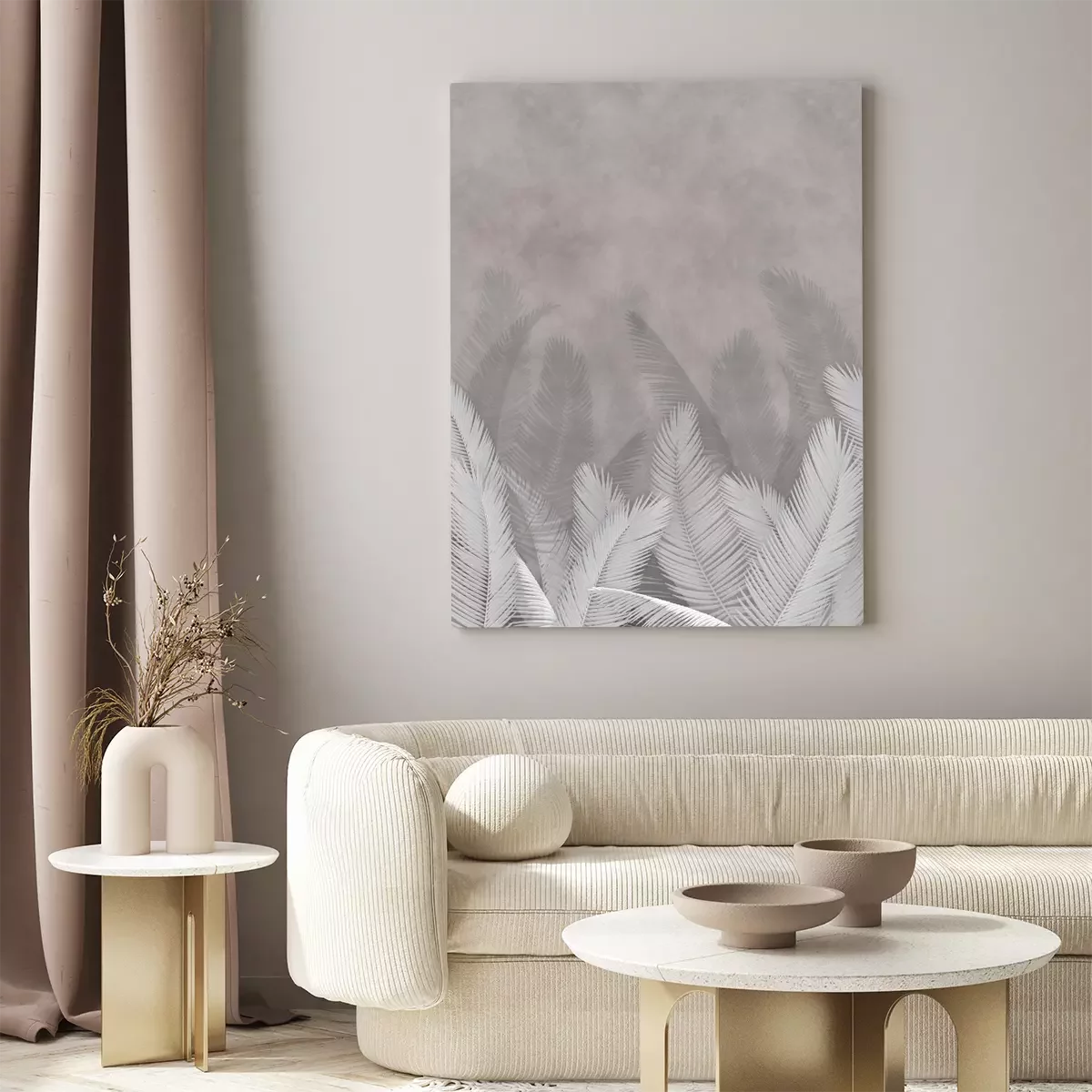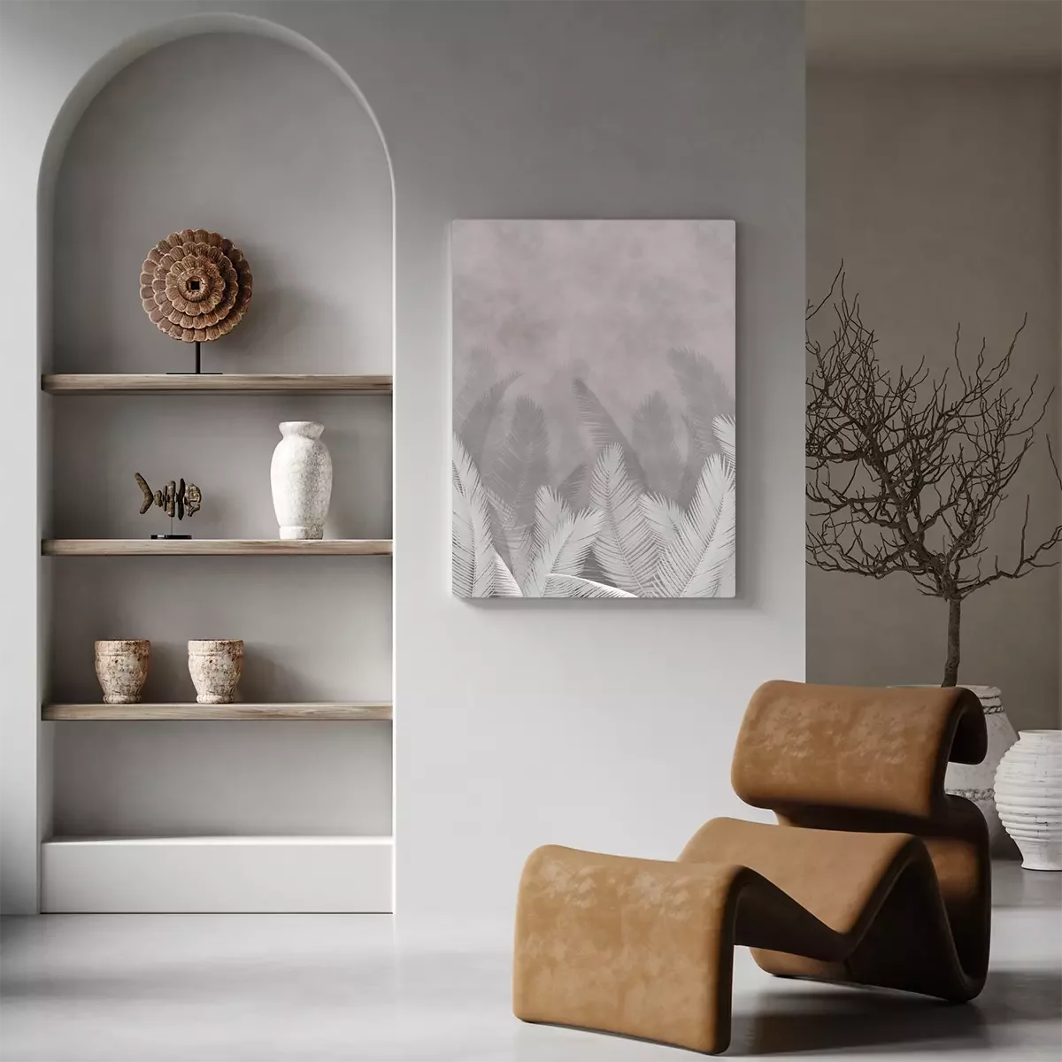 Tableau : Feuilles de palmier sur un fond béton avec des nuances de gris