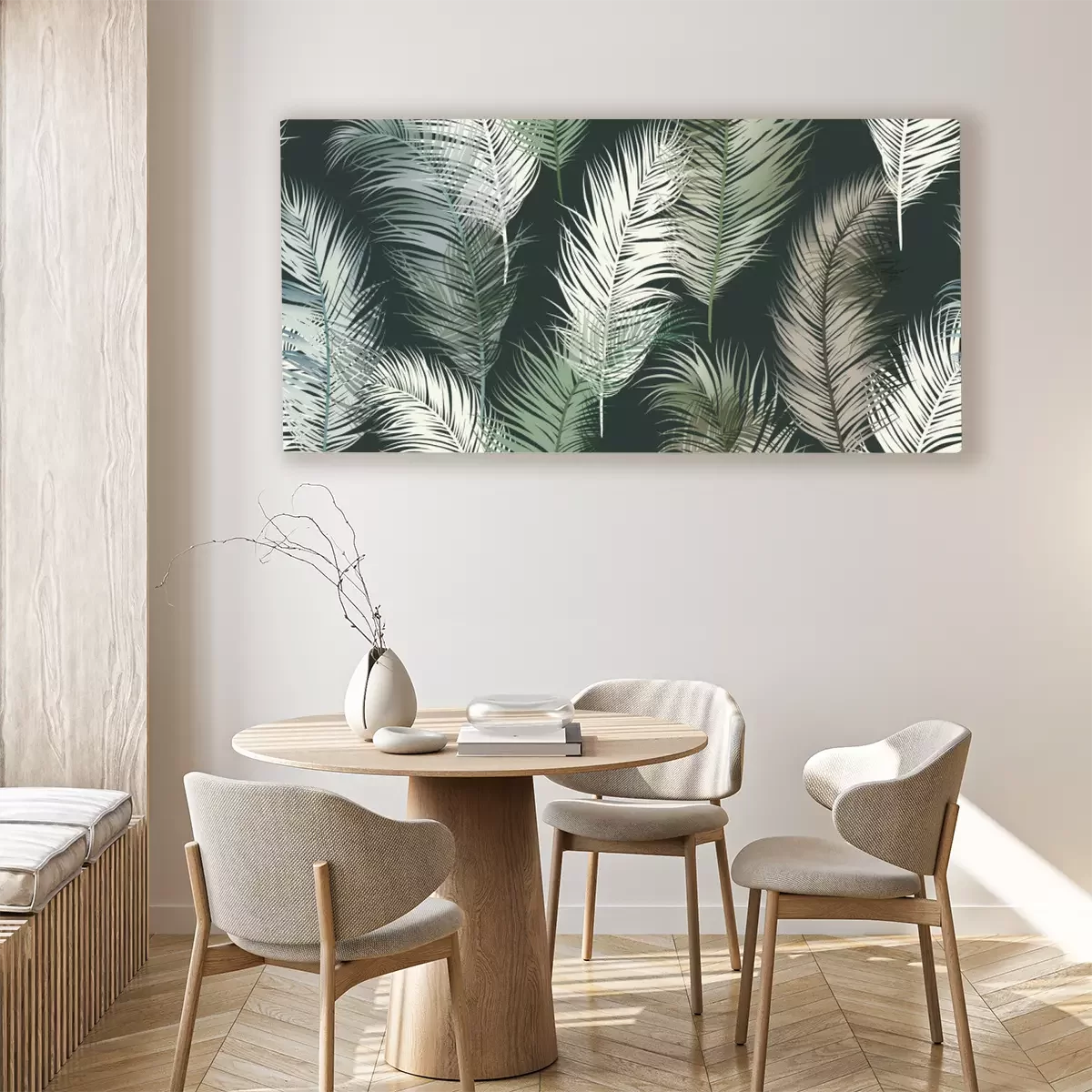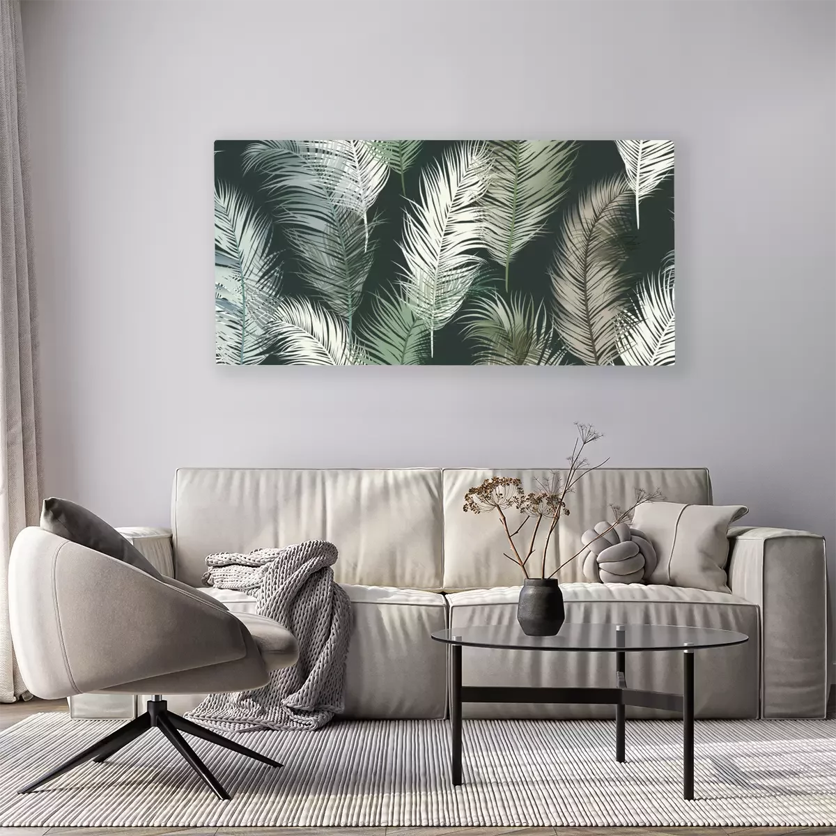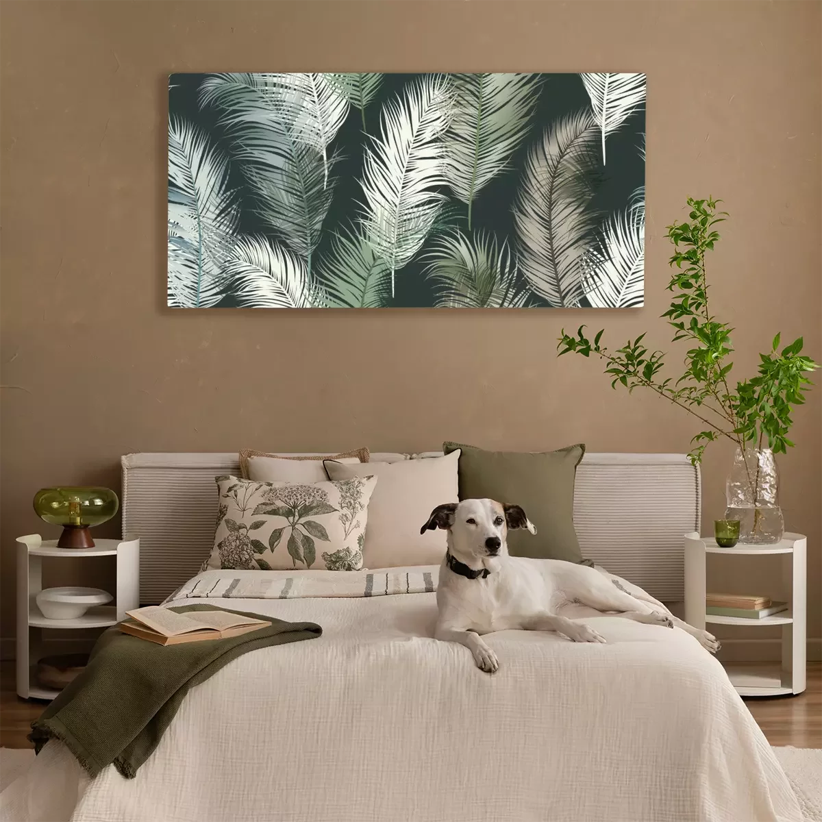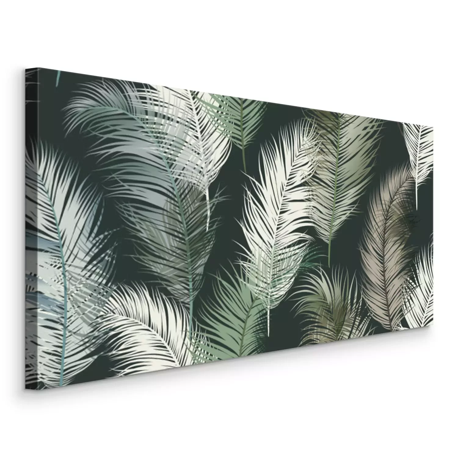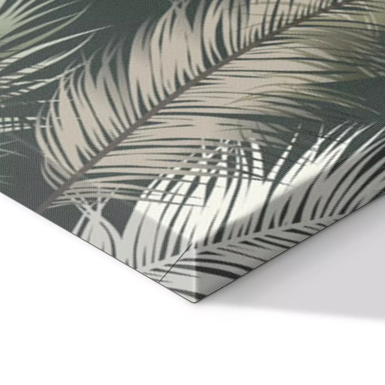Tableau : Feuilles de palmier sur un fond vert foncé