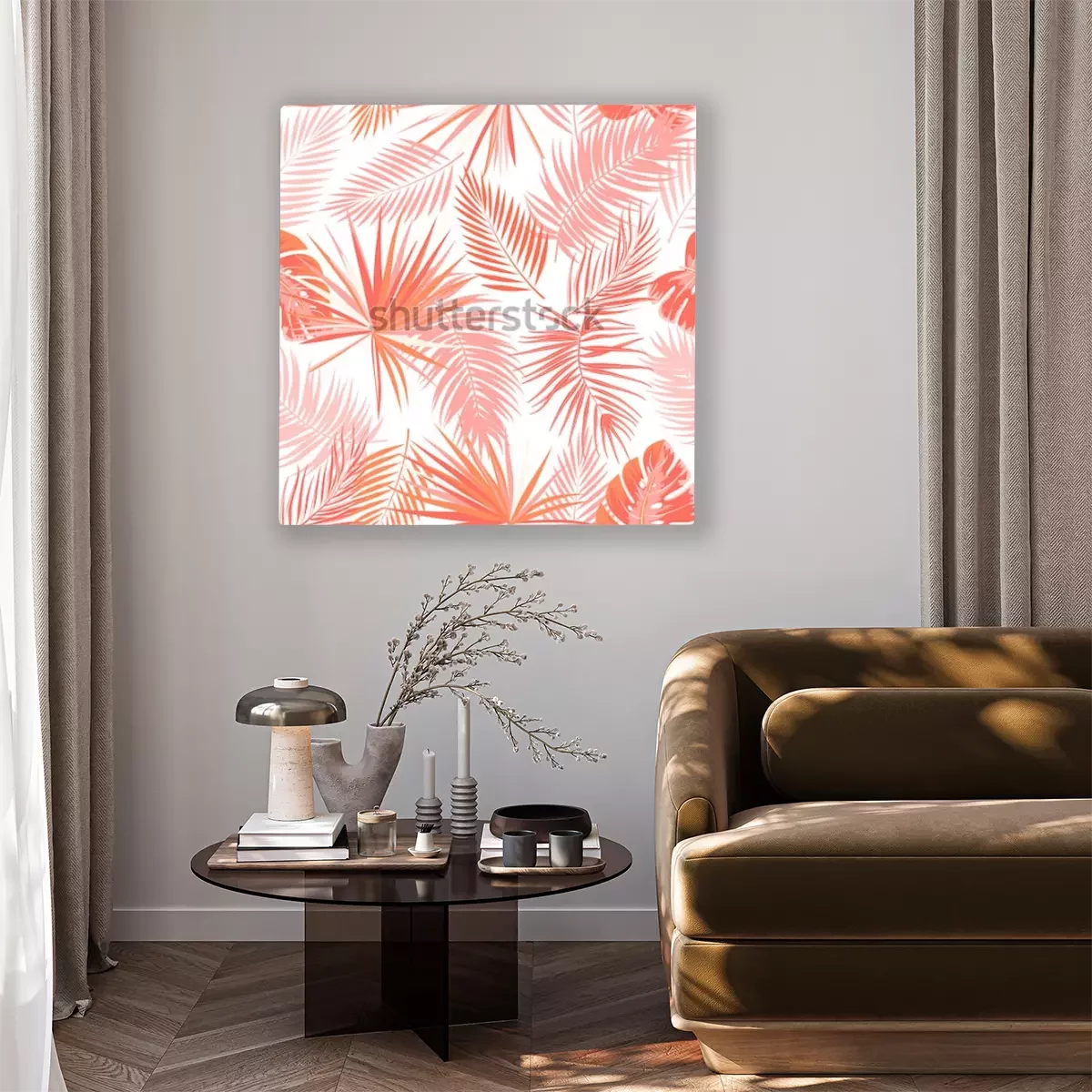 Tableau  Feuilles exotiques oranges