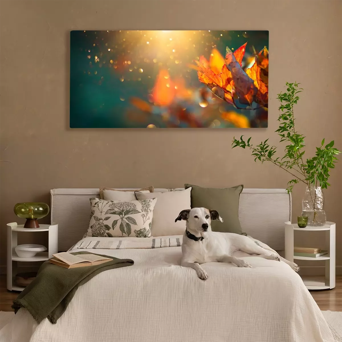 Tableau  Feuilles lumineuses colorées d'automne se balançant dans un arbre dans le parc automnal. Automne fond coloré, toile de fond d'automne