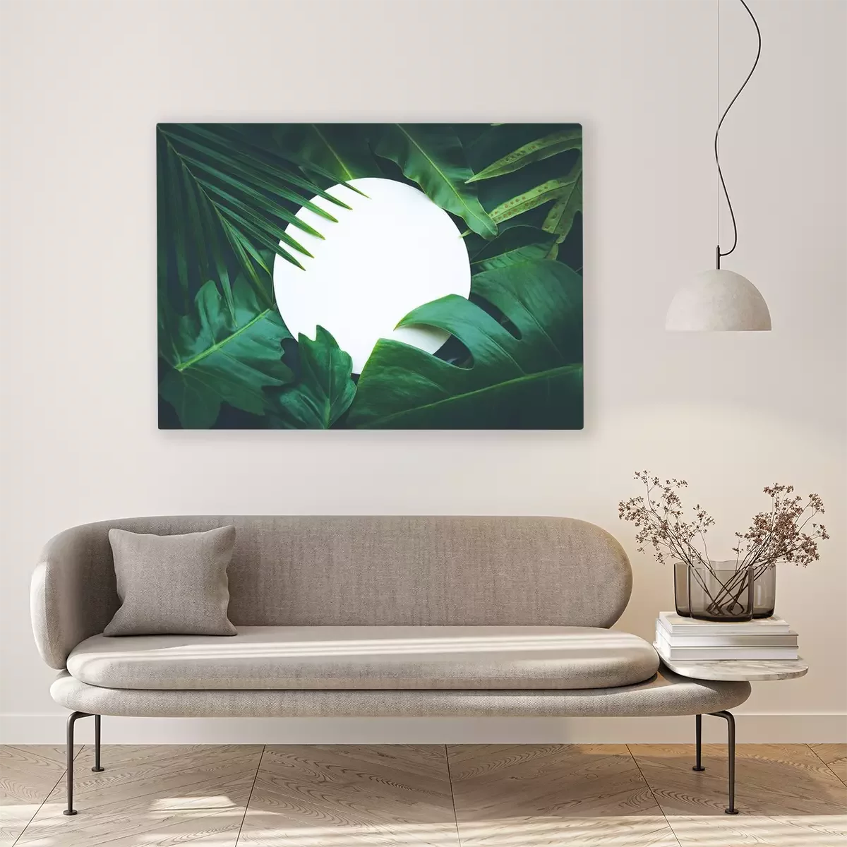 Tableau  Feuilles réelles avec un fond de copie blanc. Design de concept de nature botanique tropicale.