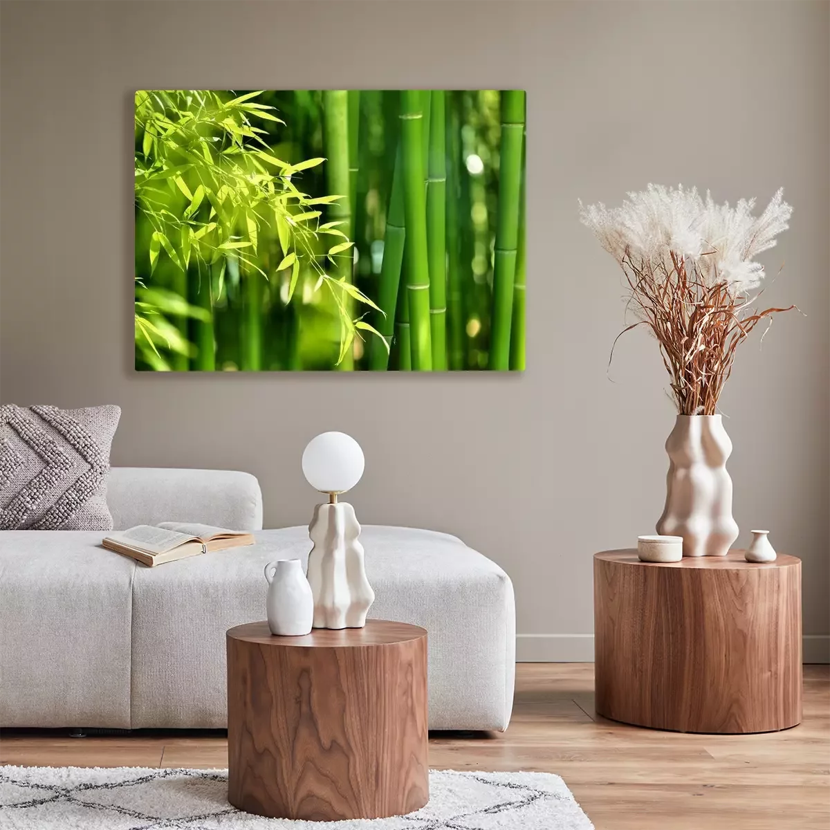 Tableau : Feuilles sur fond de pousses de bambou