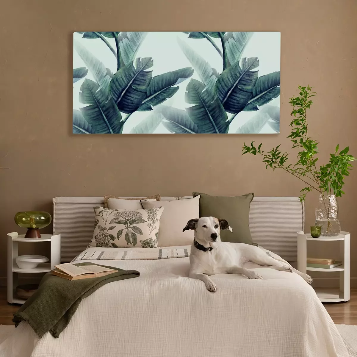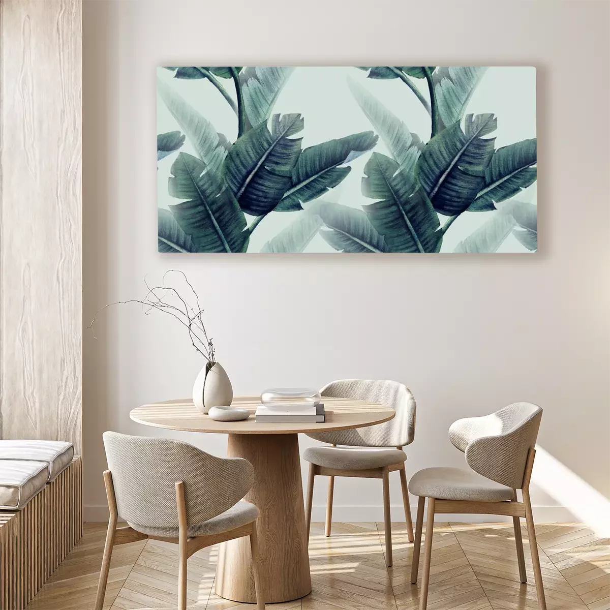 Tableau : Feuilles tropicales sur un fond clair