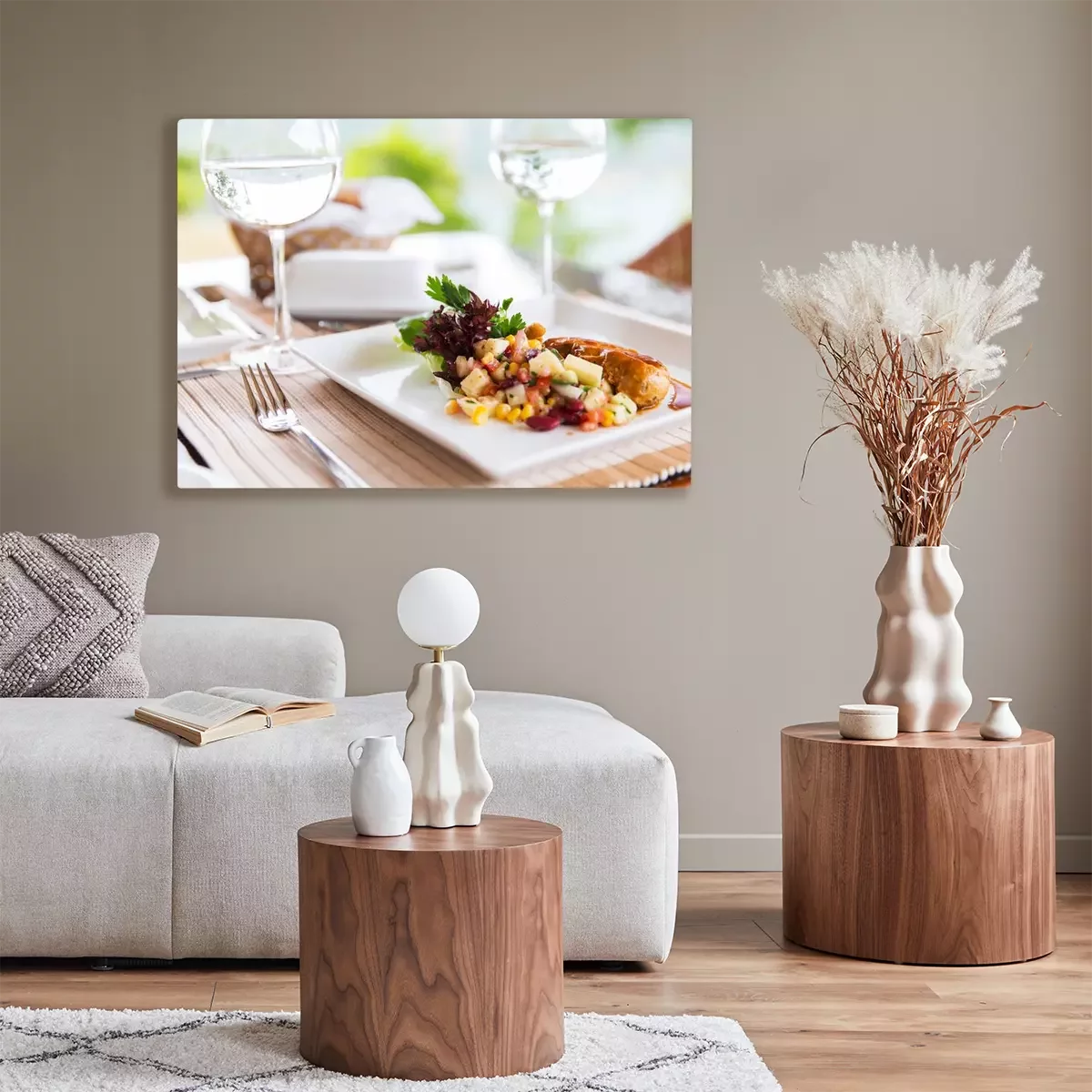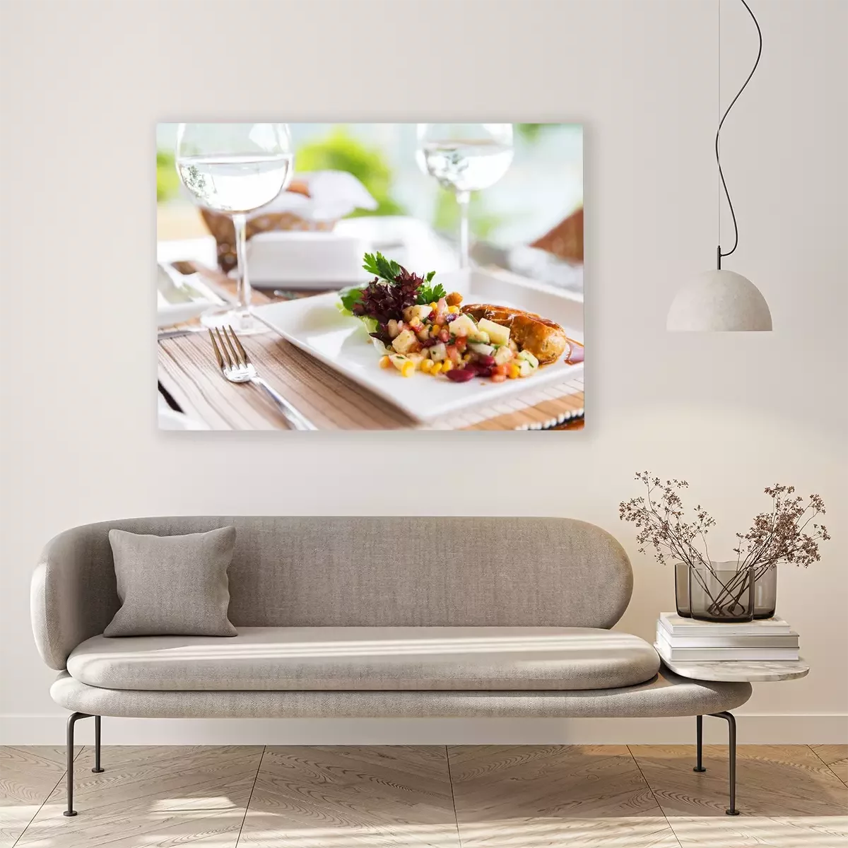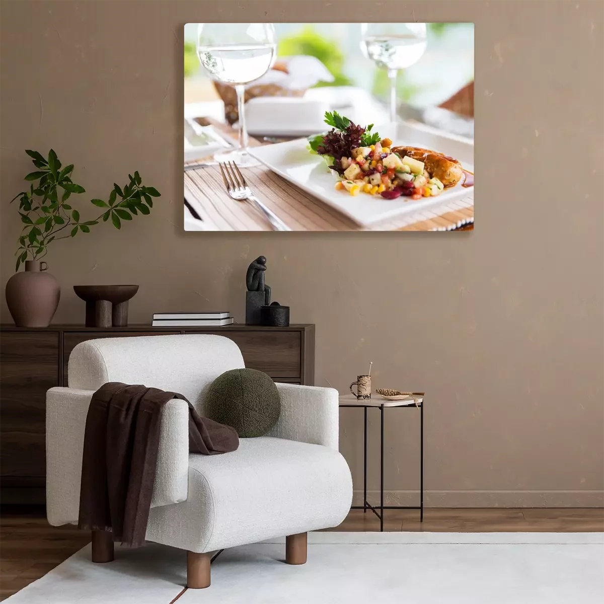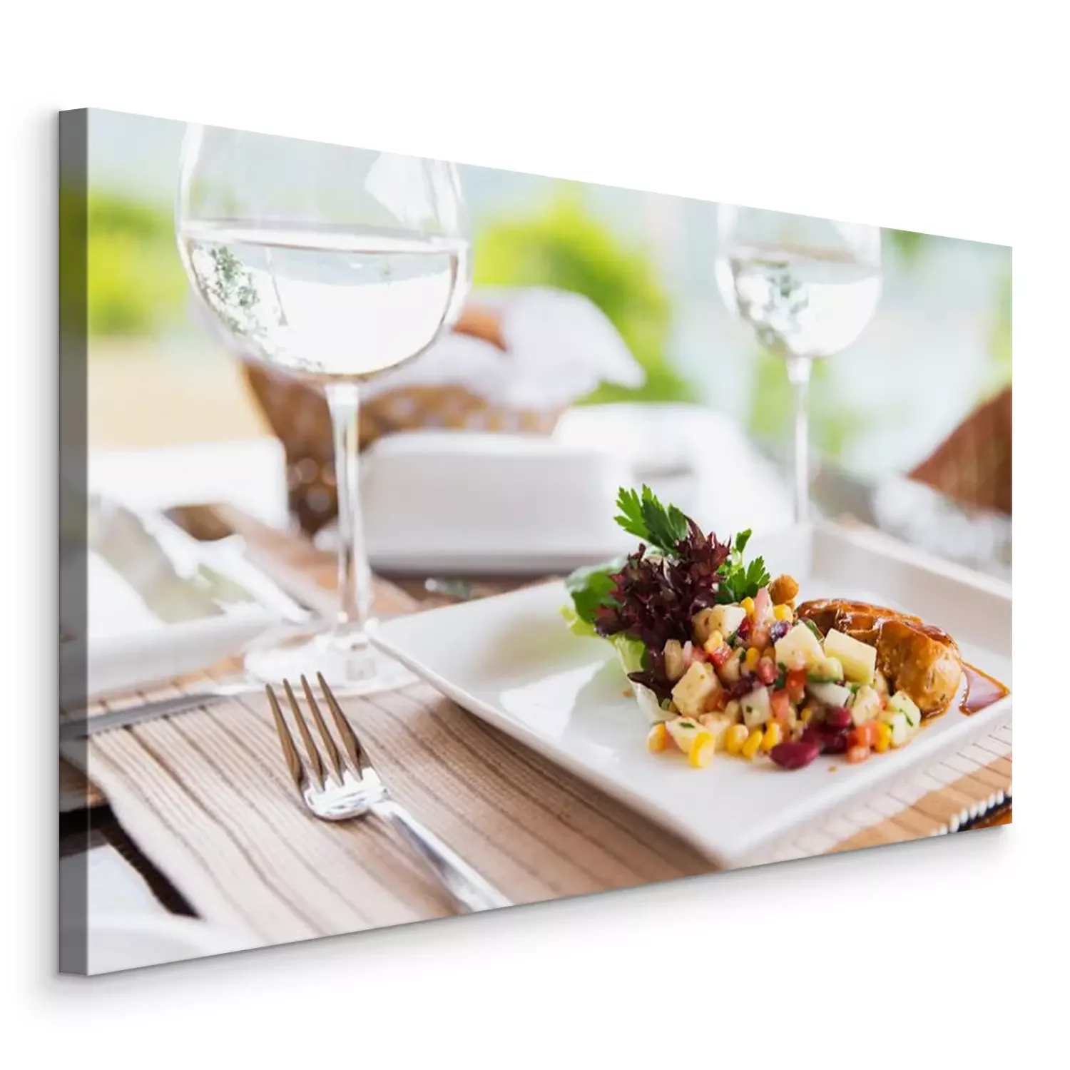 Tableau  Fin, haut, nourriture, eau, lunettes, restaurant