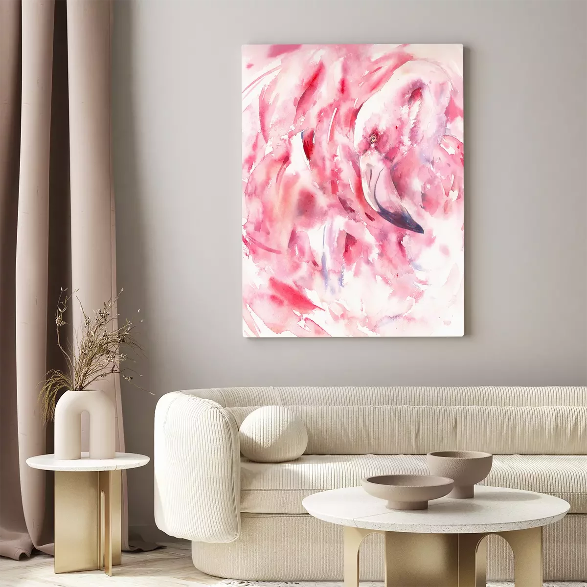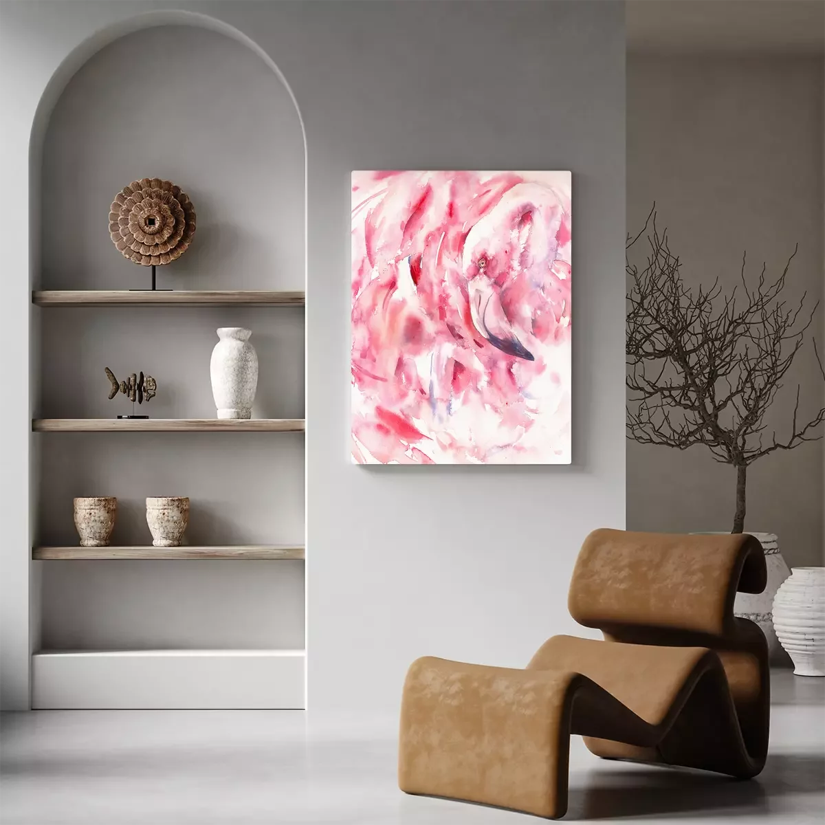 Tableau  Flamant rose abstrait aquarelle
