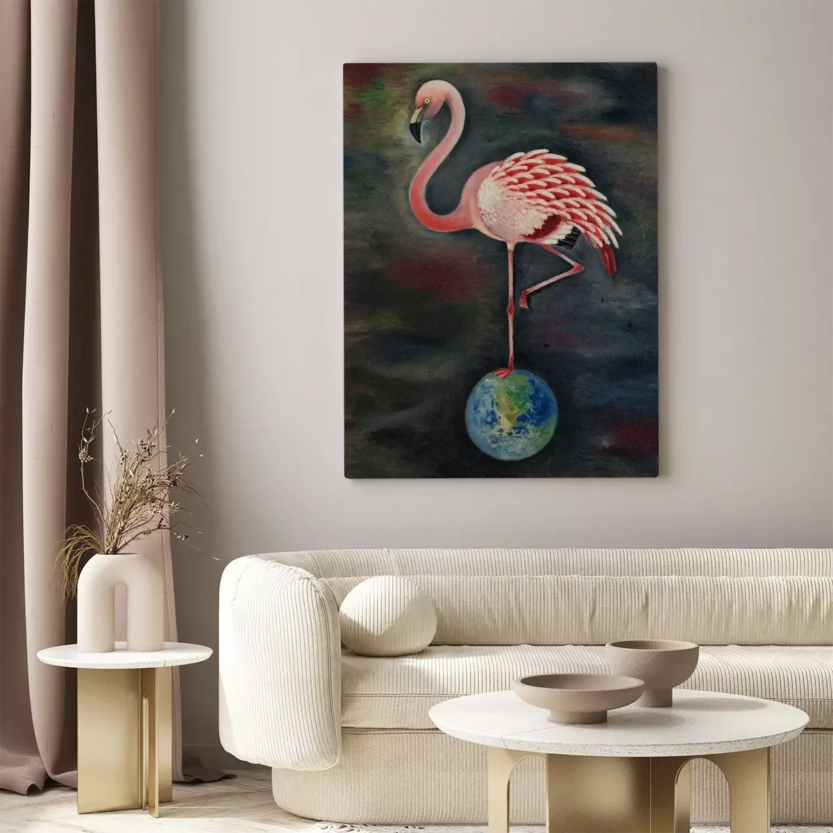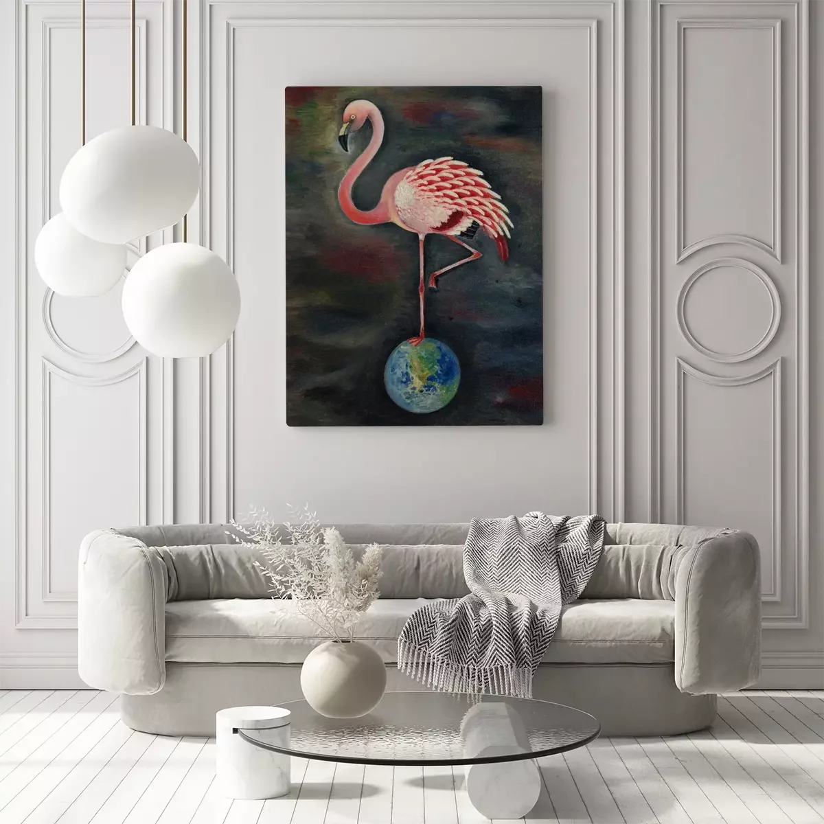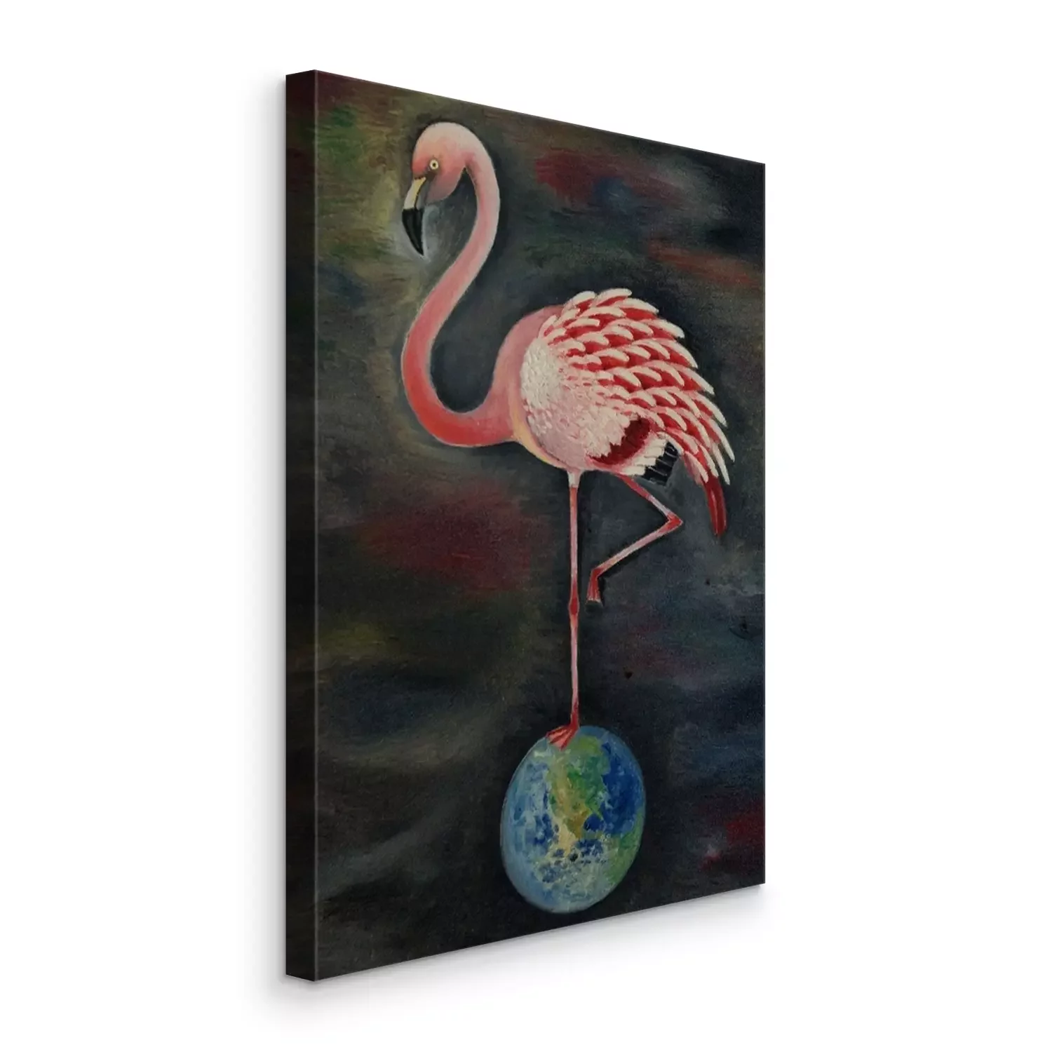 Tableau : Flamant rose sur le globe