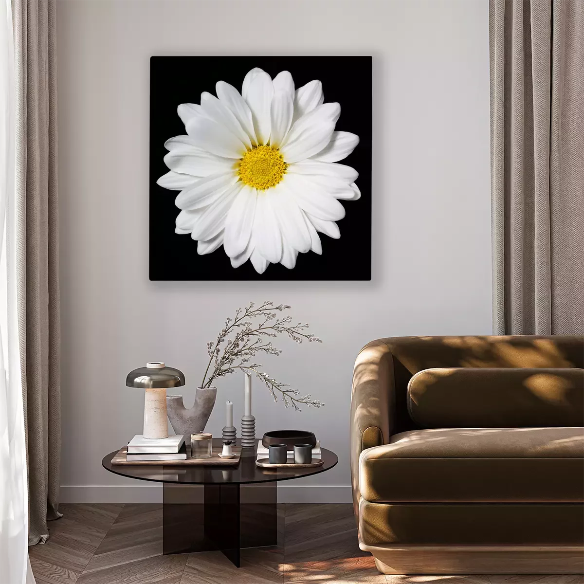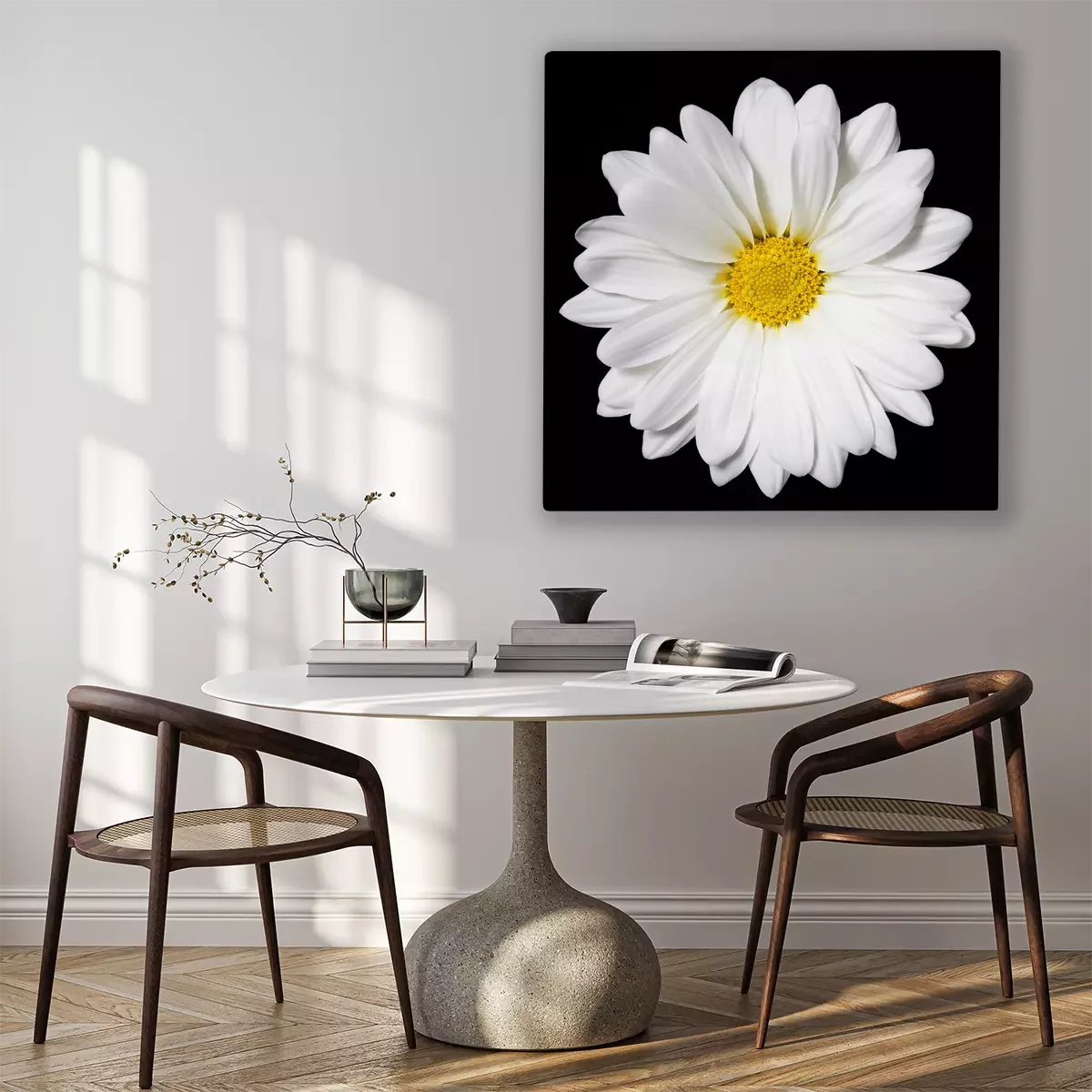 Tableau : fleur de camomille sur fond noir. Daisy.