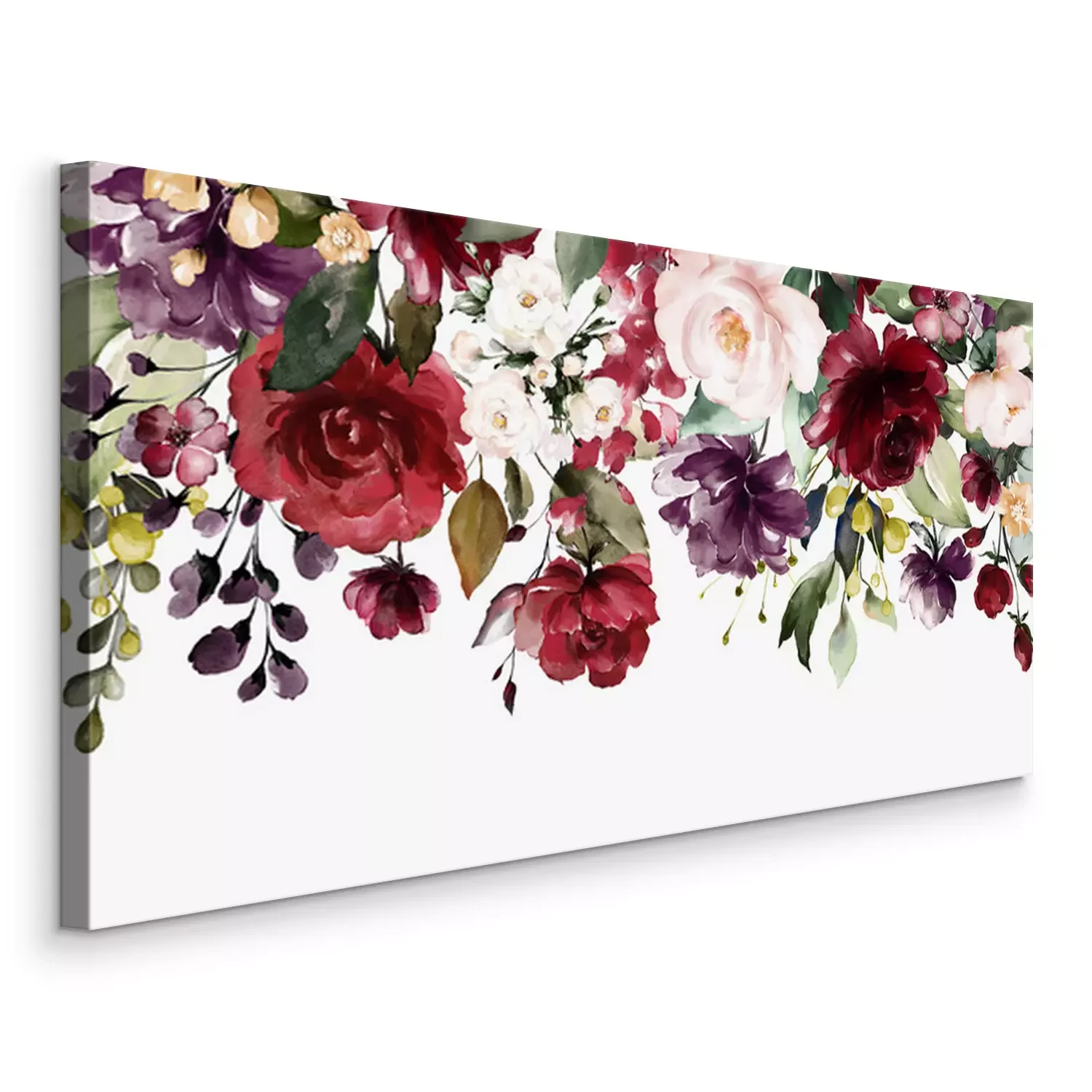 Tableau  Fleurs d'aquarelle. illustration florale, feuille et boutons. Composition botanique pour mariage ou carte de voeux. Bordure, branche de fleurs - roses d'abstraction