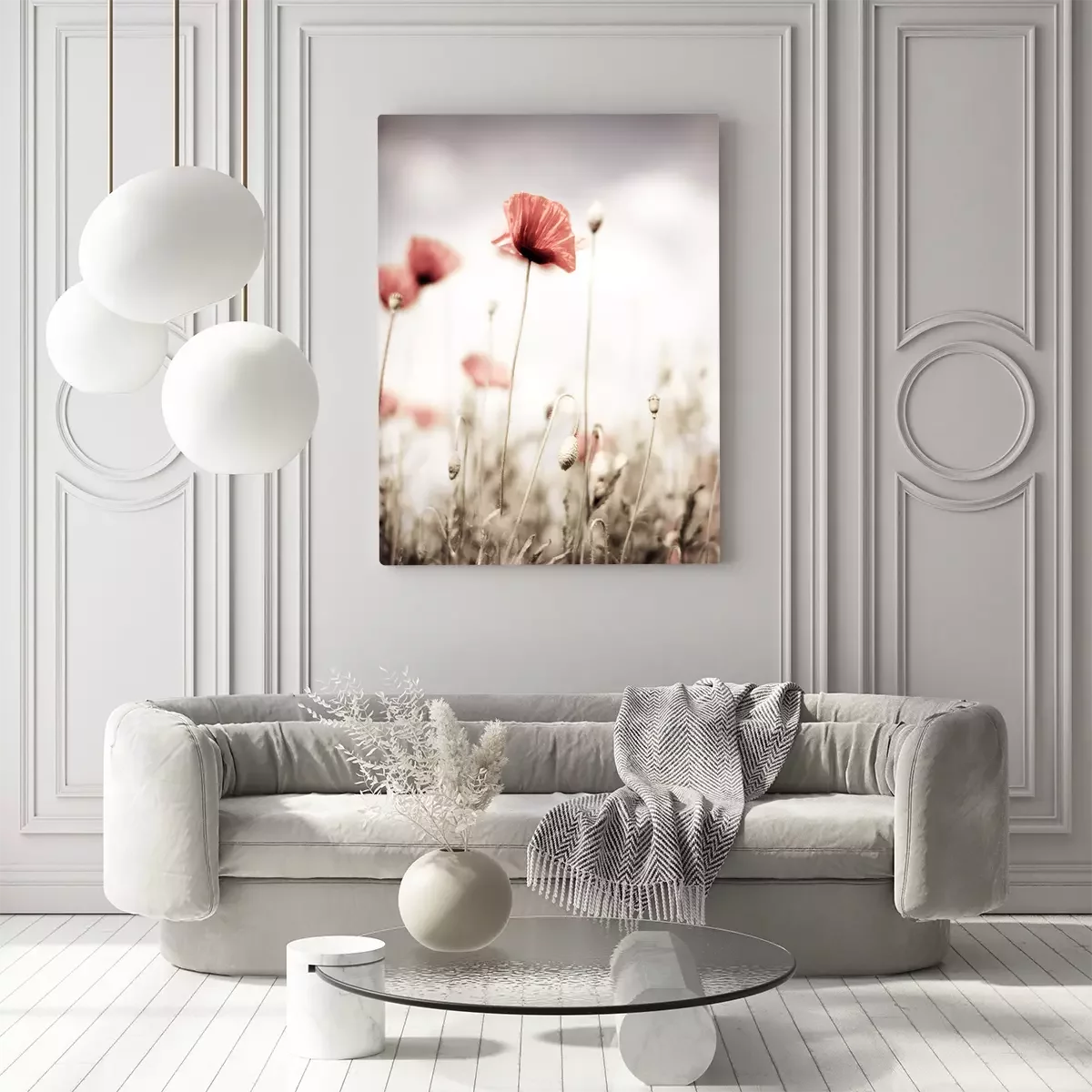 Tableau : Fleurs dans le ciel blanc