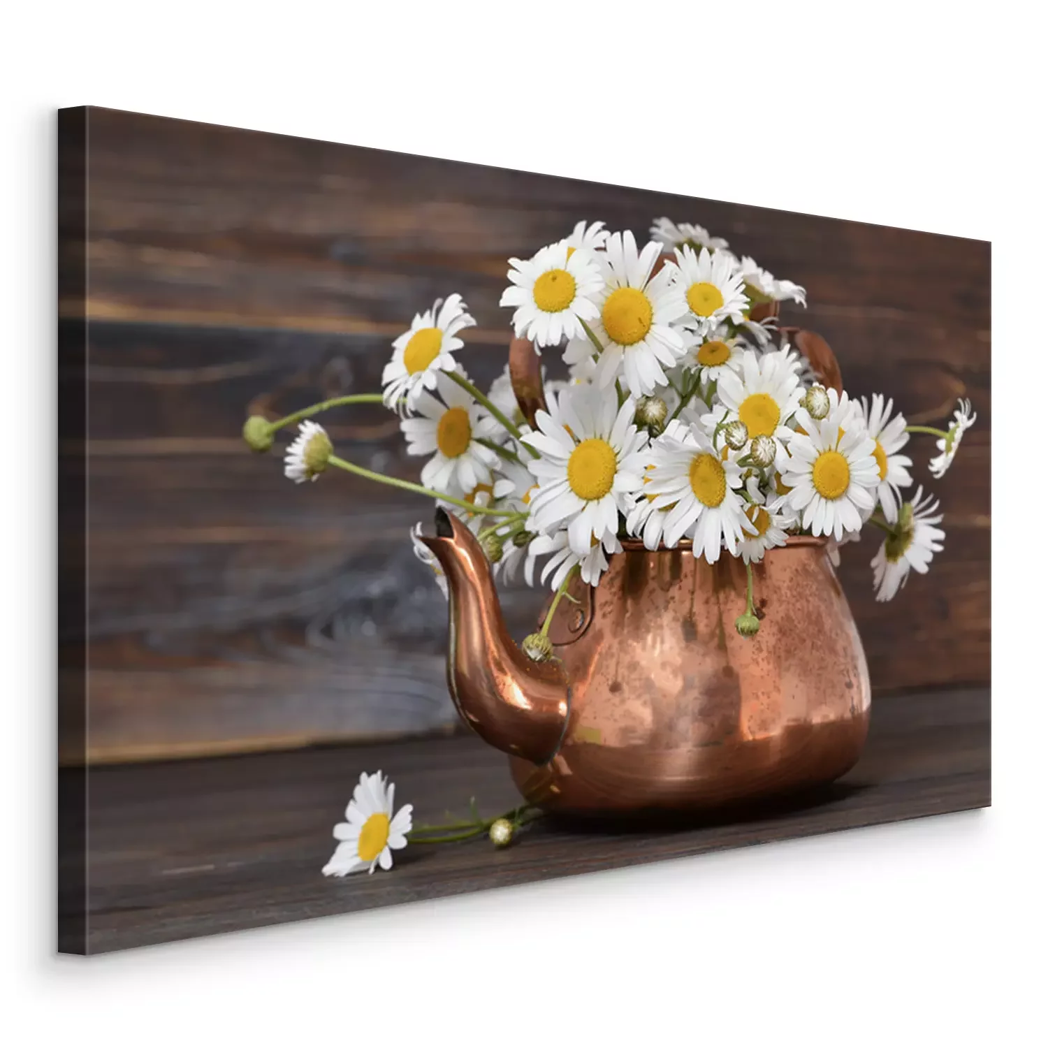 Tableau  Fleurs de Marguerite dans une théière vintage sur fond en bois