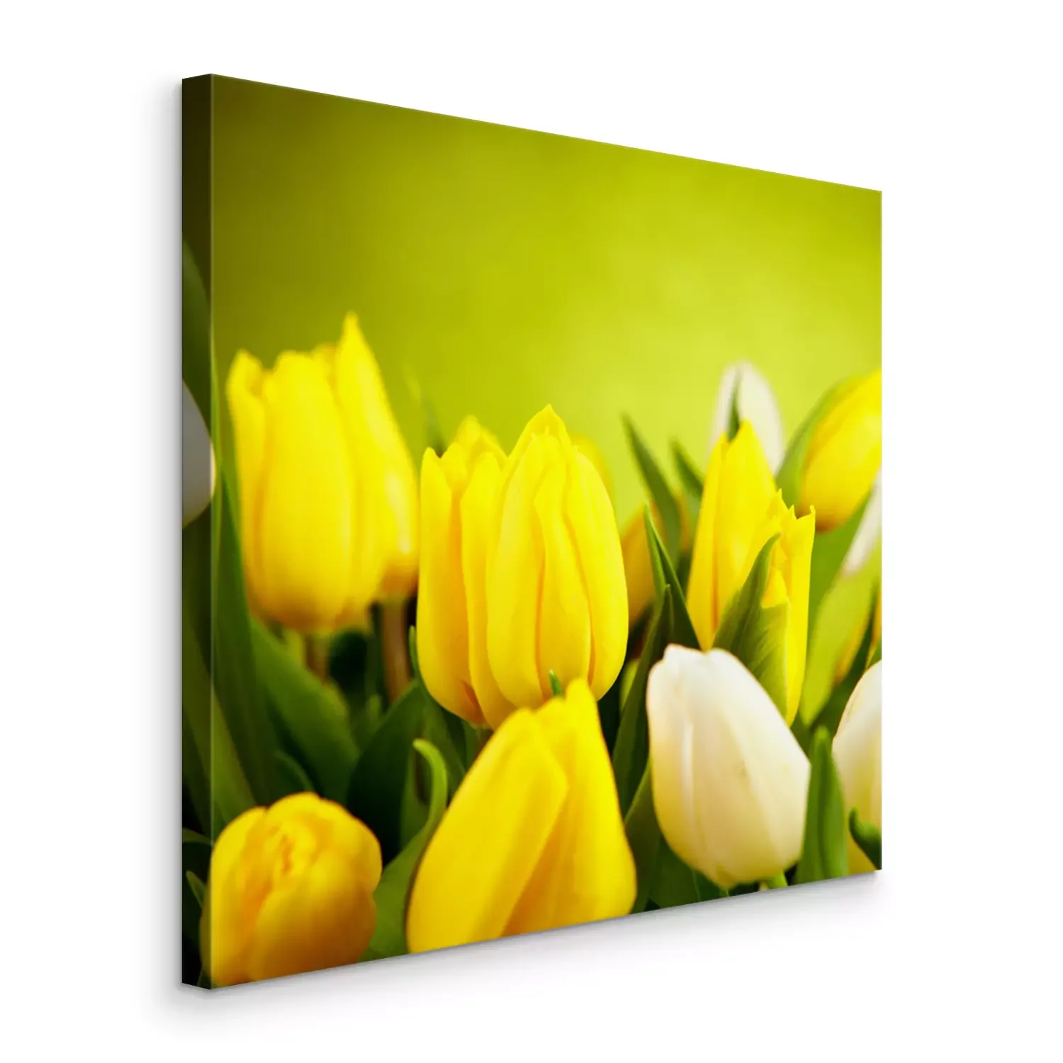 Tableau  Fleurs jaunes et blanches tulipe avec copie espace vert