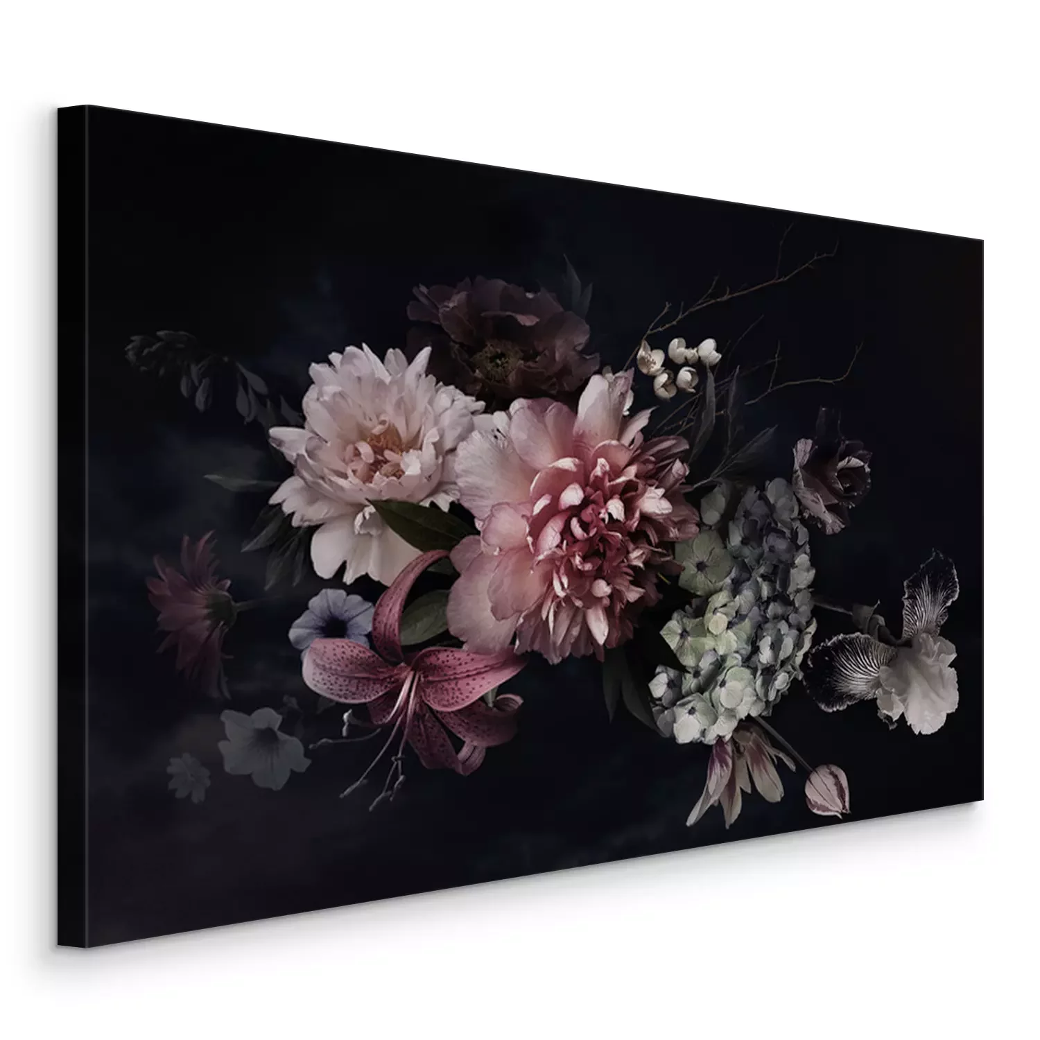 Pivoines dans l'obscurité du noir profond