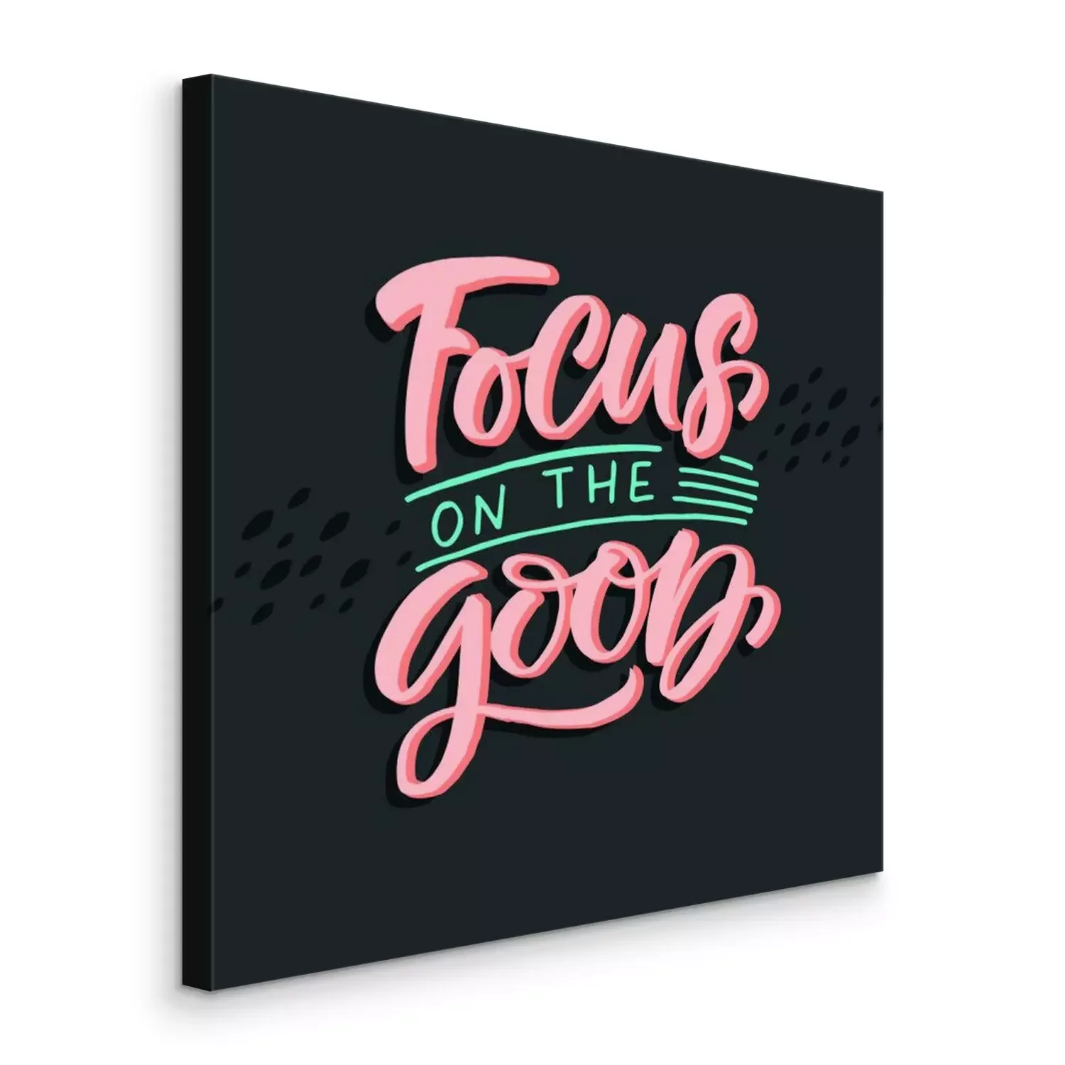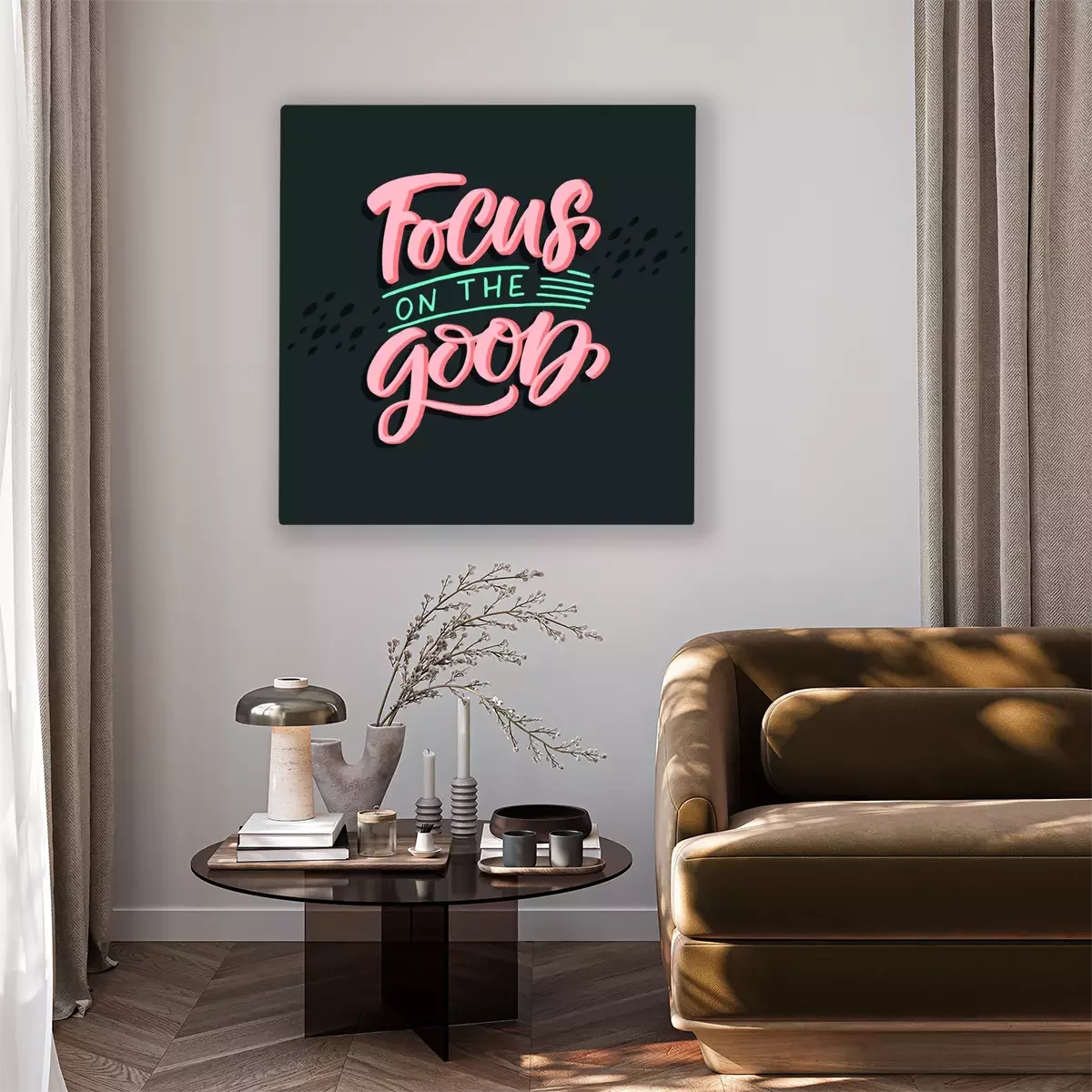 Tableau : Focus on the good quote hand drawn vector lettering. Doodle lifestyle phrase, slogan illustration. Leave comfort zone. Scandinavian style typography. Inspirational, motivational poster, banner