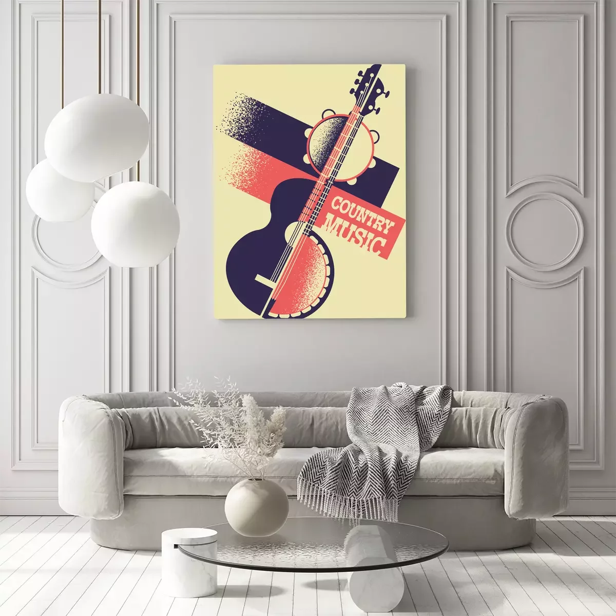 Tableau  Fond de musique country avec instruments de musique et texte de décoration. Affiche rétro de vecteur