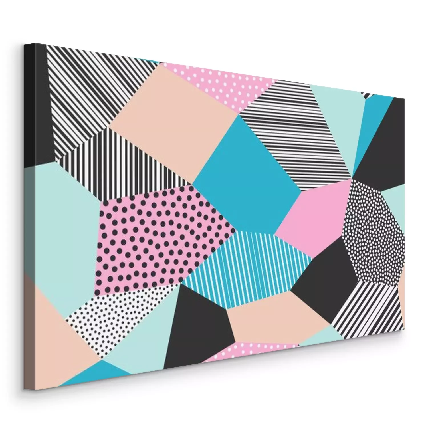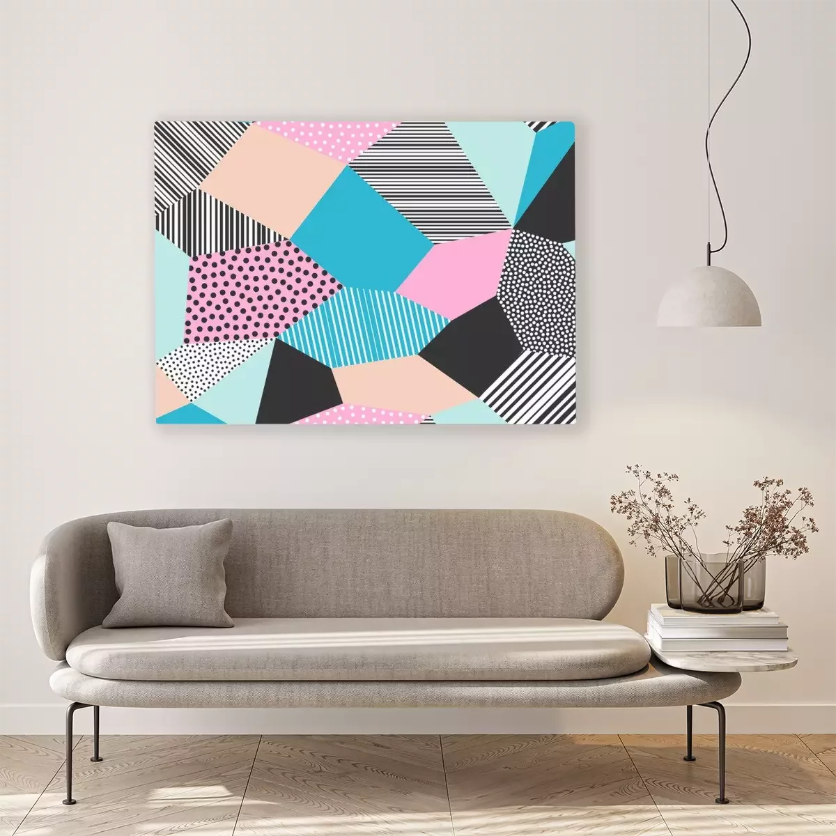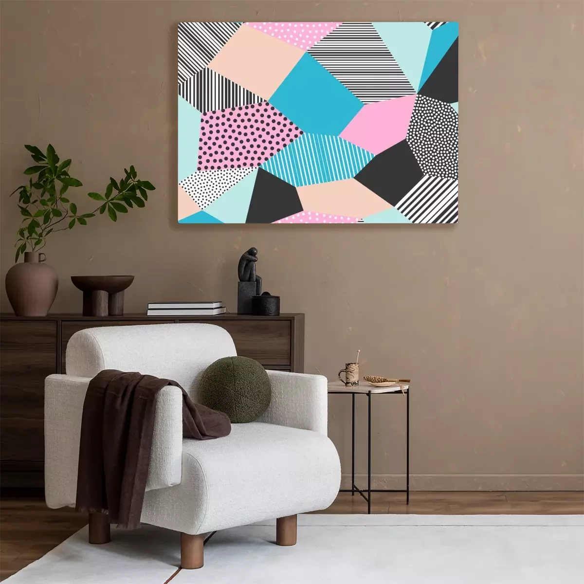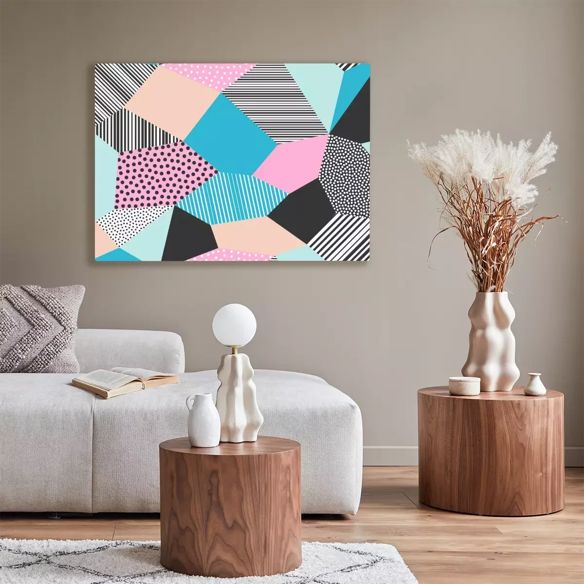 Tableau  Fond de patchwork abstrait d'illustration de patch vectoriel de formes giclées points, lignes et traits