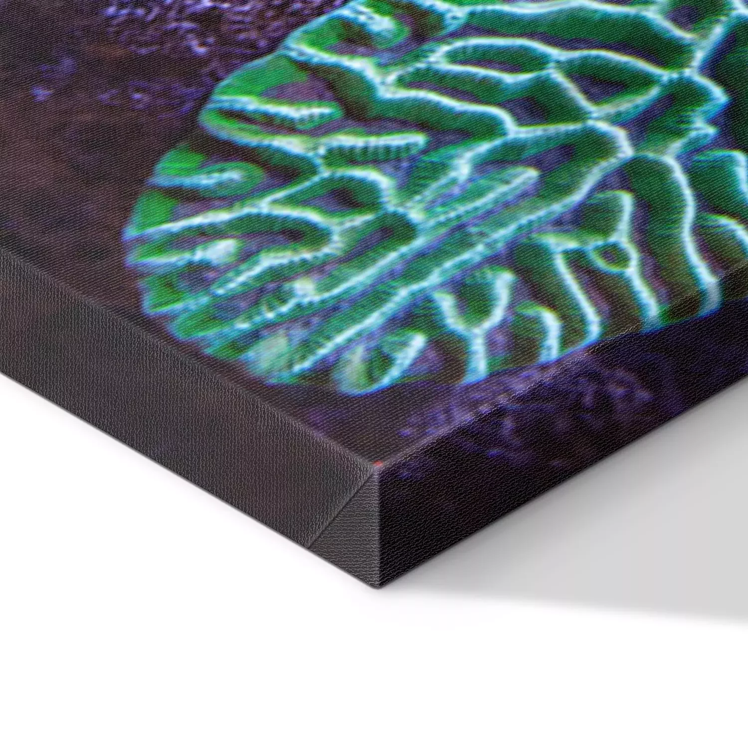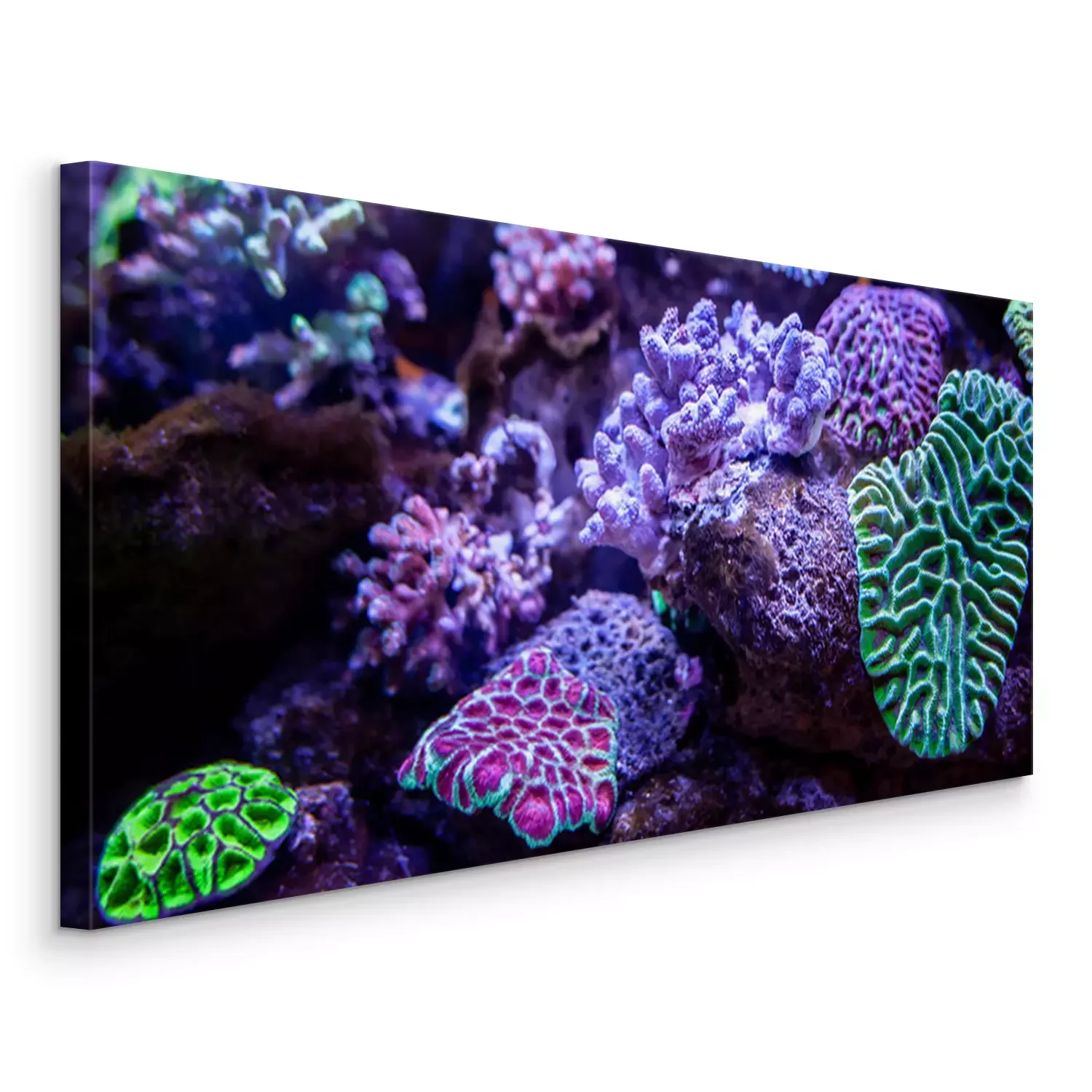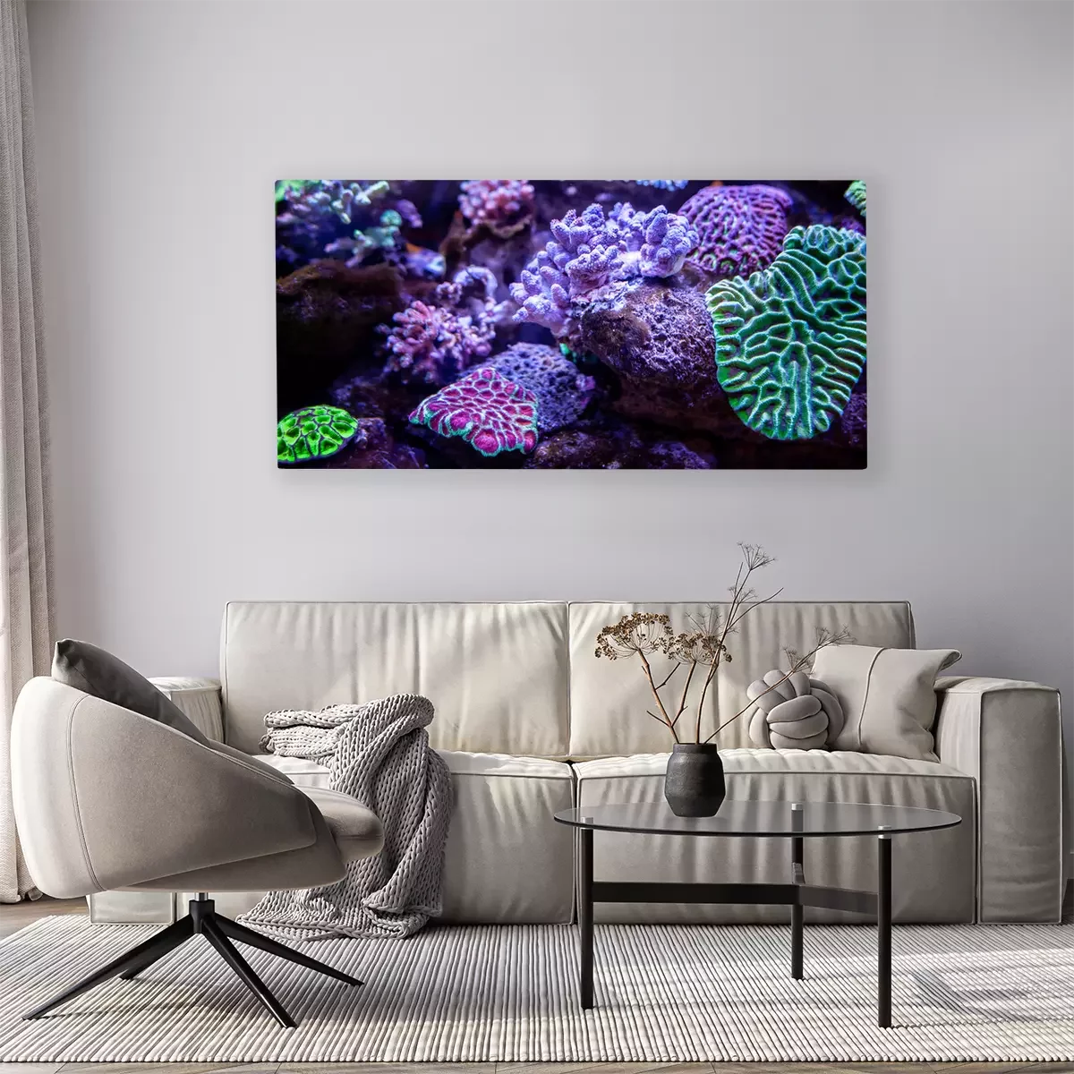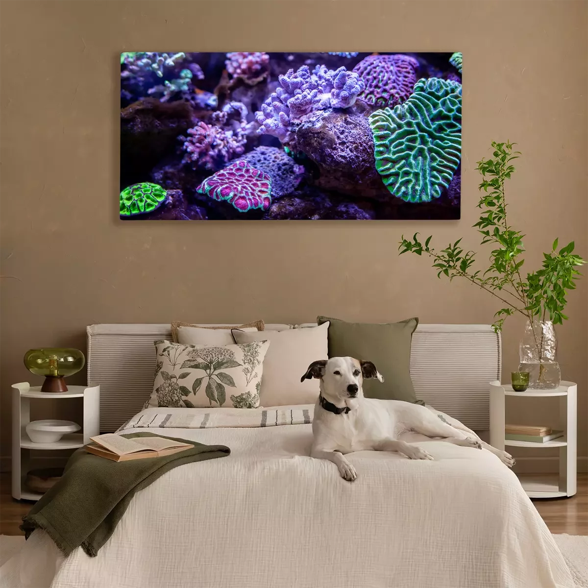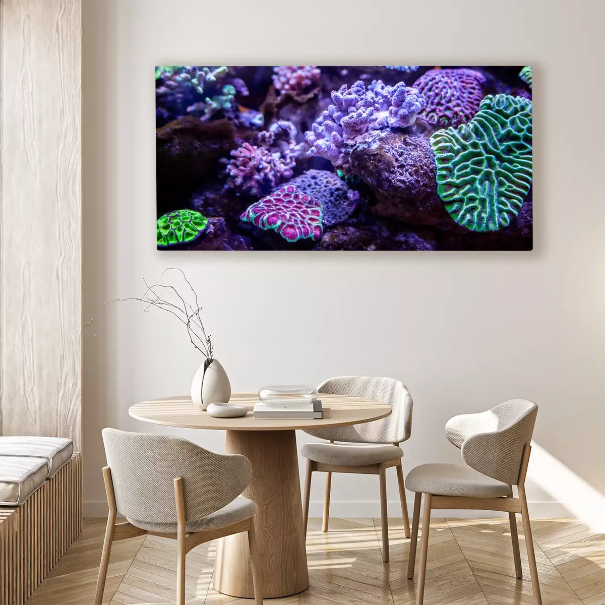 Tableau : Fond de paysage de récif corallien sous-marin dans l'océan lilas profond