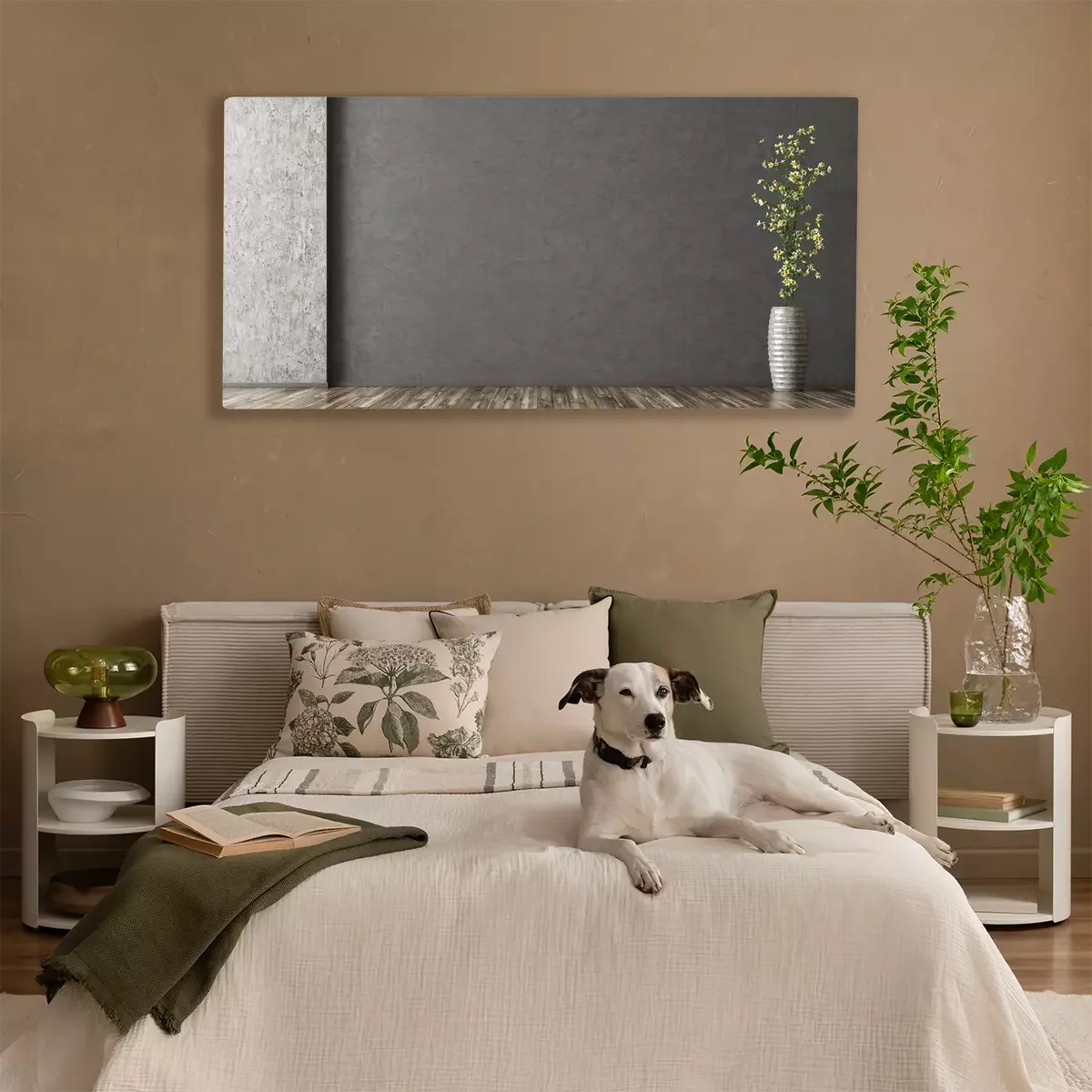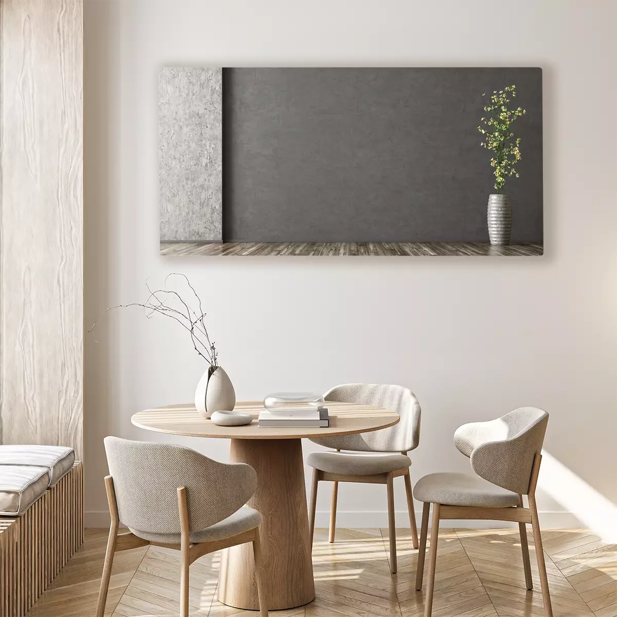 Tableau  Fond intérieur de la salle avec mur de stuc et vase avec rendu 3d de la branche