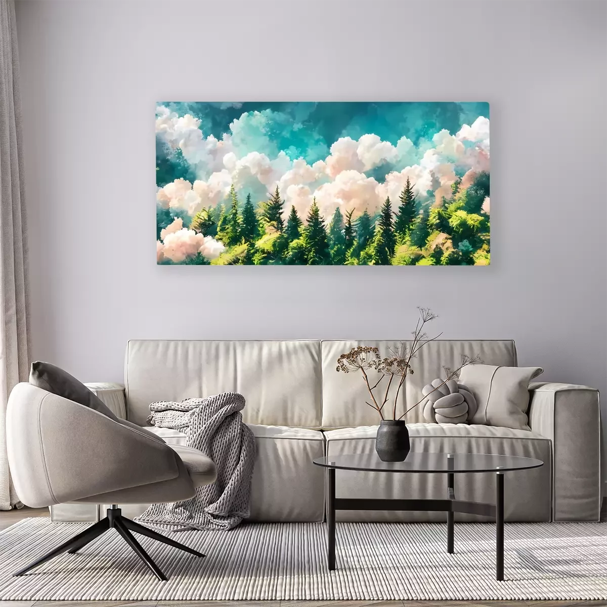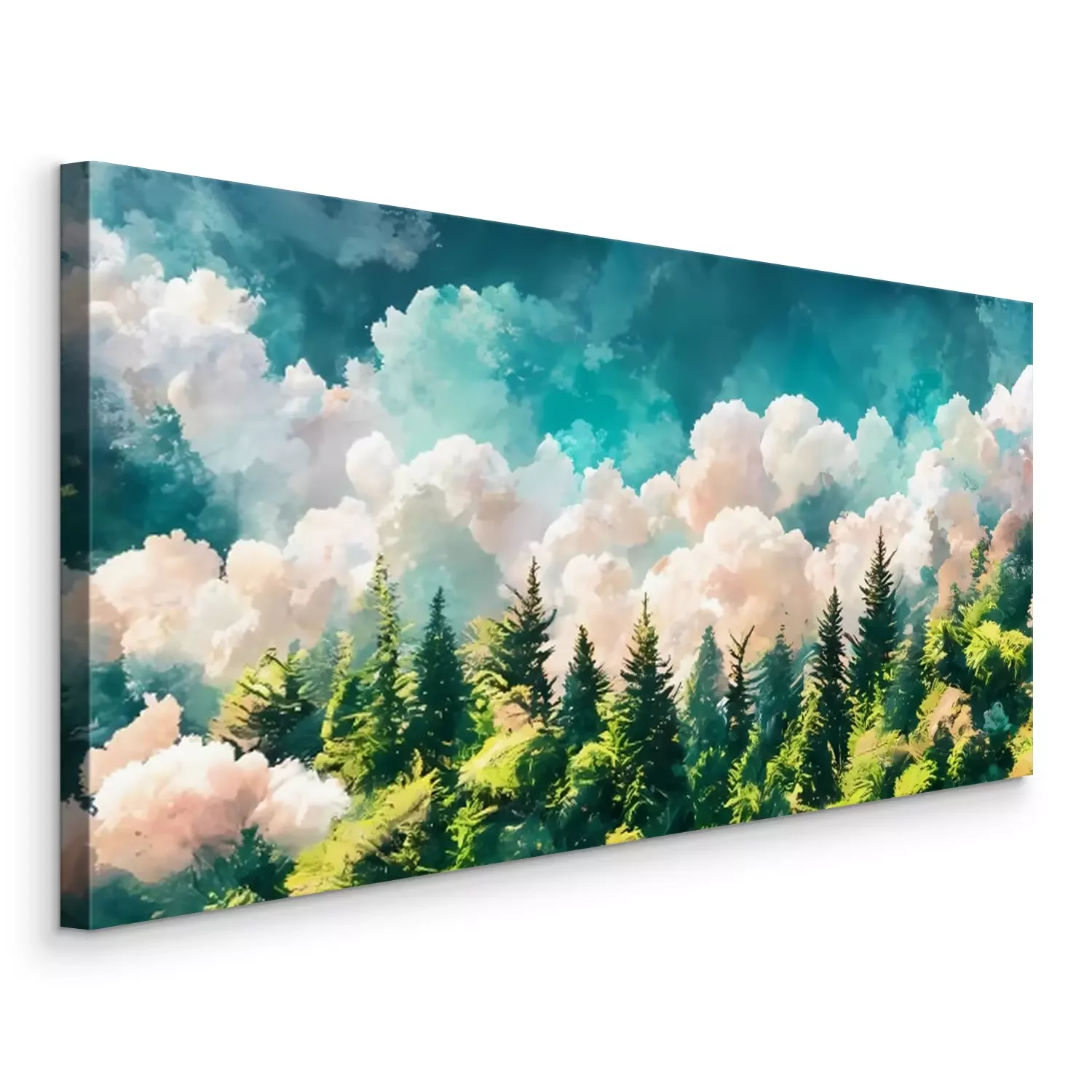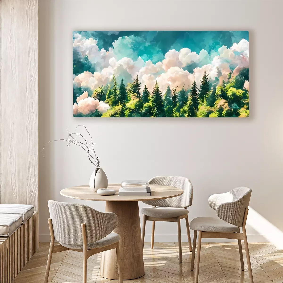 Tableau  Forêt dense ensoleillée enveloppée de brouillard