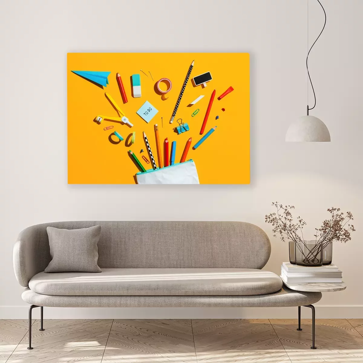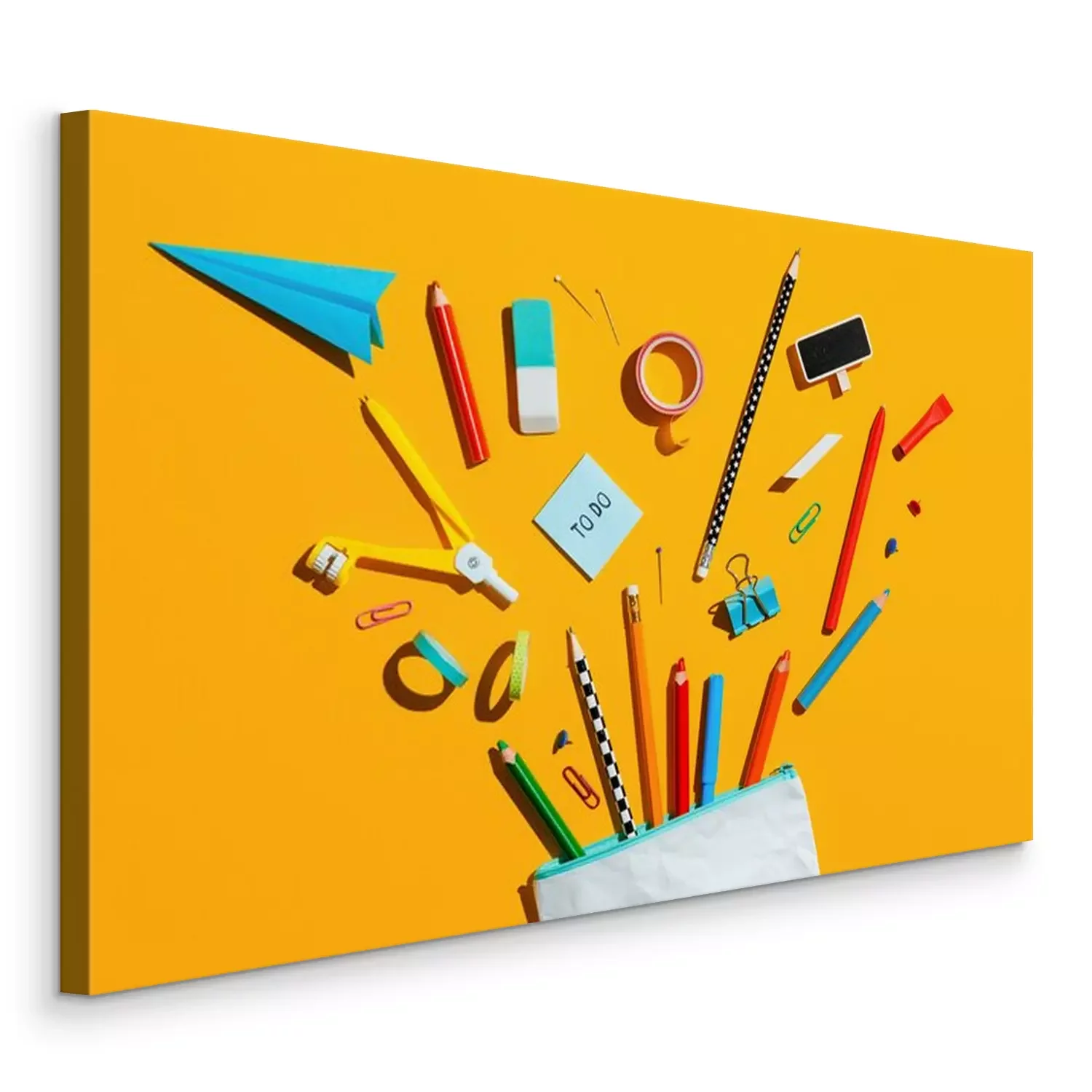 Tableau : Fournitures scolaires et étui à crayons. Retour au concept d'école.