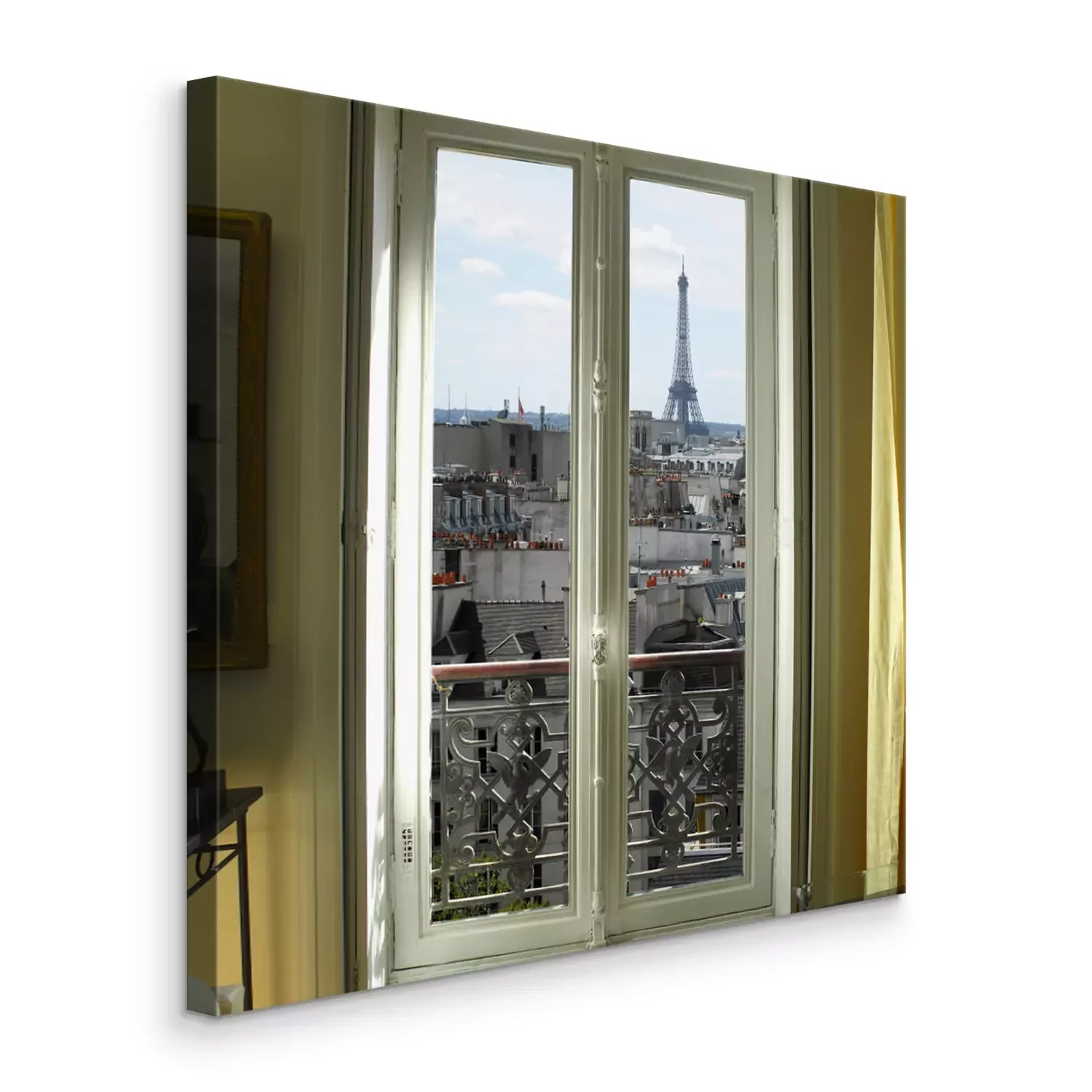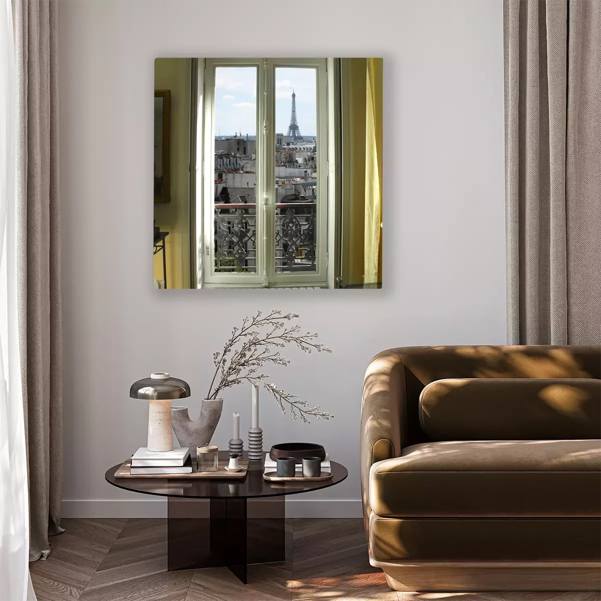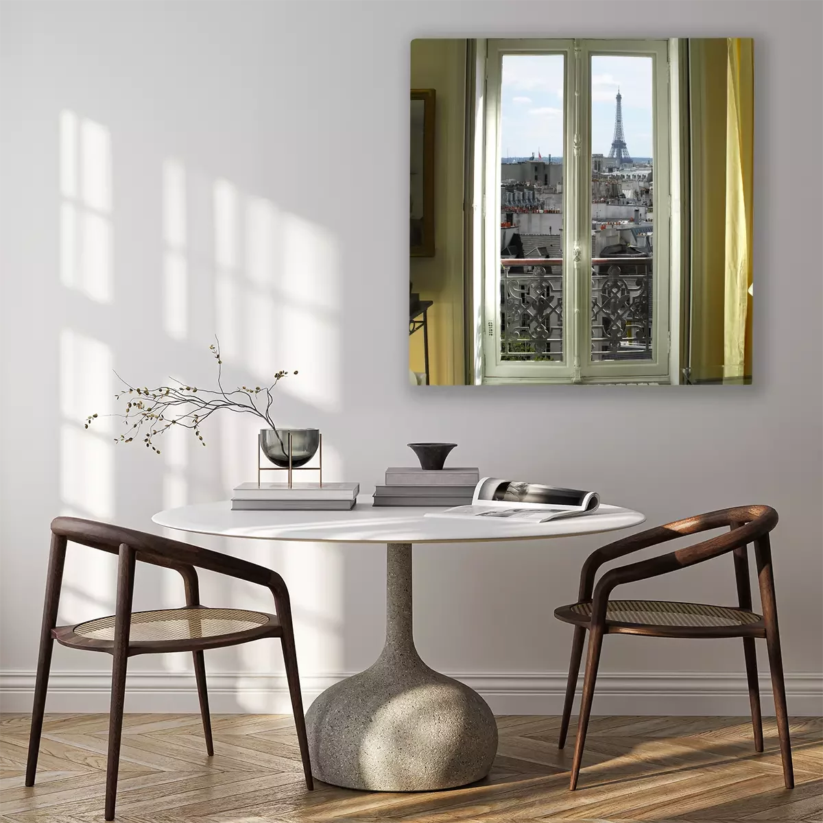 Tableau  France - Paris - Fenêtre avec vue Tour Eiffel et les toits