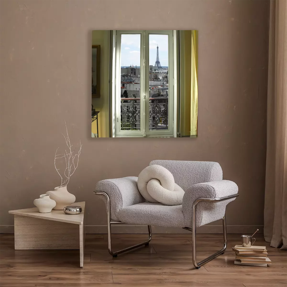 Tableau : France - Paris - Fenêtre avec vue Tour Eiffel et les toits