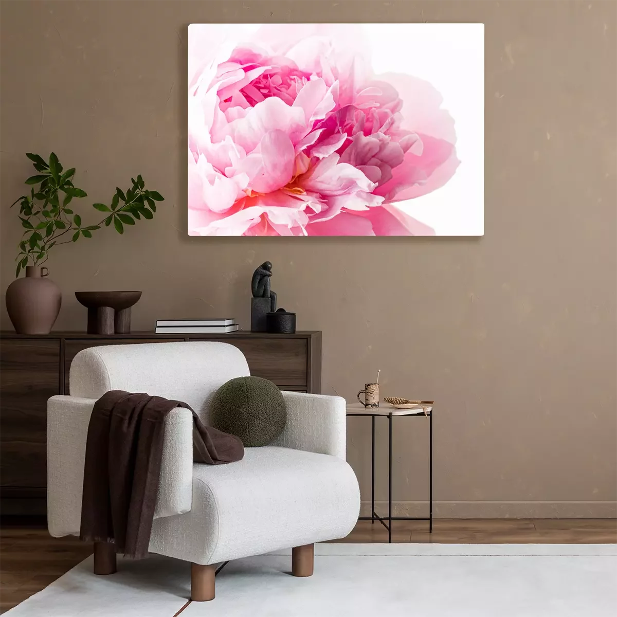 Tableau  fresh peony flower on the white background