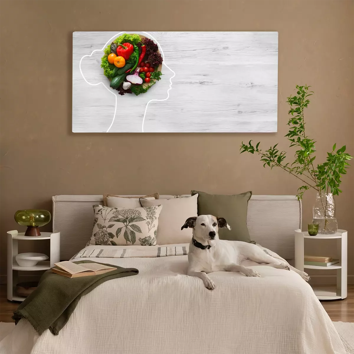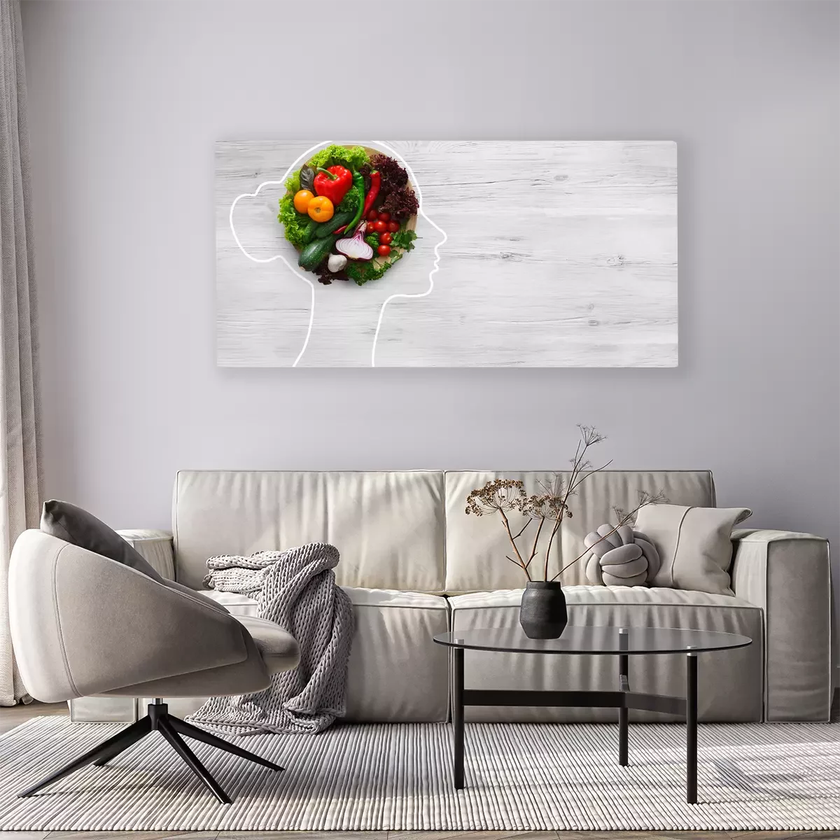 Tableau : Fresh vegetables in woman head symbolizing health nutrition