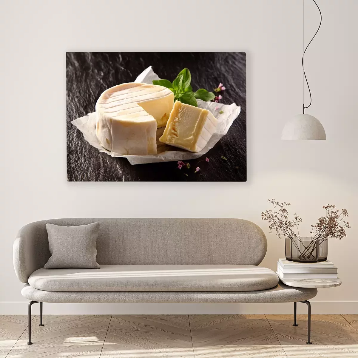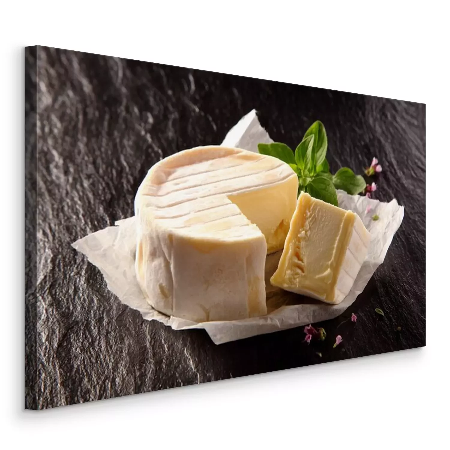 Tableau : Fromage à pâte molle à découper et basilic frais