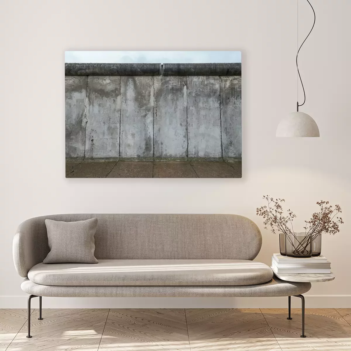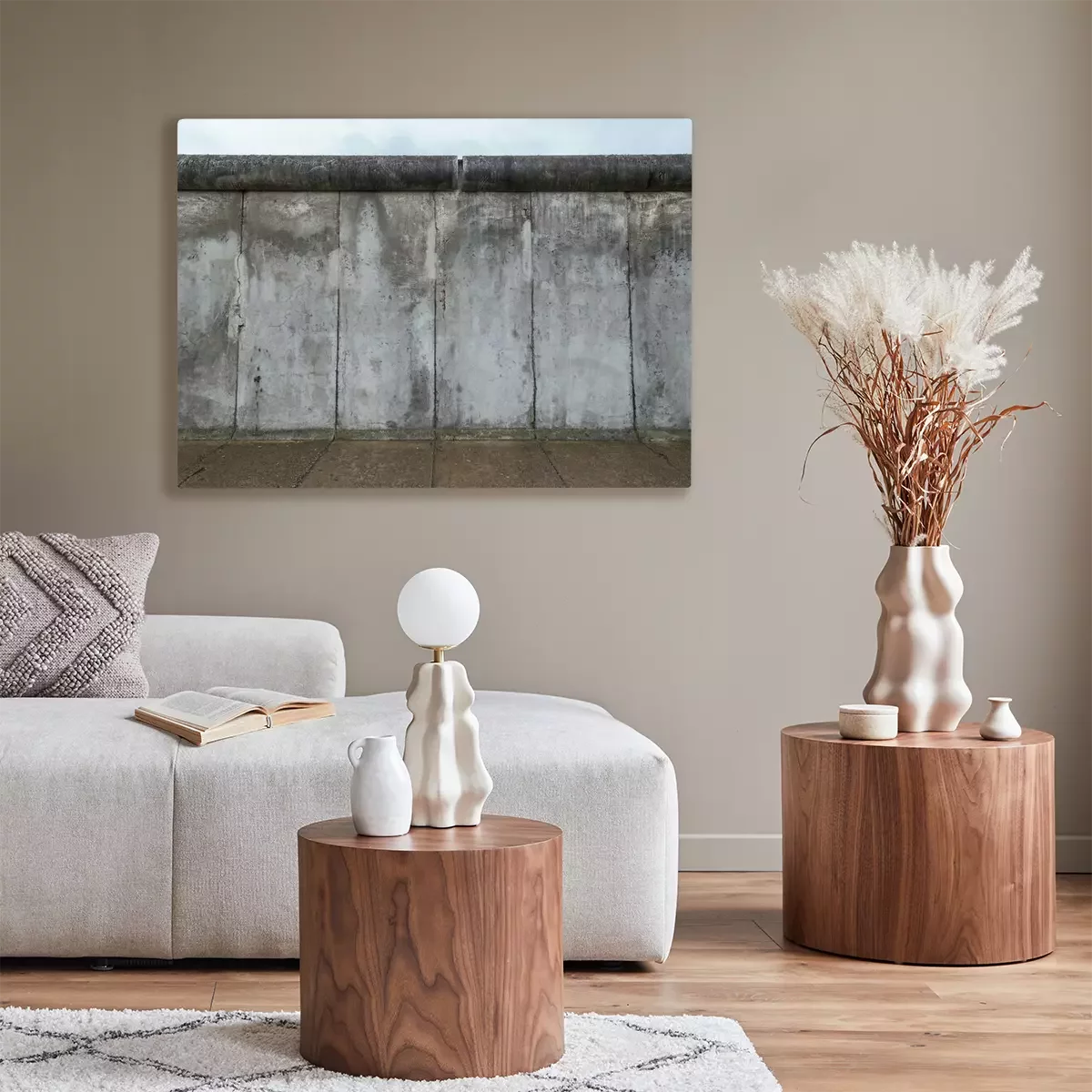 Tableau  Front view of a section of the original Berlin Wall at the Berlin Wall Memorial (Berliner Mauer) in Berlin, Germany, on a cloudy day.