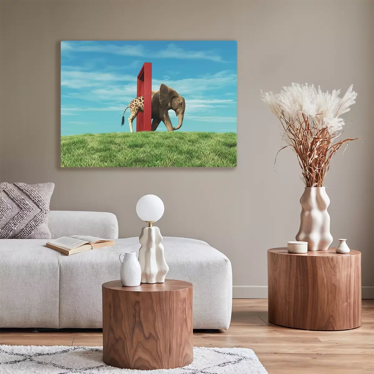Frontière abstraite entre un éléphant et une girafe