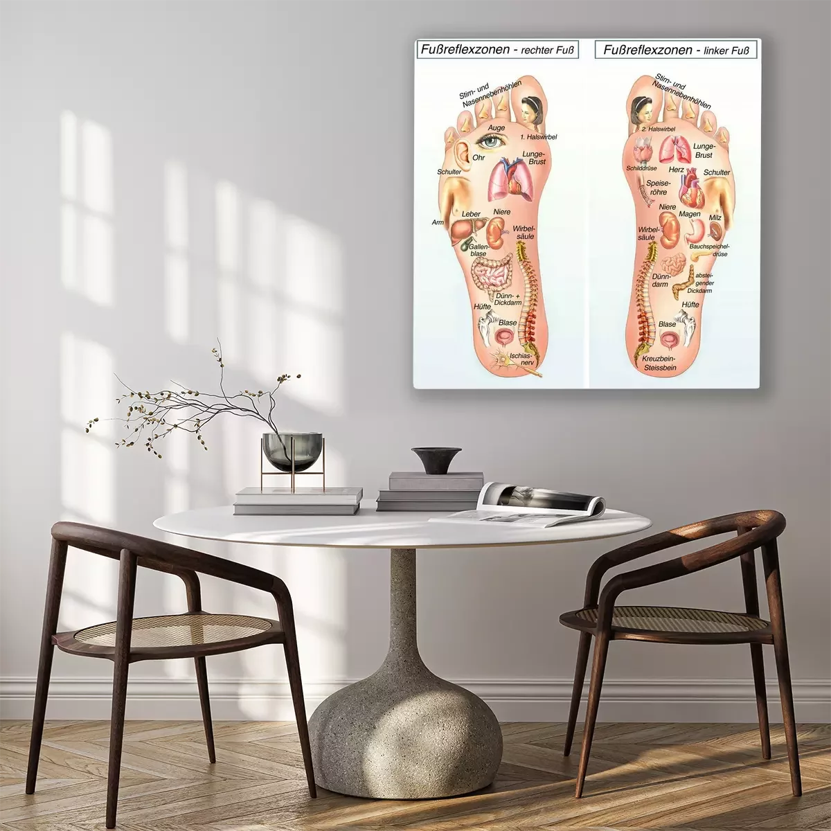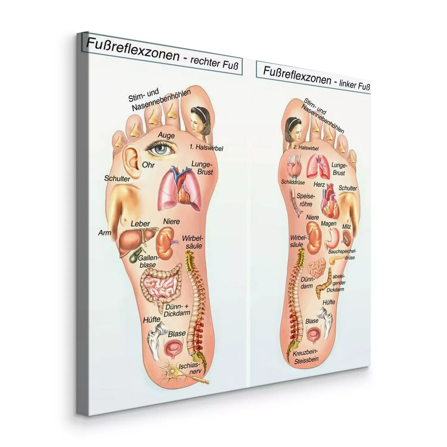 Tableau  Fußreflexzonen.Rechter Fuss-linker Fuß